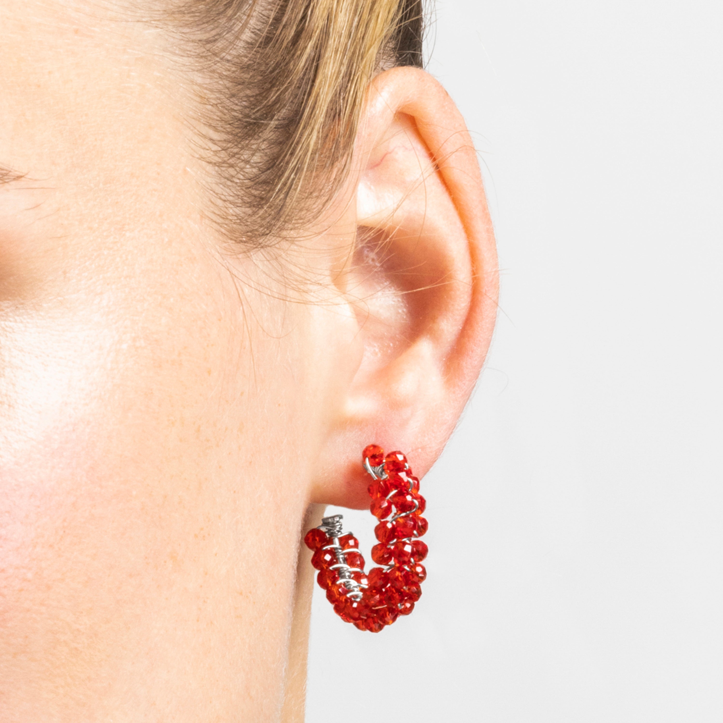 Siran Earrings made of 925 Sterling Silver with Red Crystal finished in 18k gold. Atelier conveys trend in every piece of jewelry, with designs that have adapted to the evolution of fashion and women. It is the perfect line for unique women who want to add a touch of color to their everyday life.