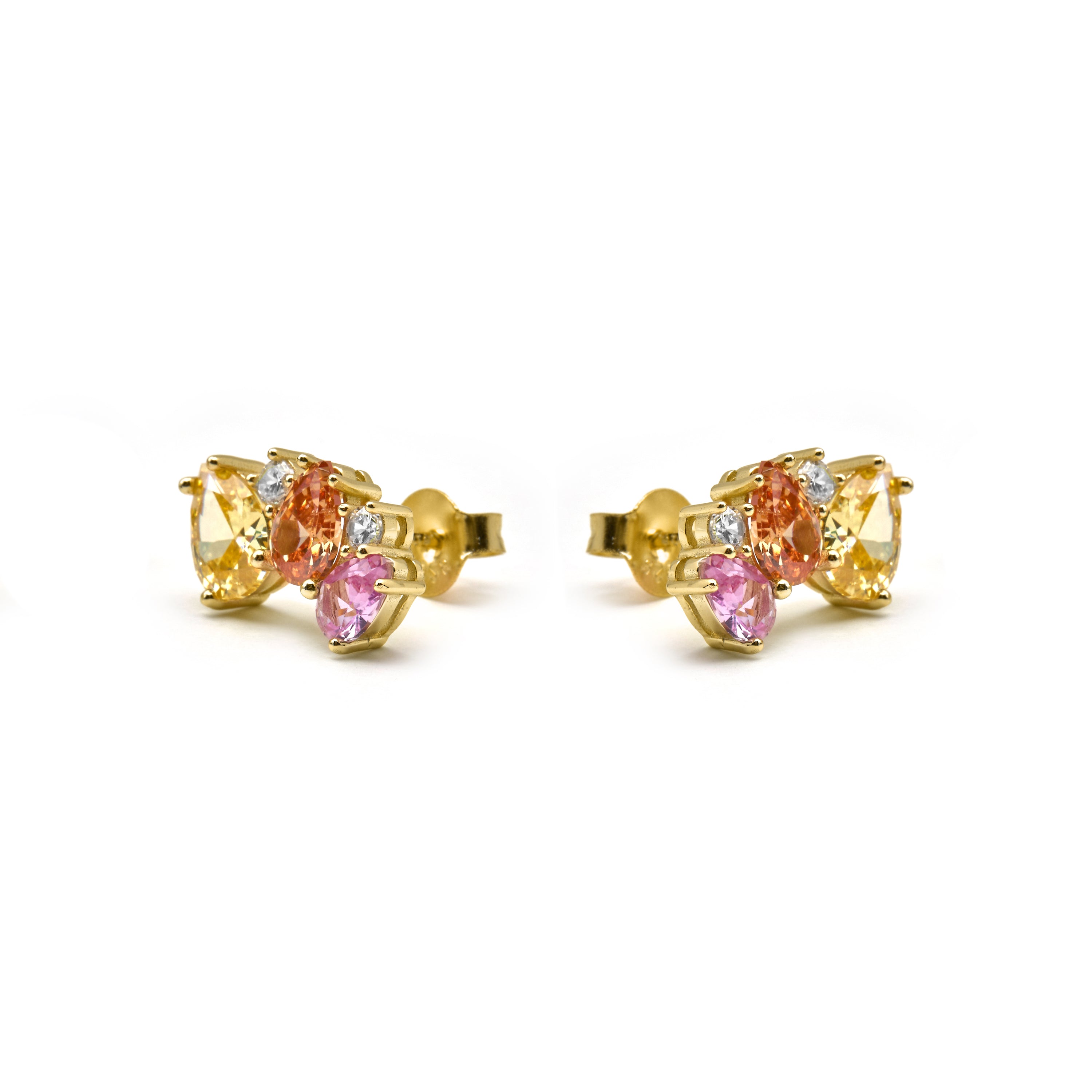925 Sterling Silver Earrings with Multicolor Cubic Zirconia finished in 18k Gold - Terbia