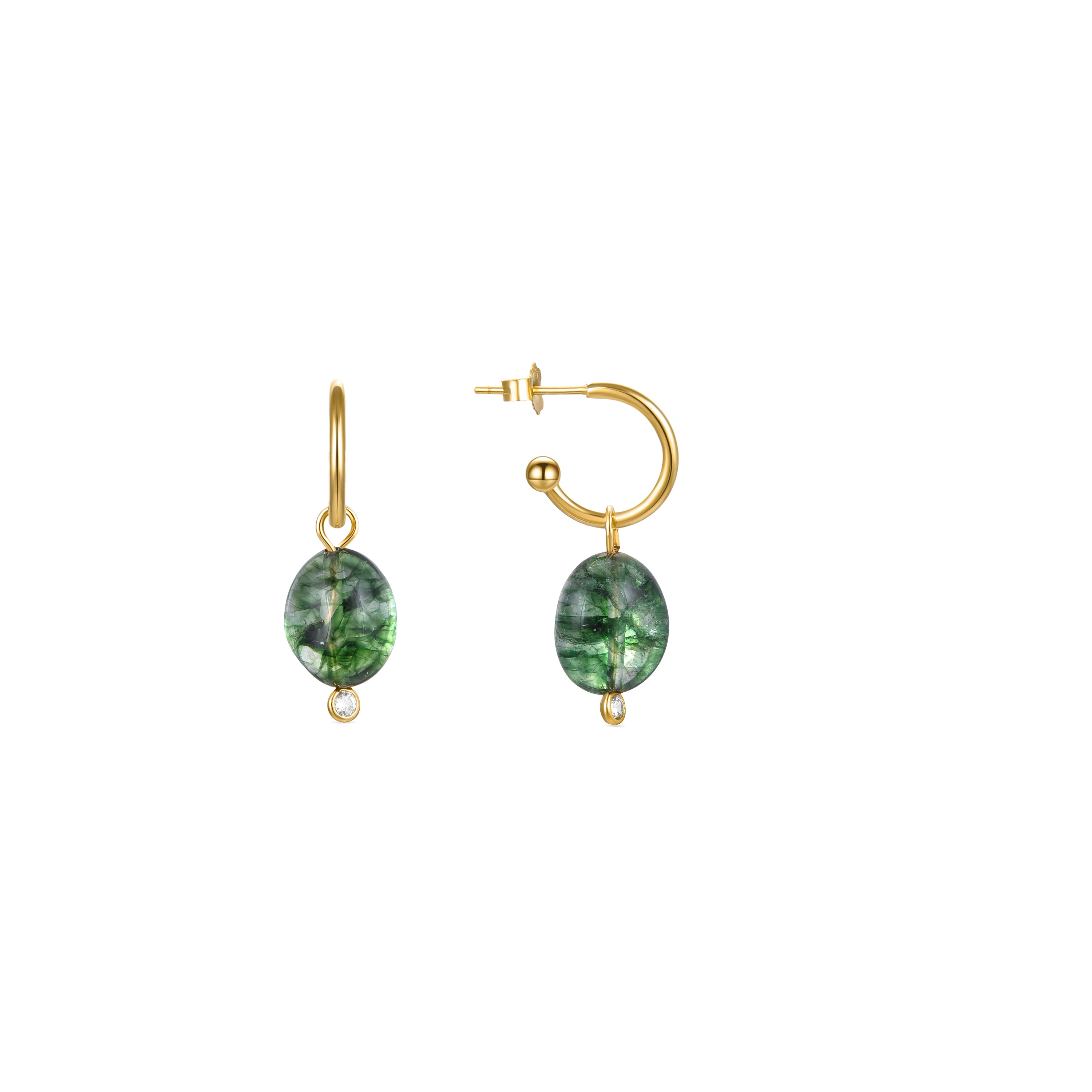 925 Sterling Silver Earrings with Green Crystal finished in 18K Yellow Gold - Xiua