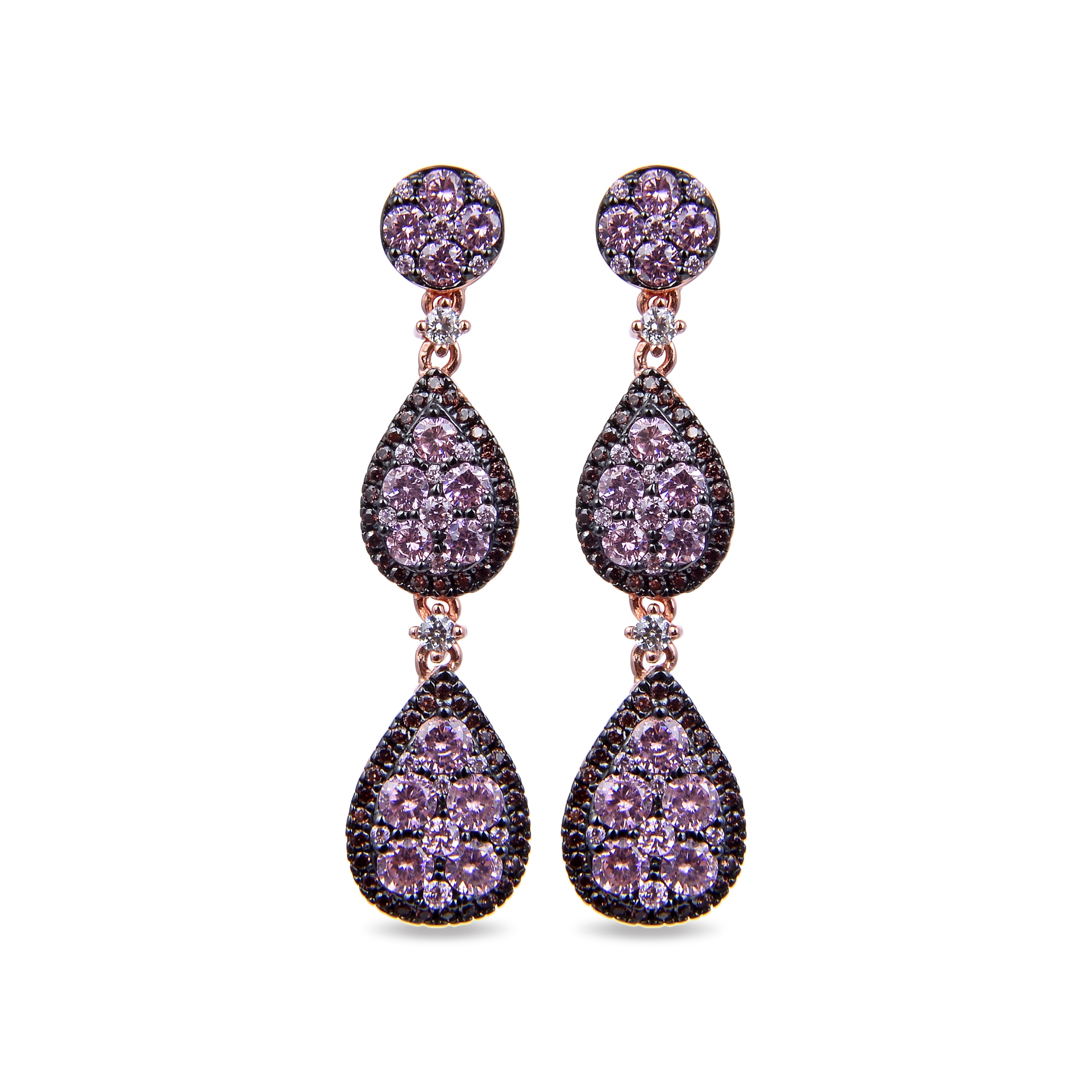 925 Sterling Silver Earrings with Multicolor Cubic Zirconia finished in 18K Rose Gold - Suion