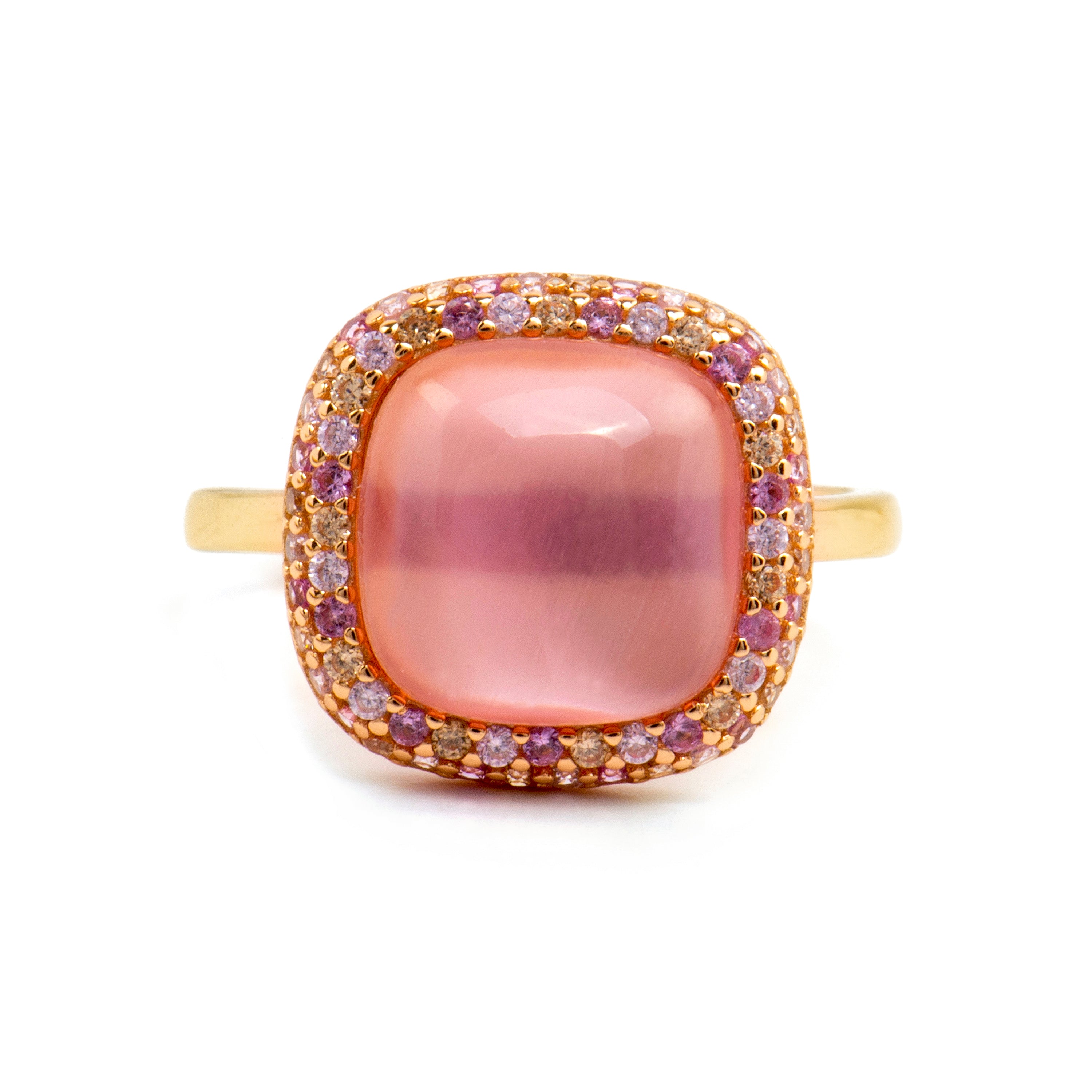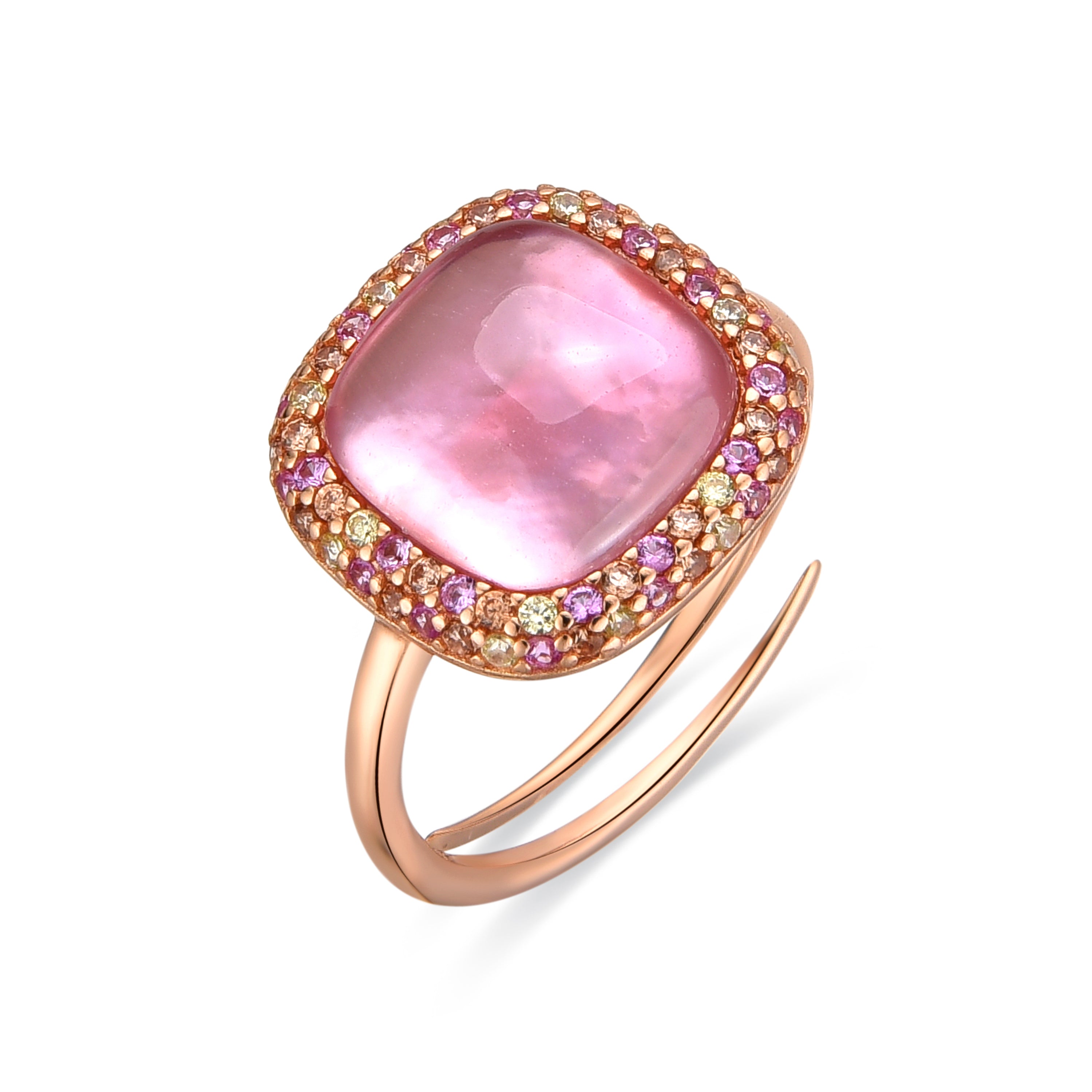 Baddal Ring in 925 Sterling Silver and Double Pink Mother of Pearl / Crystal finished in 18k yellow gold