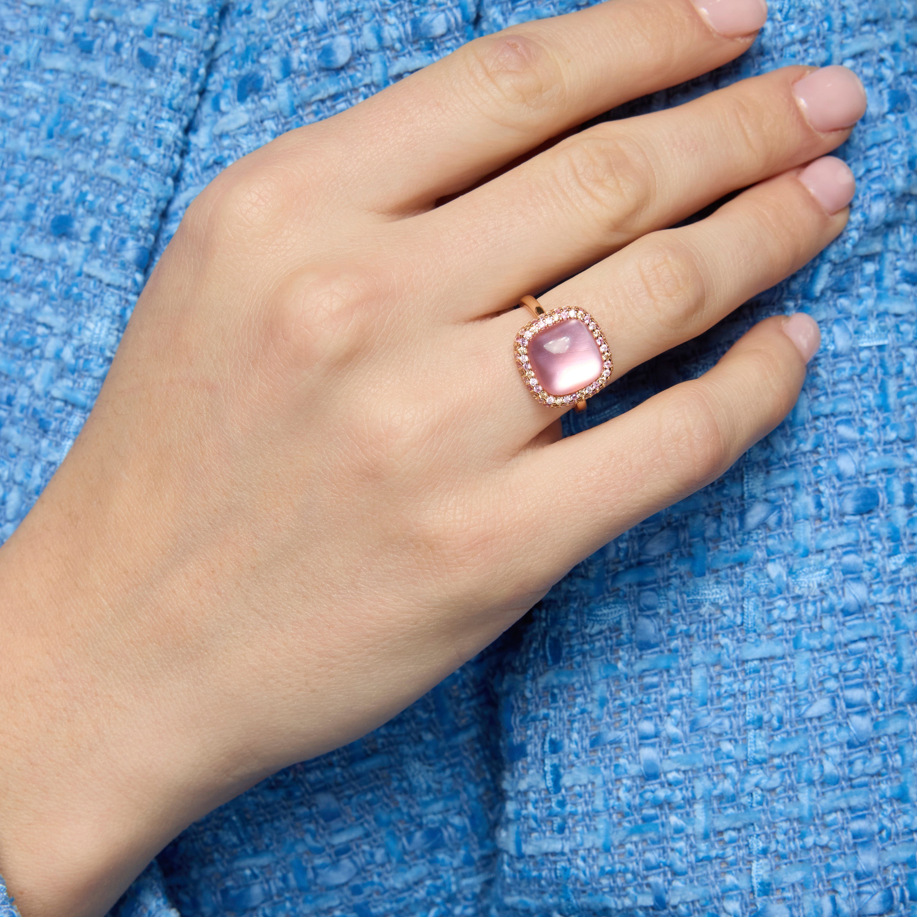 925 Sterling Silver Ring with Pink Mother of Pearl Doublet / 18k Yellow Gold Finished Crystal - Baddal