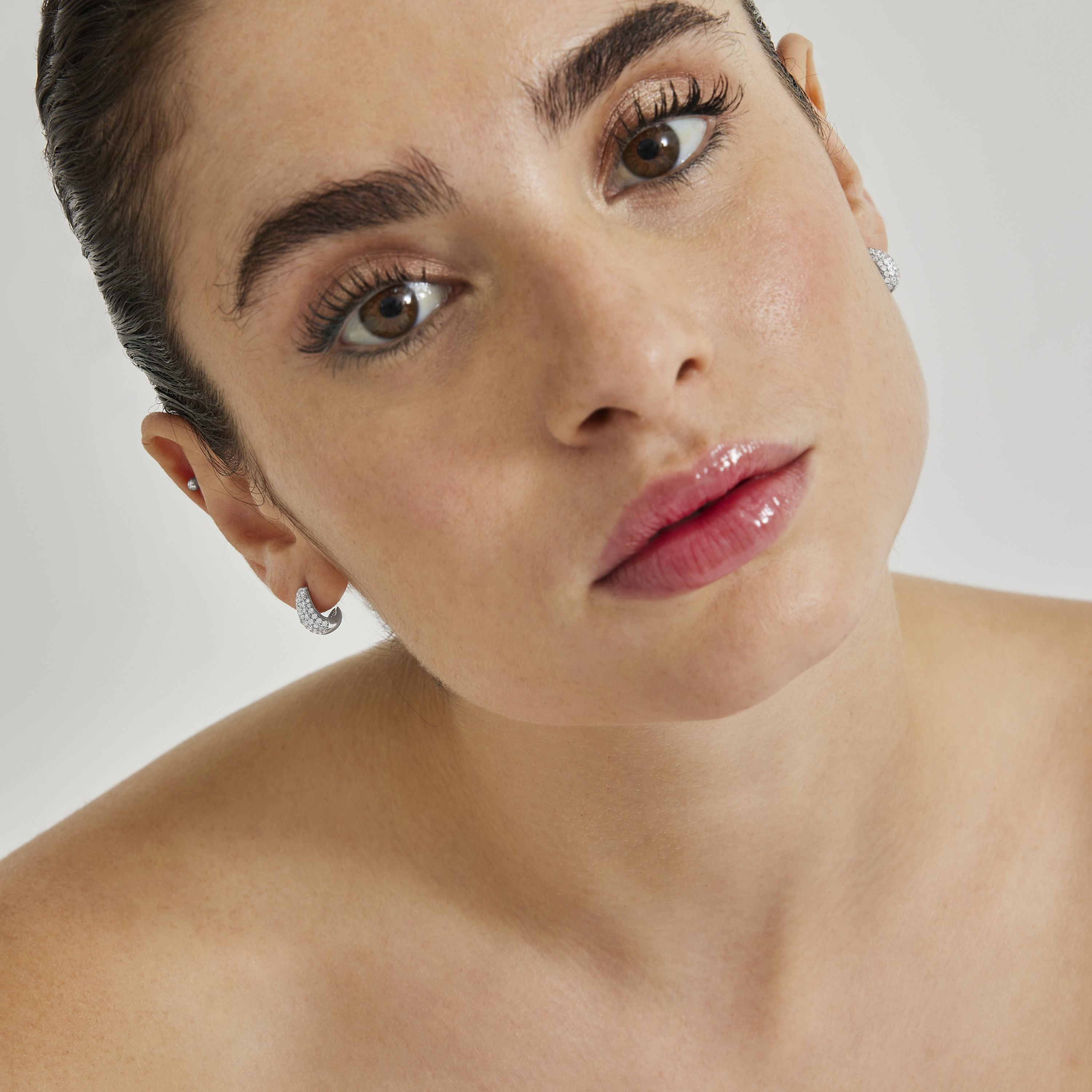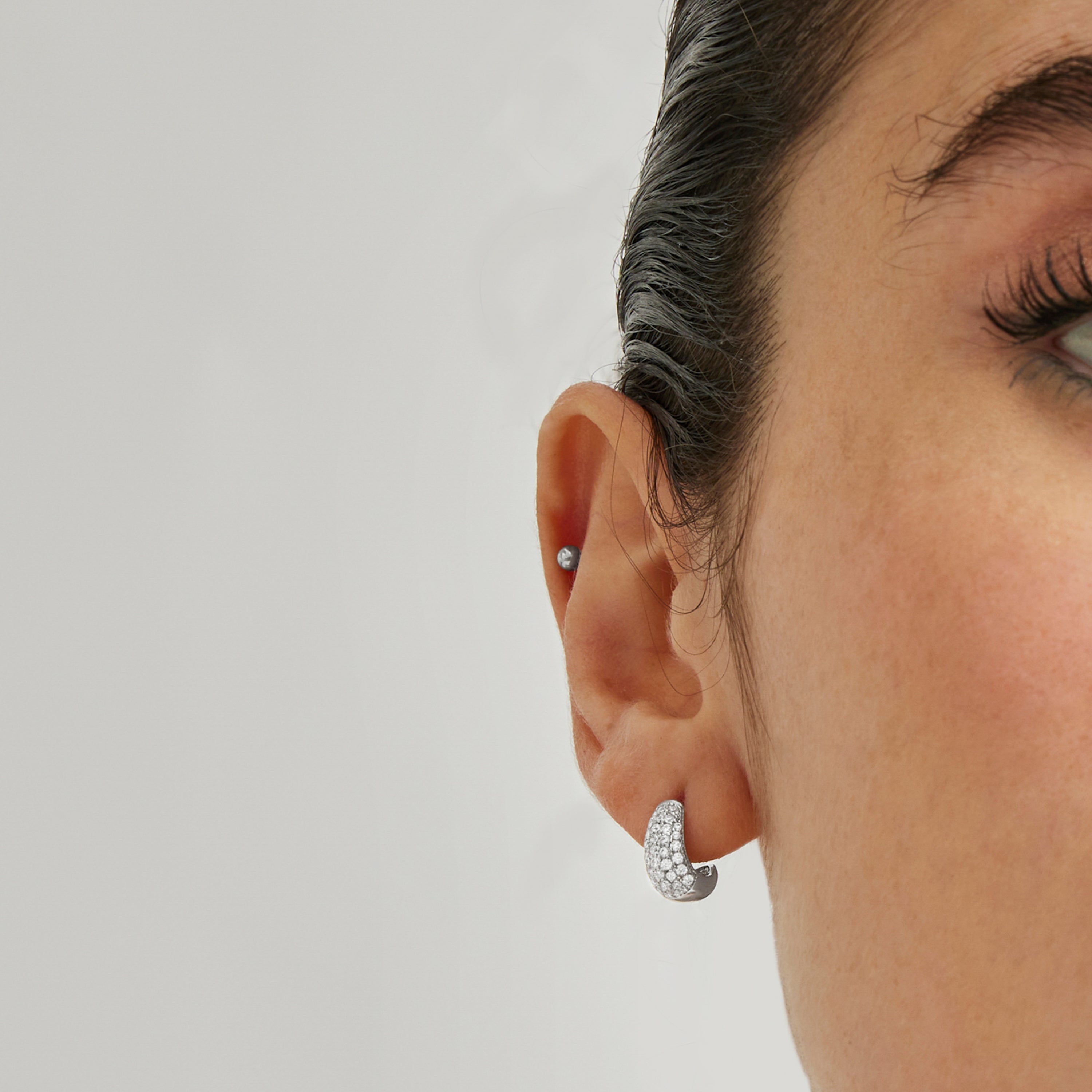 Greko Earrings with Brilliant Zirconia finished in rhodium. África Basic embodies refined simplicity, timeless pieces with soft lines and the added sparkle of zirconias. Unpretentious basic jewelry that is perfect for everyday wear, but can also work for special occasions.