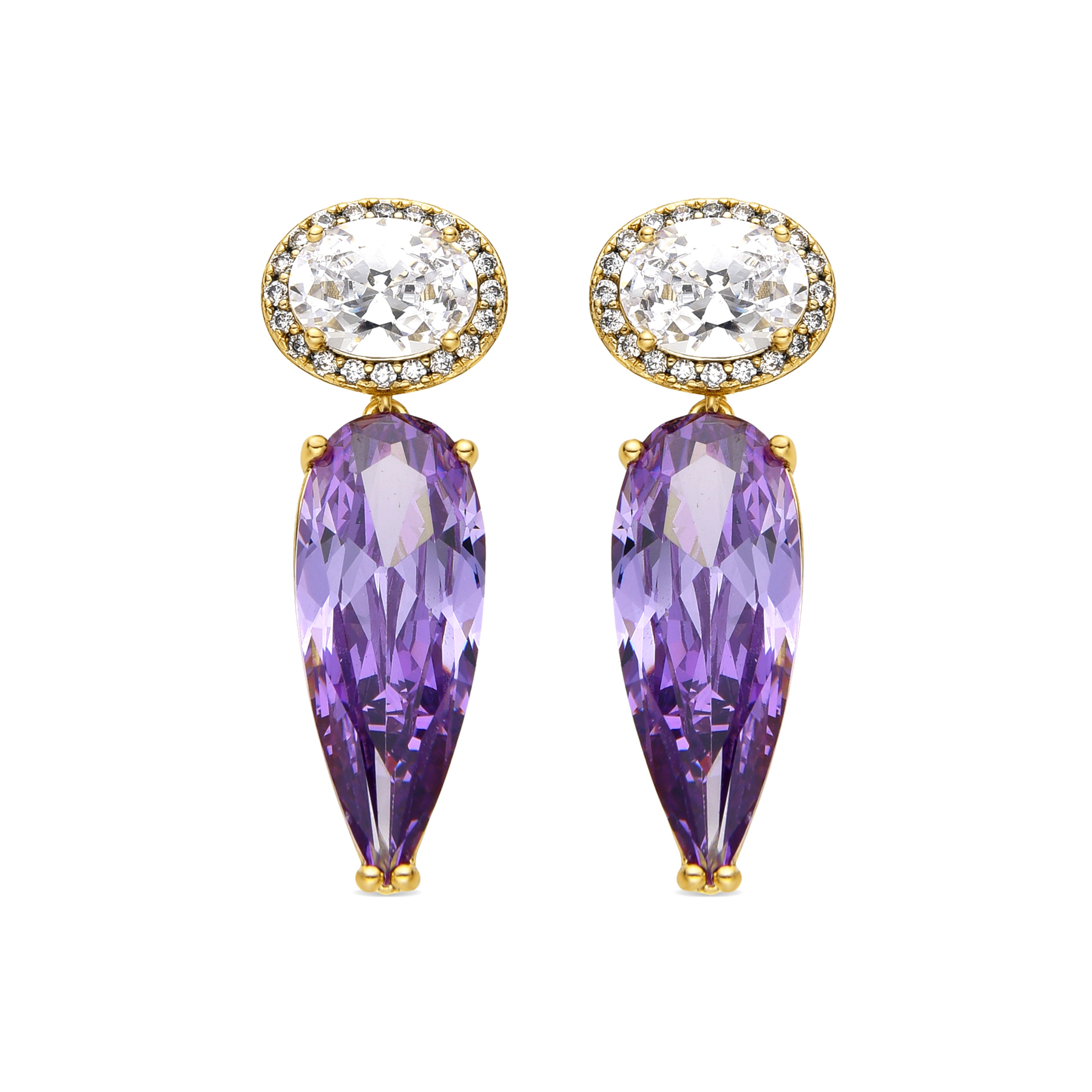 Amethyst Zirconia Earrings with 18k Gold Finish - Ryvea