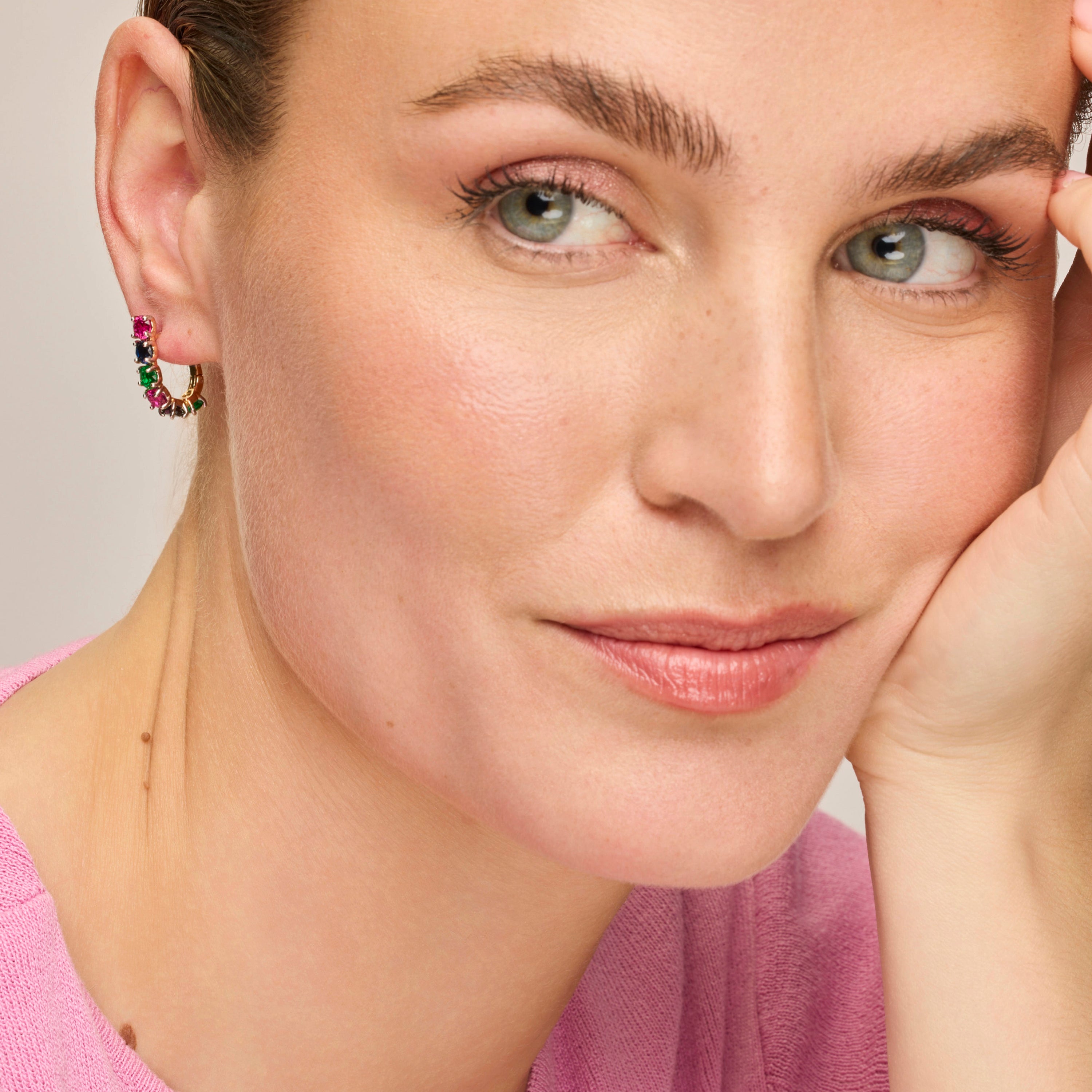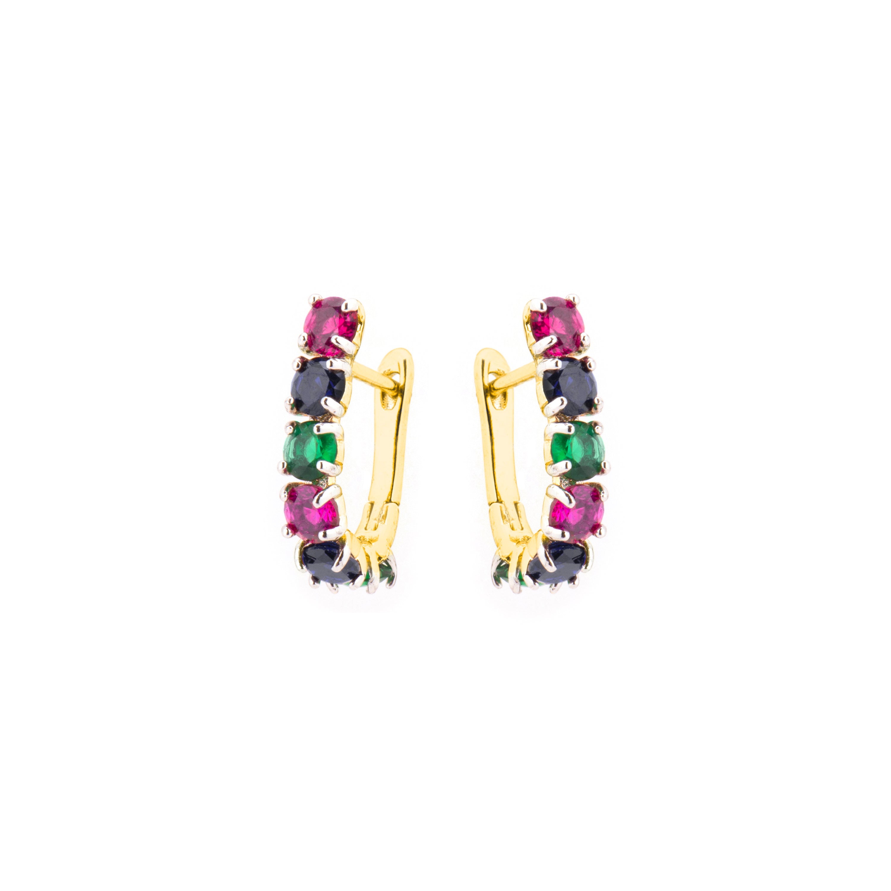 "Mehru Earrings with Multicolor Zirconia finished in 18k gold. Africa becomes the perfect line for women with personality, who are not afraid to take risks and wear pieces with their own character."