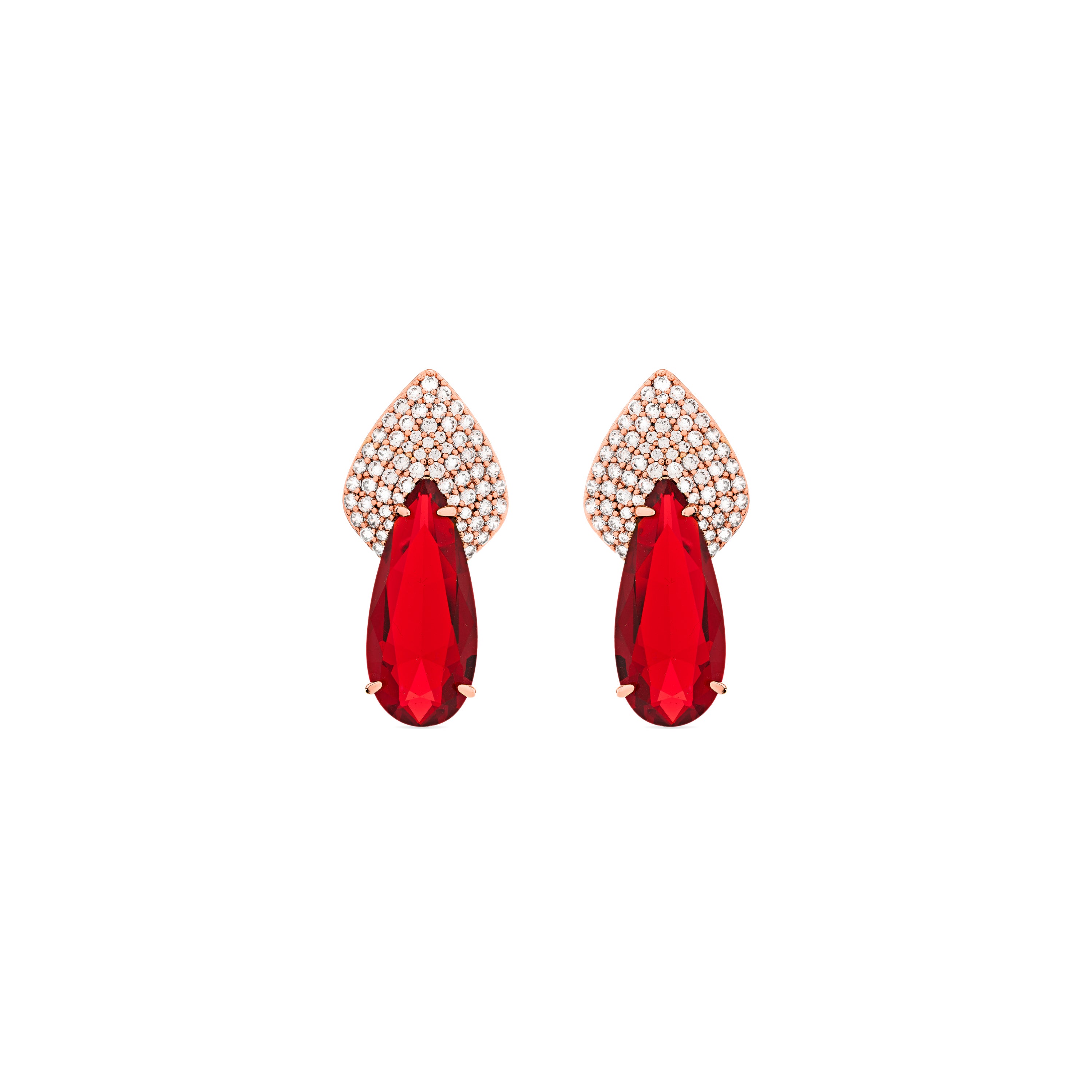Earrings with Ruby Zirconia finished in 18K yellow gold - Ikah