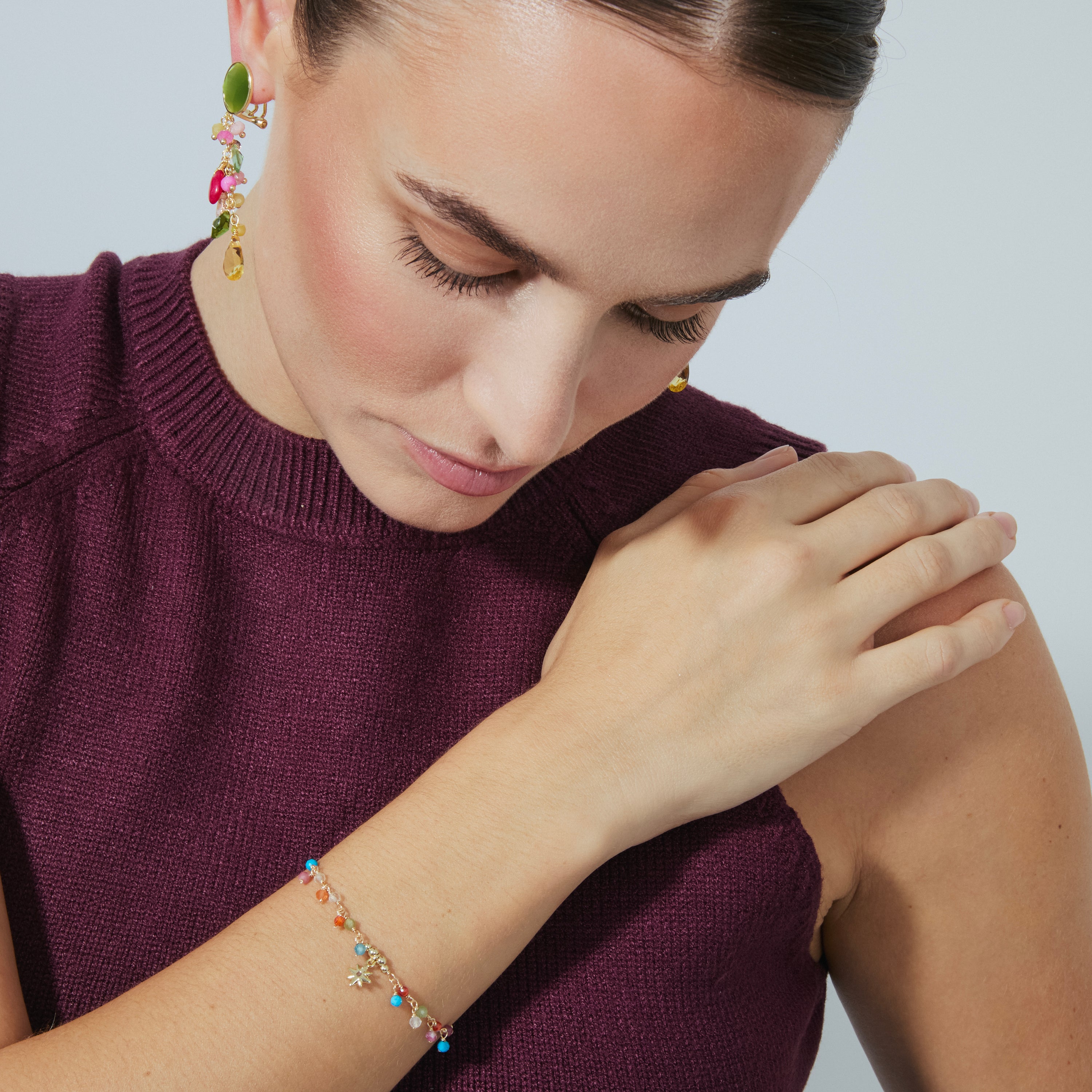 Wyrm Multicolor Crystal Bracelet finished in 18k gold. África Moda immerses you in a world of vibrant colors, exquisite textures, and handcrafted designs that will reflect the essence of your spirit.