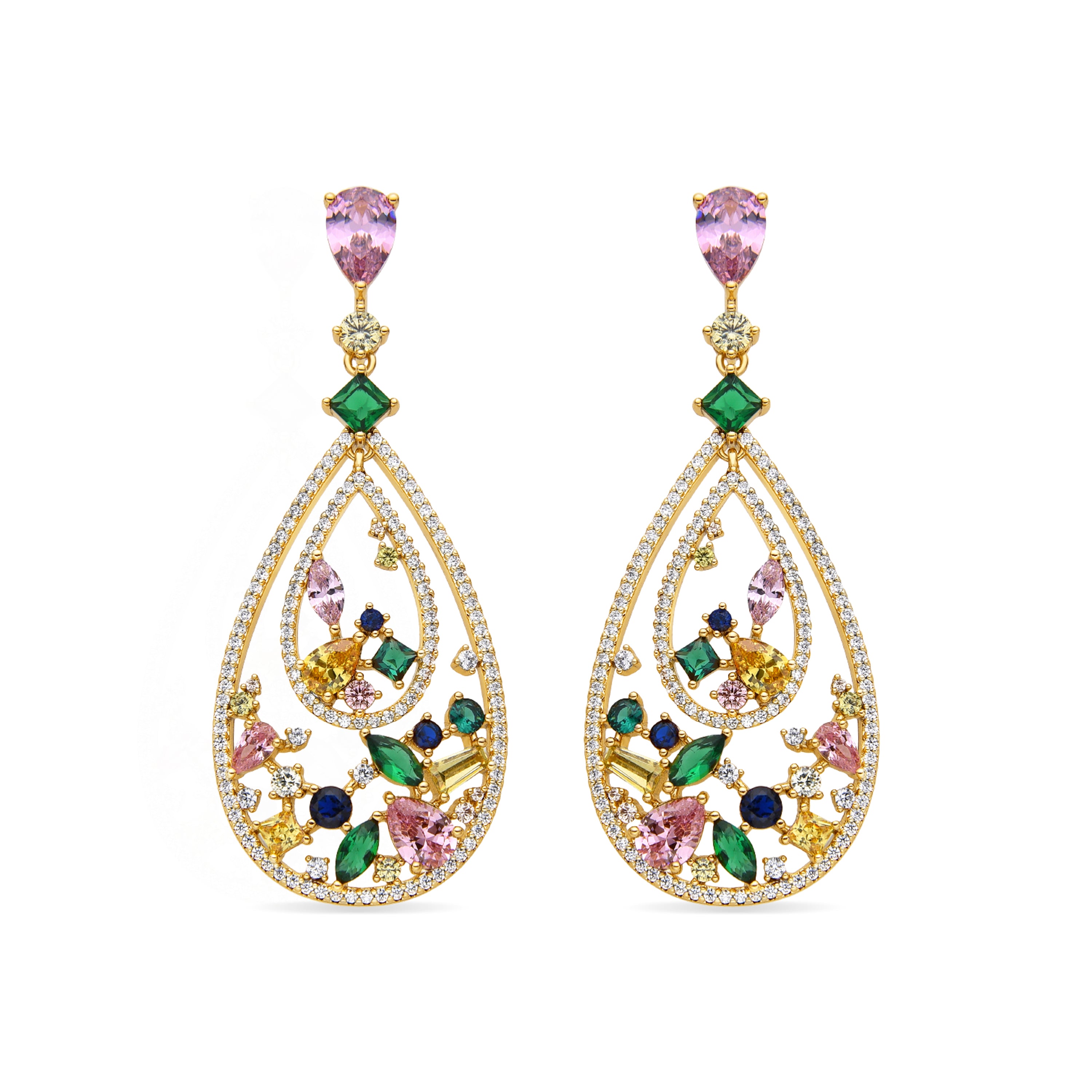 Earrings with Multicolor Cubic Zirconia 18k Gold Finish - Omada