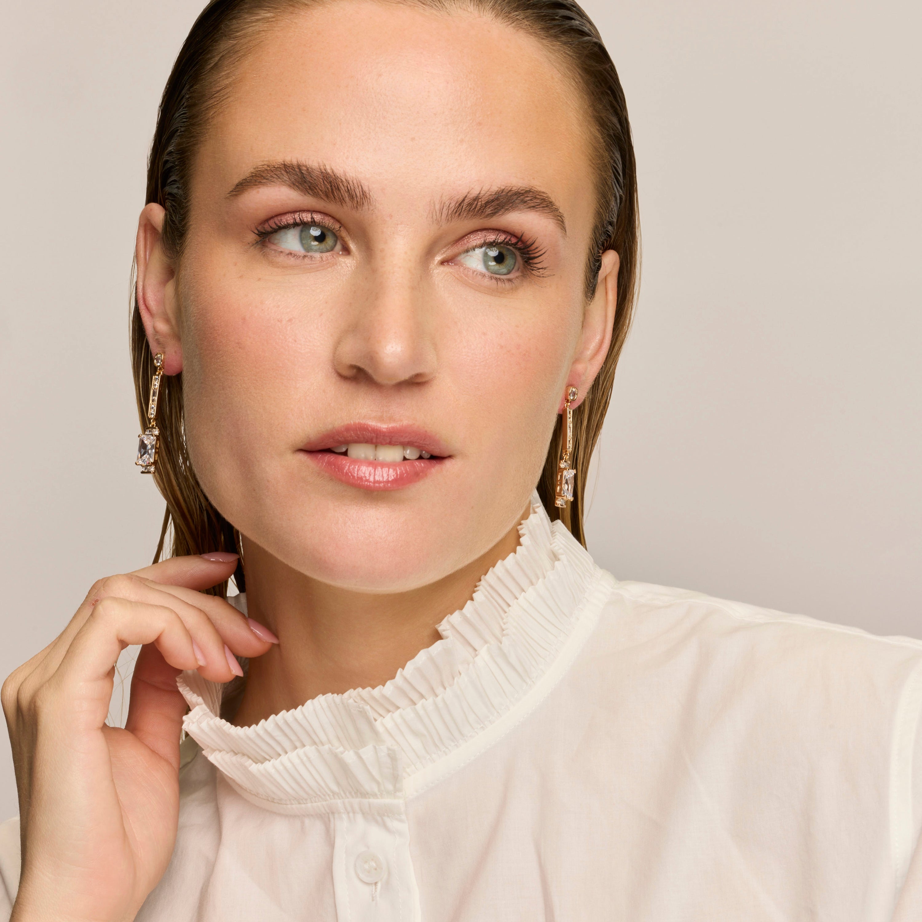 Chiuk Earrings with Brilliant Cubic Zirconia, 18k yellow gold finish