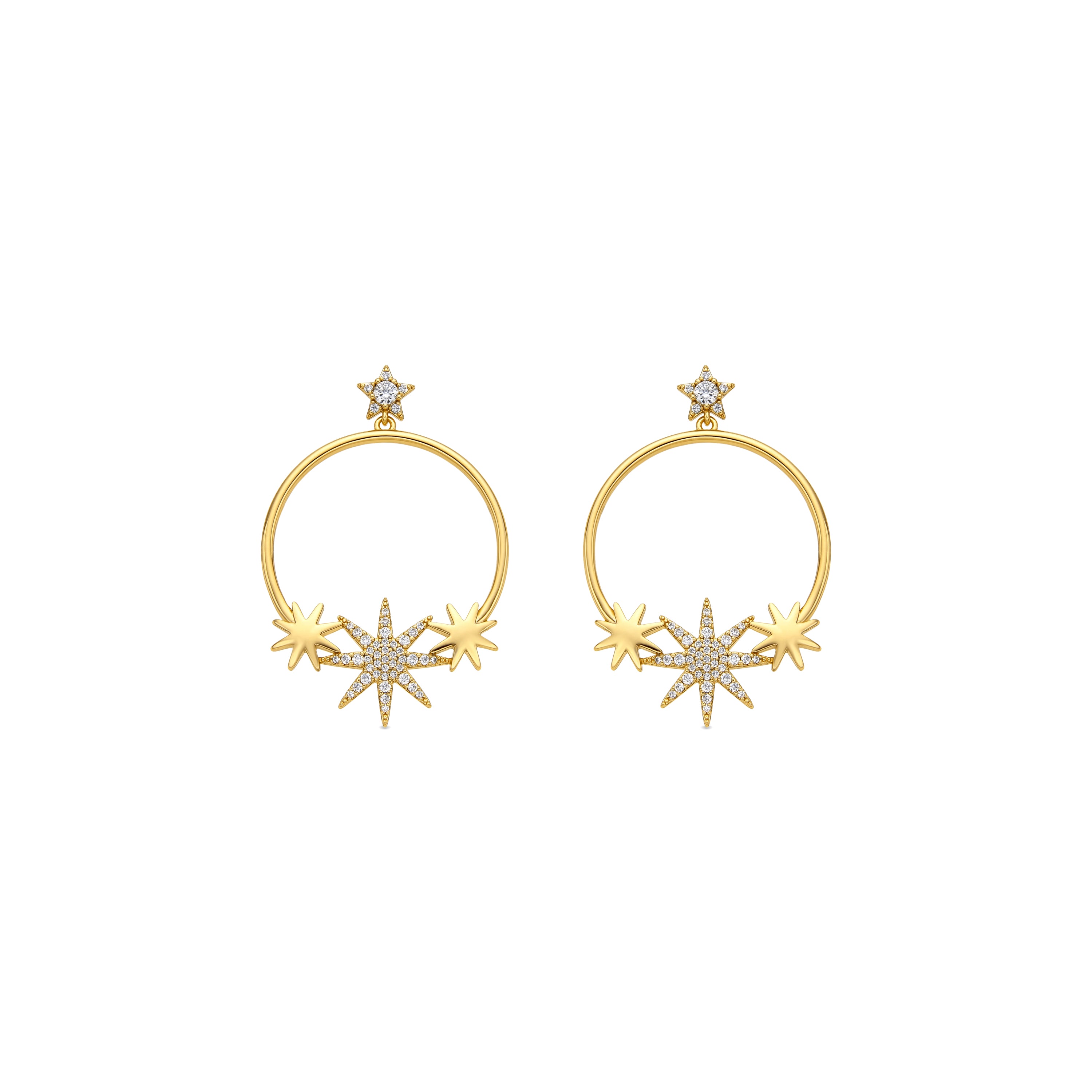 18k Yellow Gold Finish Earrings with Brilliant Zirconia - Ilju