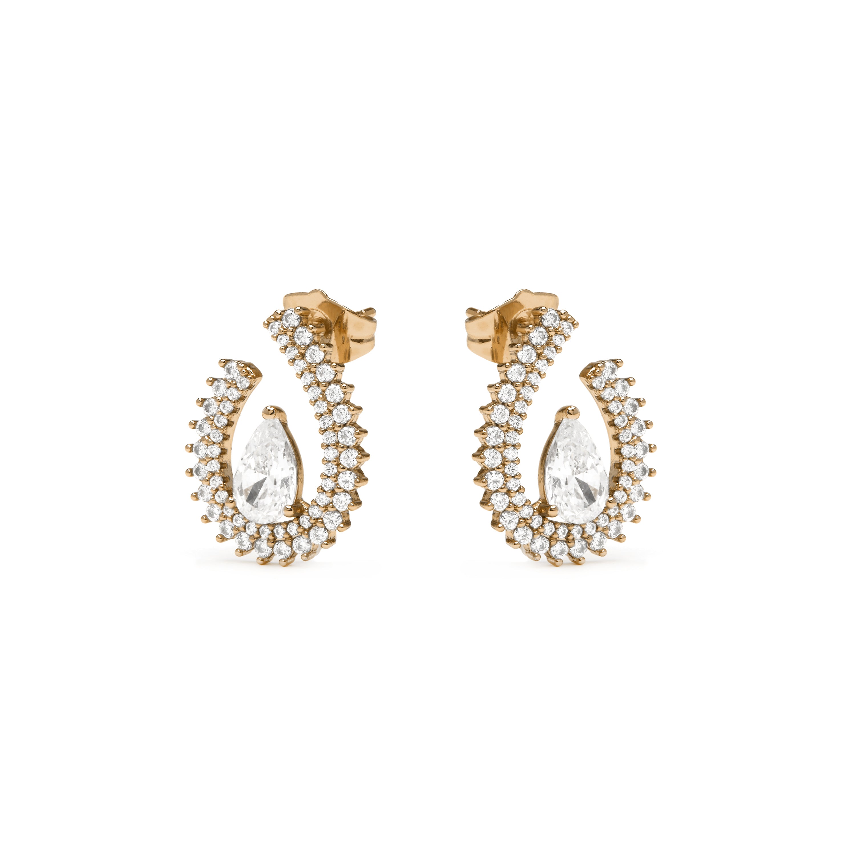 18k Yellow Gold Finish Earrings with Brilliant Zirconia - Goep
