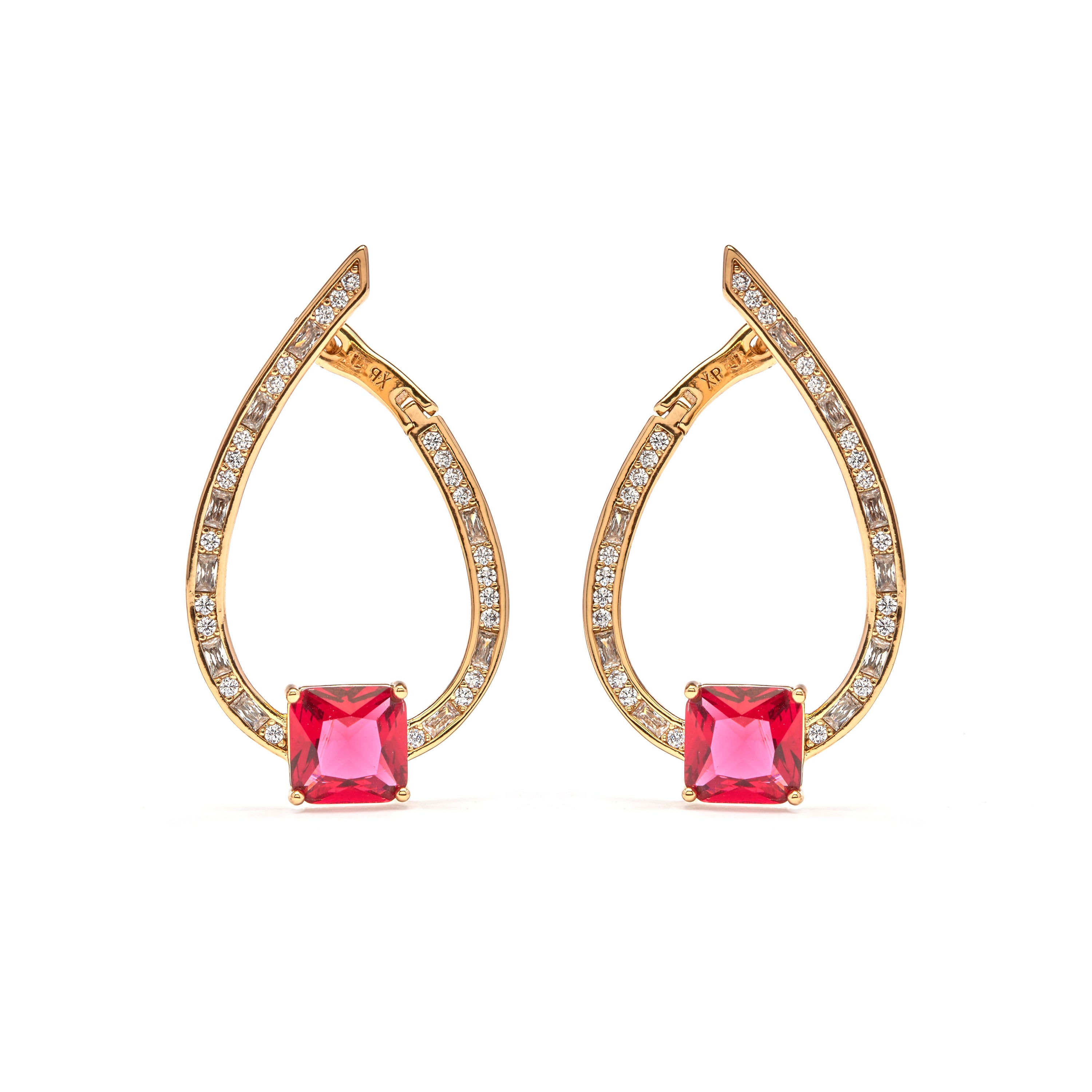 Riyu Ruby Cubic Zirconia Earrings finished in 18k yellow gold