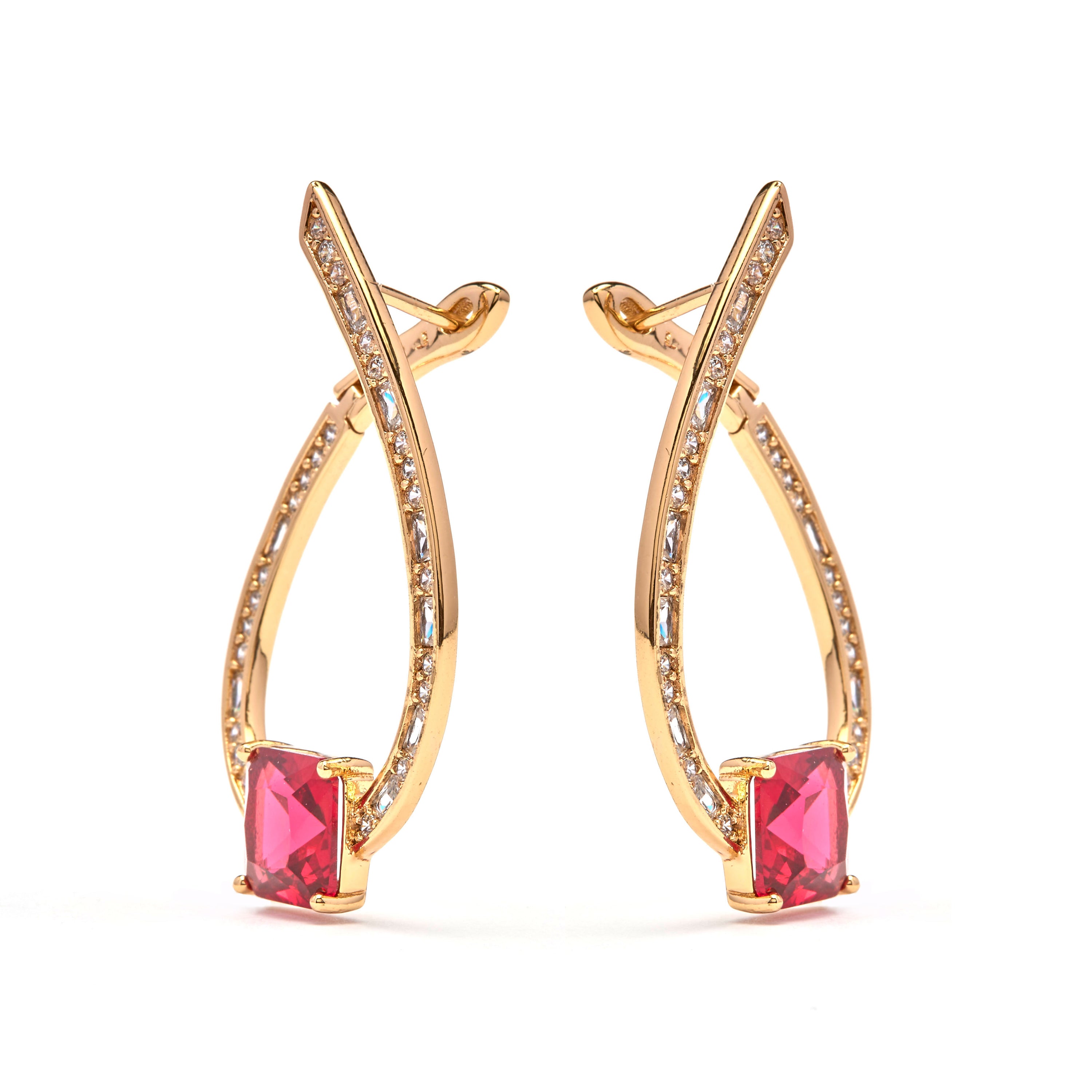 Ruby Cubic Zirconia Earrings with 18k Yellow Gold Finish - Riyu