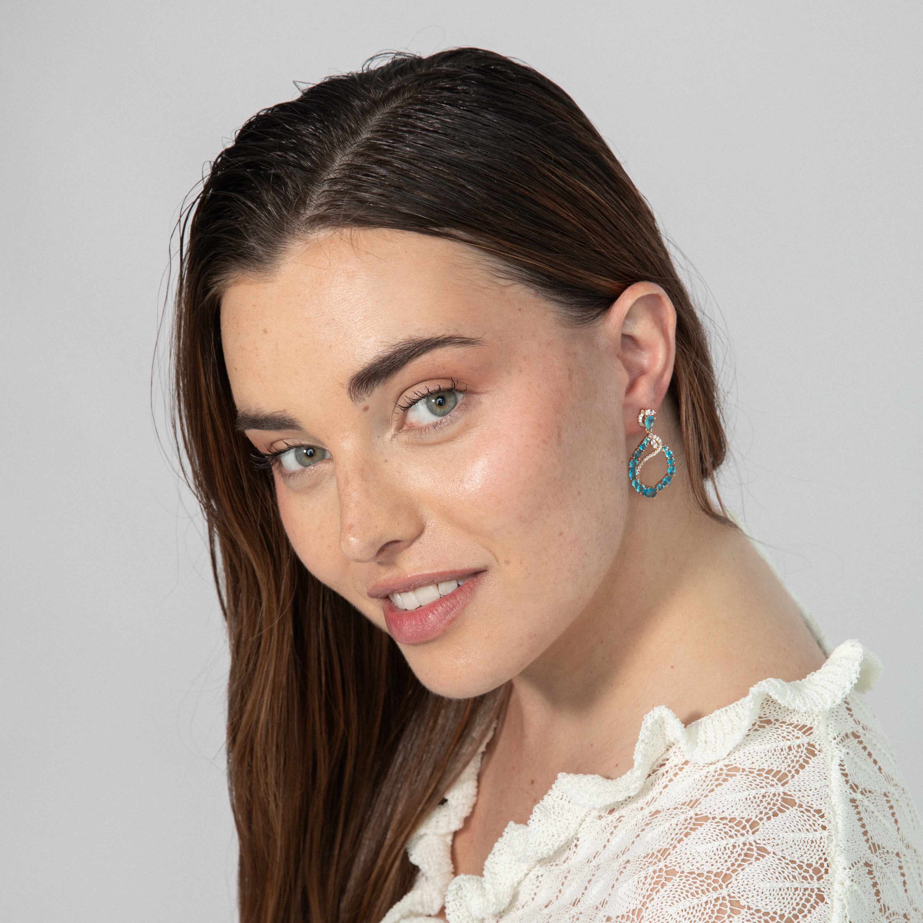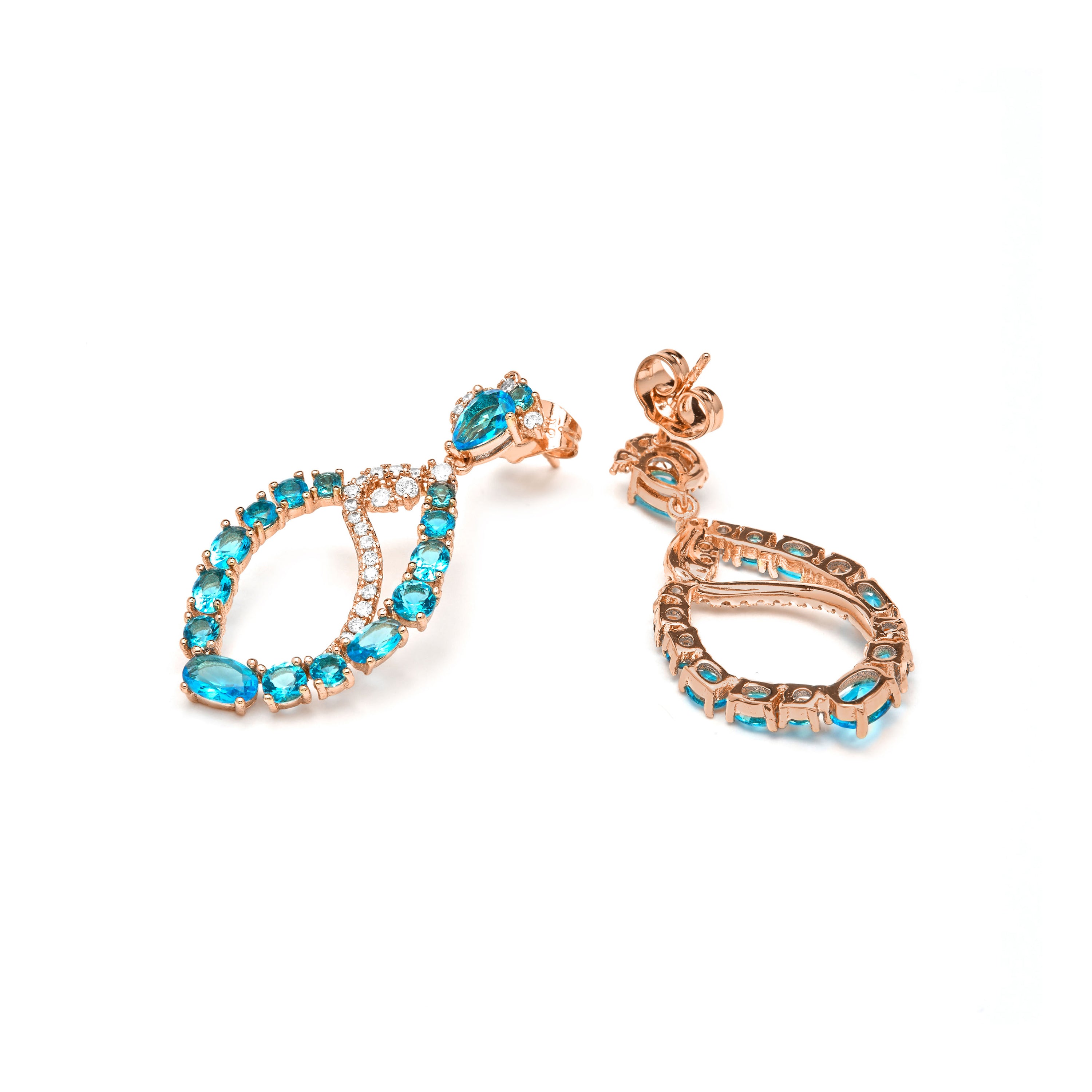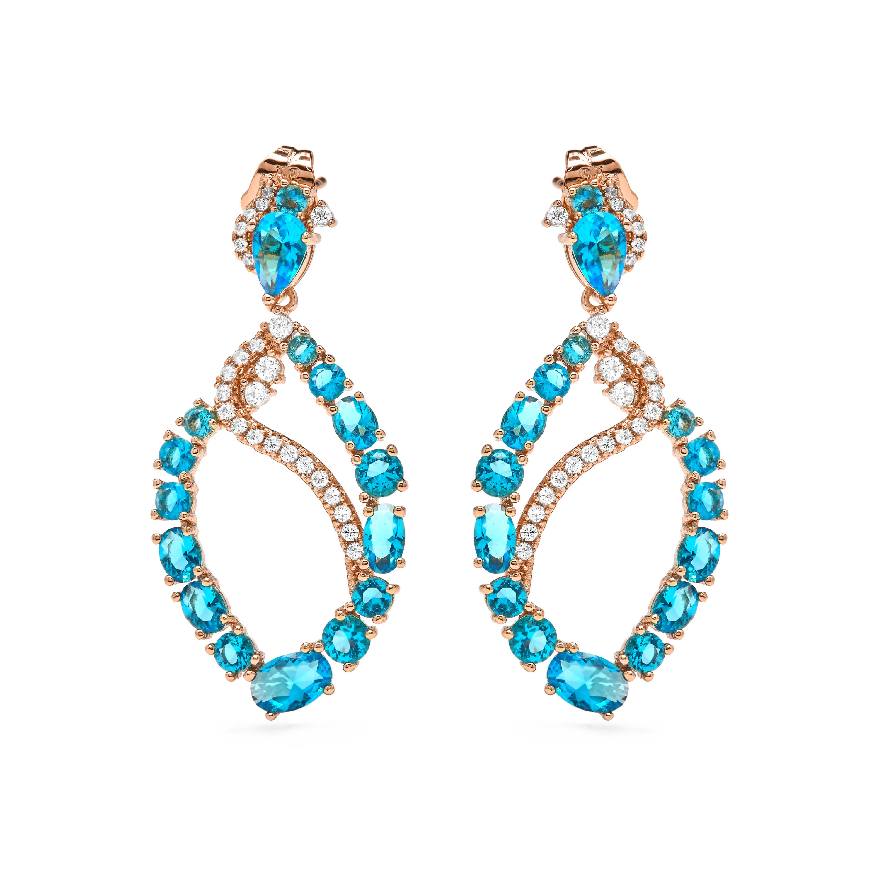 Ranyus Earrings with Blue Topaz Cubic Zirconia finished in 18k yellow gold