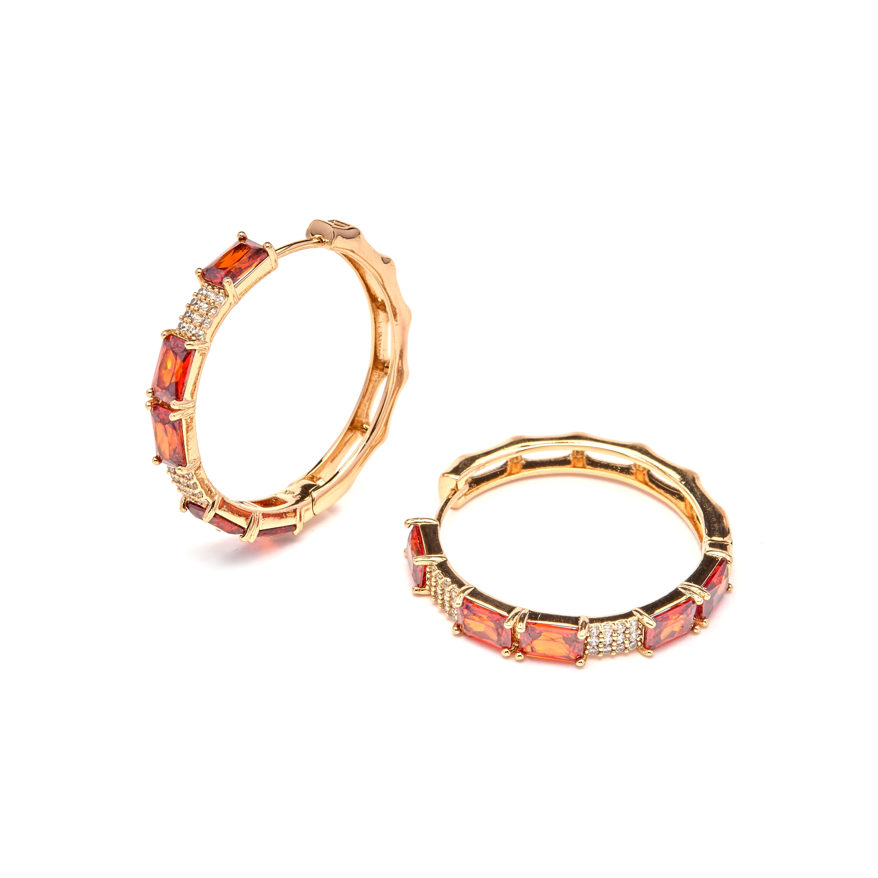 Garnet Cubic Zirconia Earrings Finished in 18k Yellow Gold - Ulfan