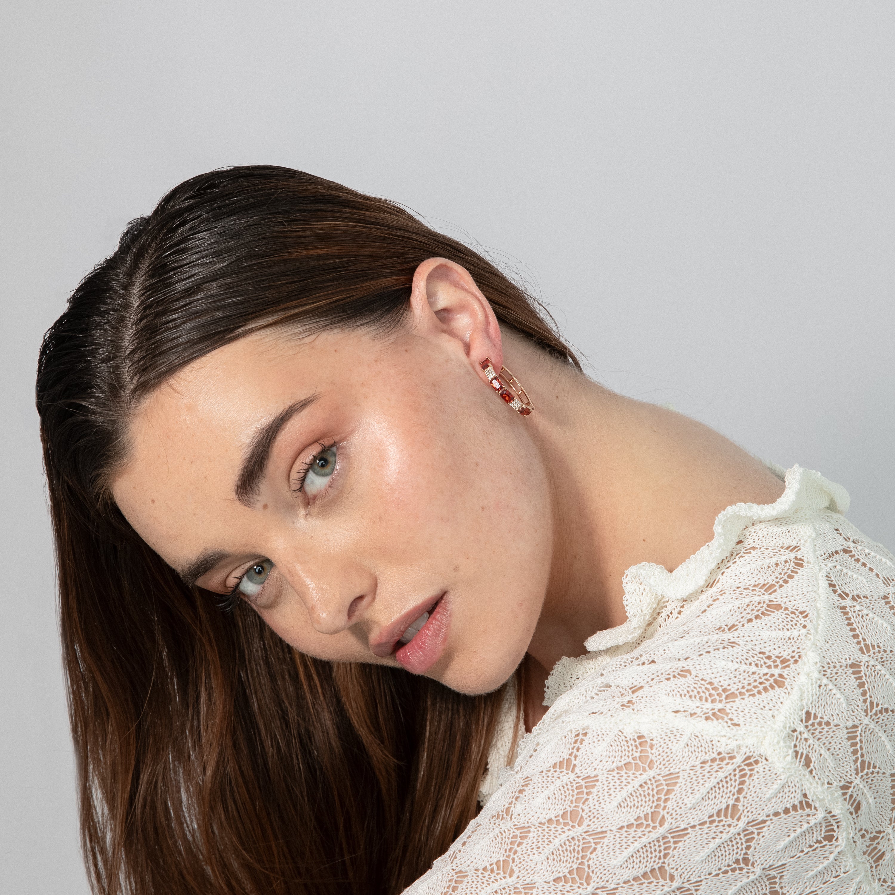 Ulfan Garnet Cubic Zirconia Earrings finished in 18k yellow gold