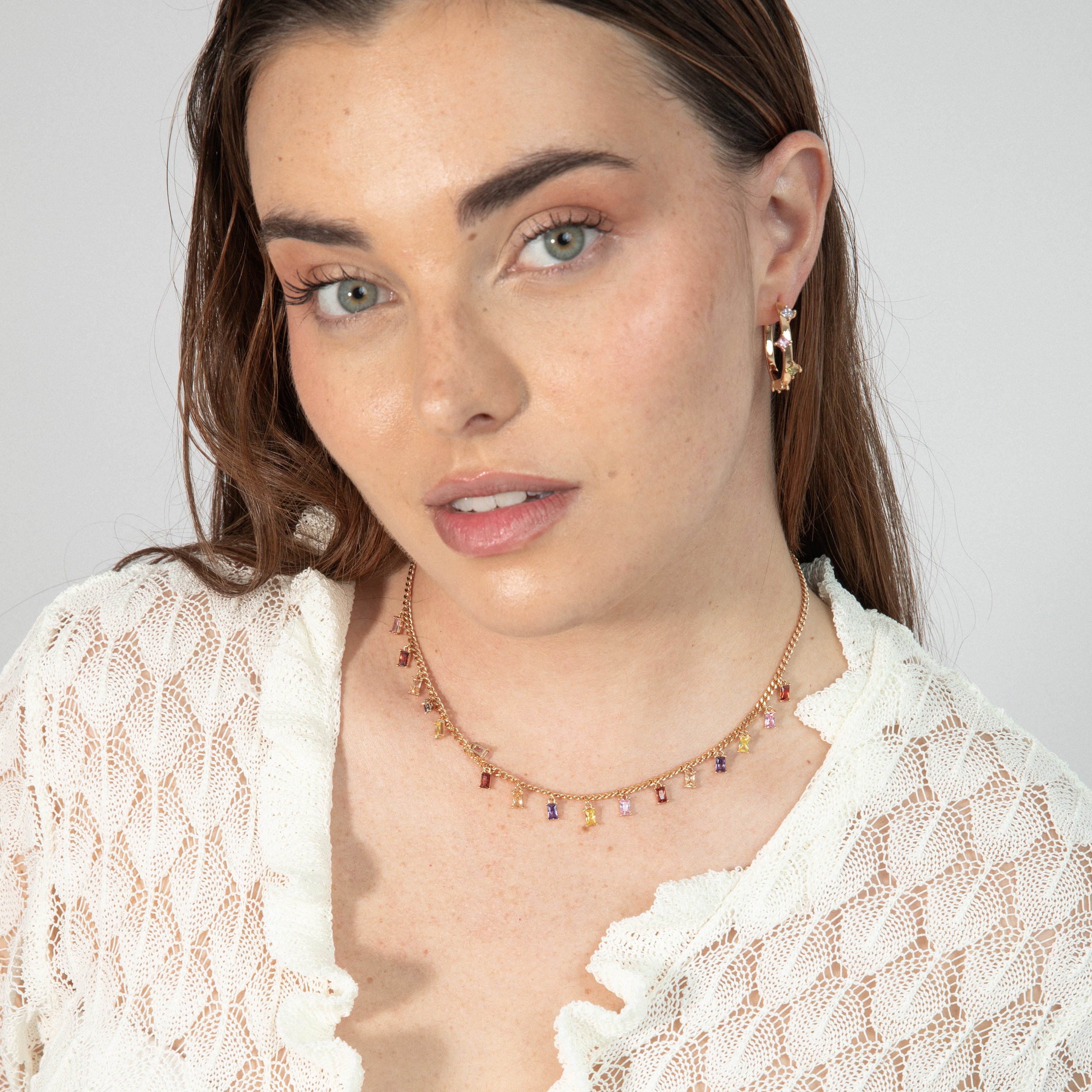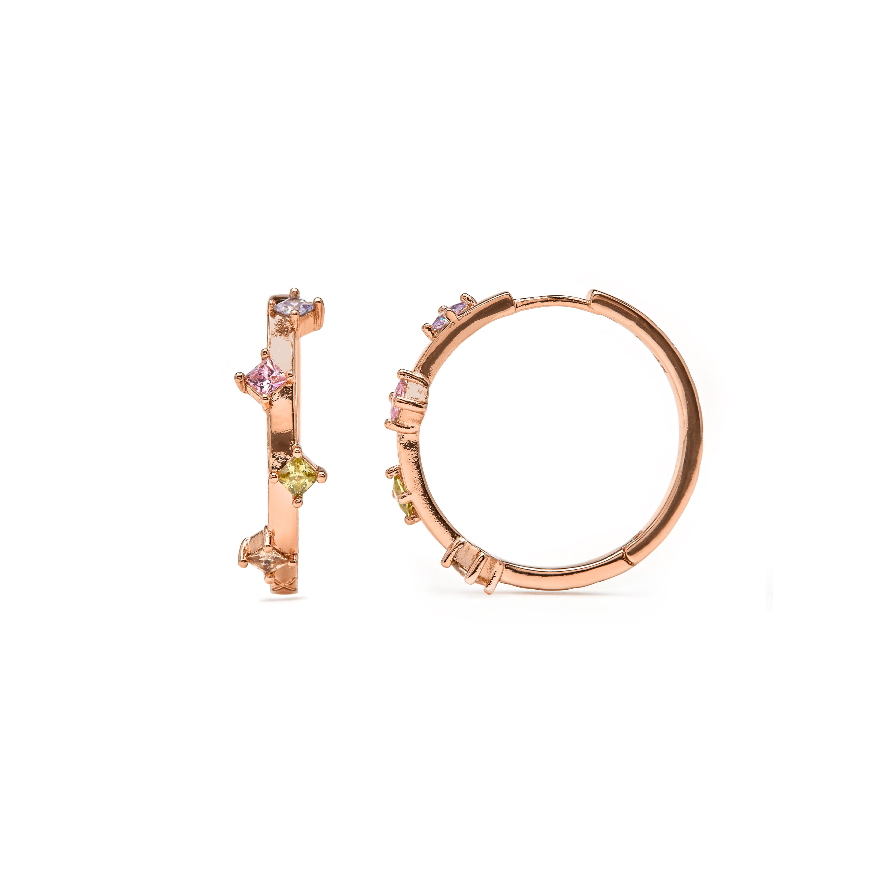 Satore Earrings with Multicolor Cubic Zirconia finished in 18k yellow gold
