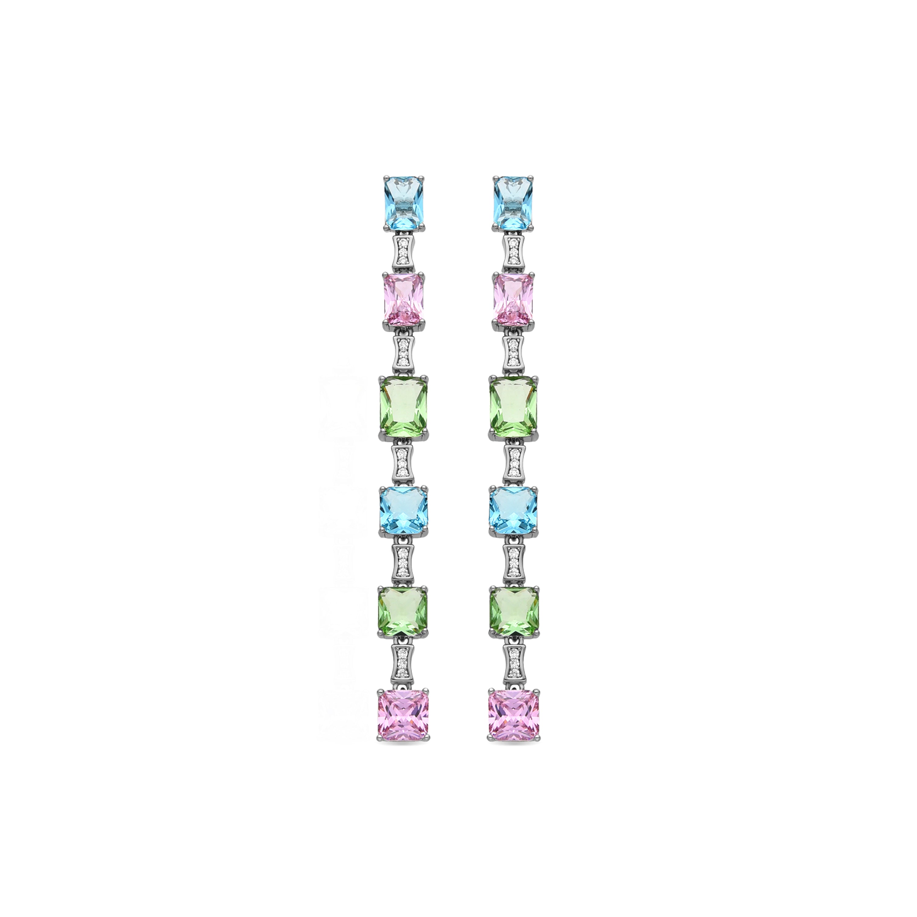 Multicolor Cubic Zirconia Earrings with Silver Finish - Biha