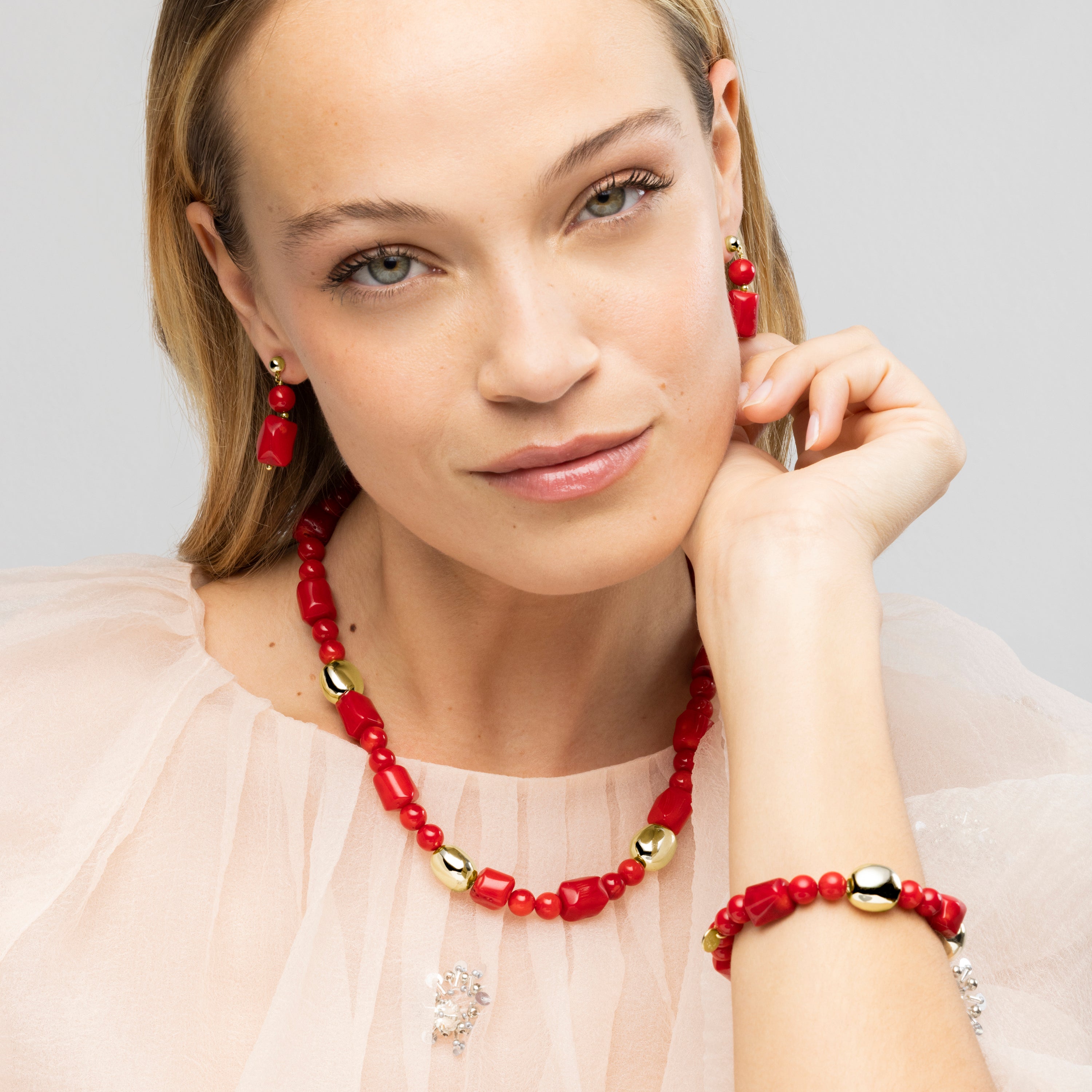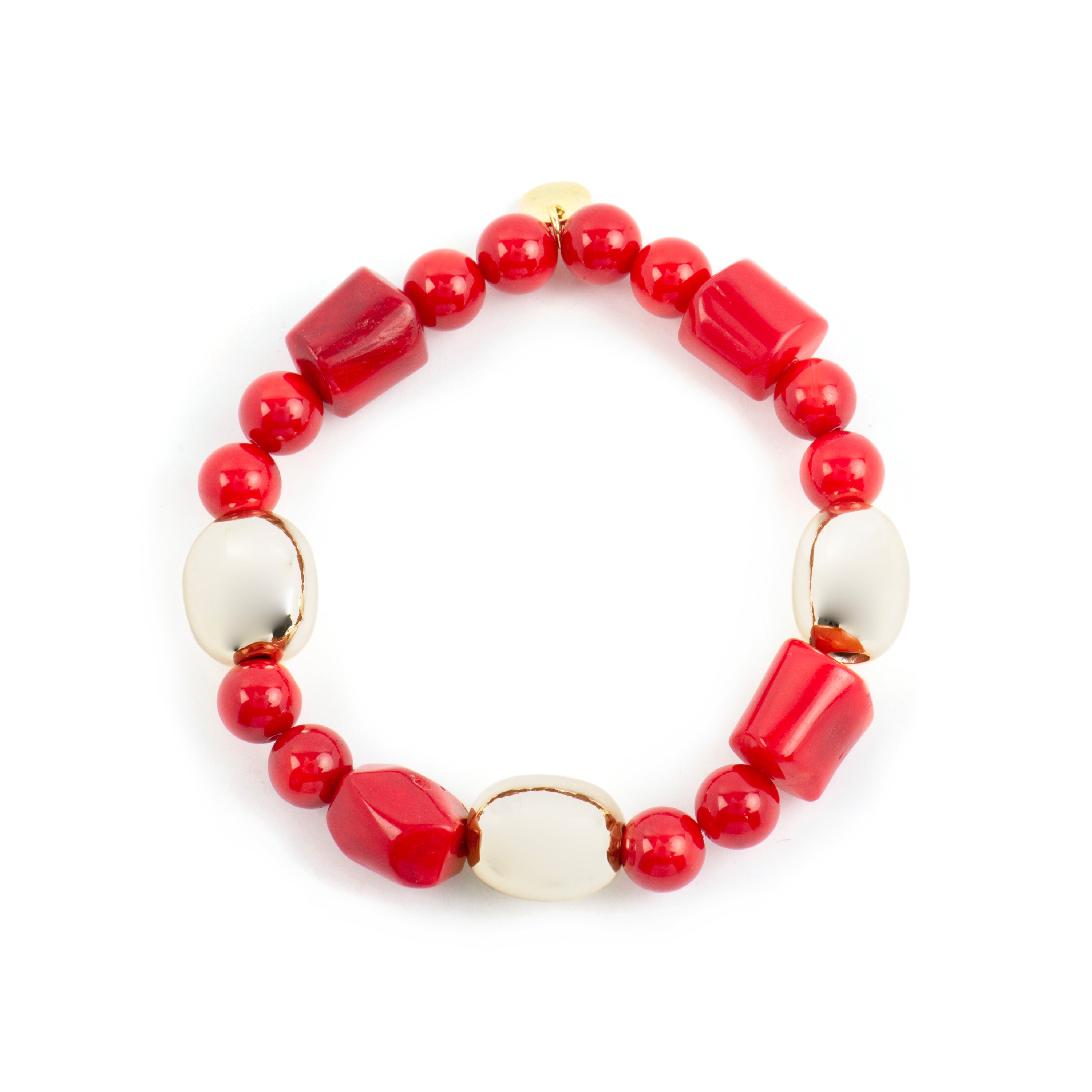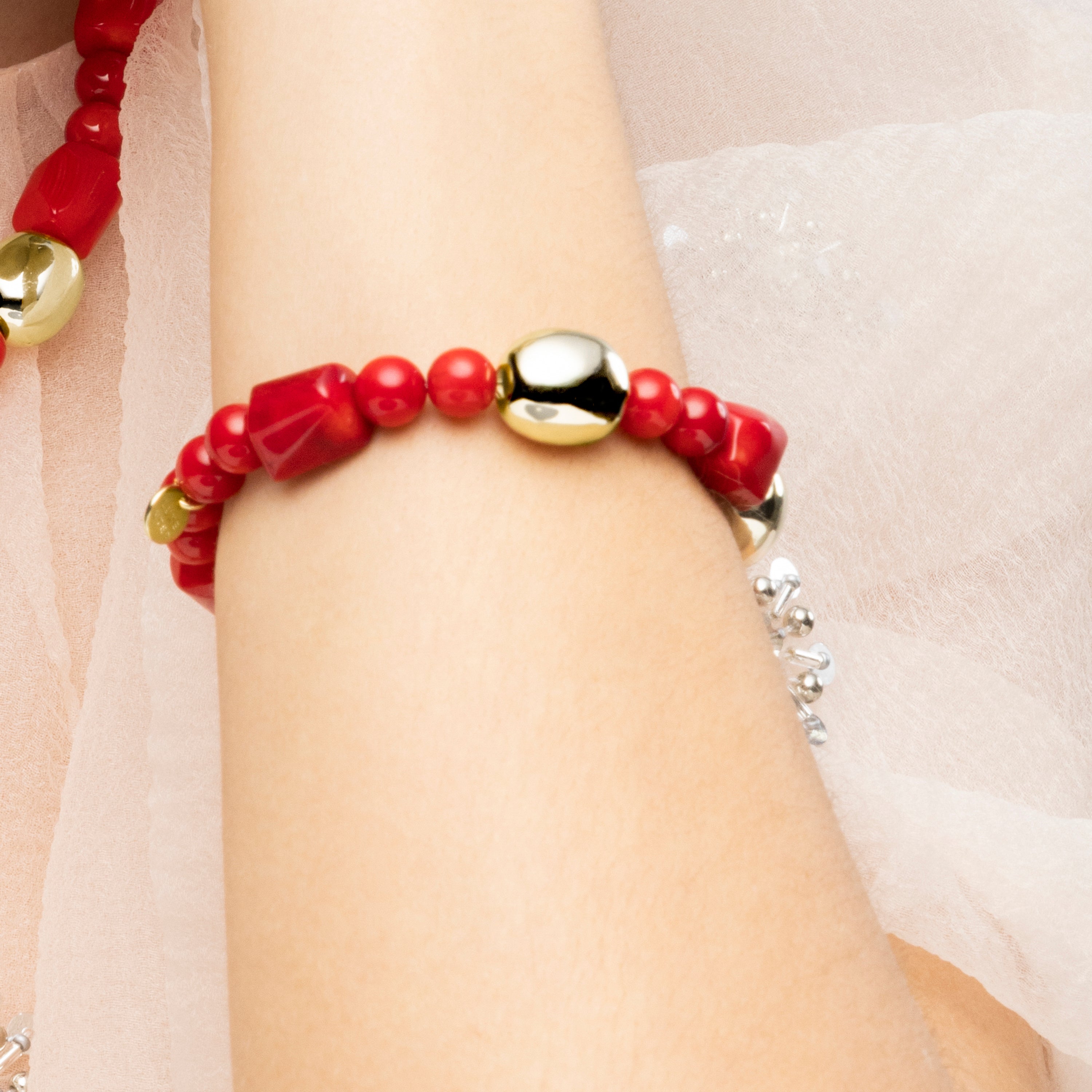 Caheart bracelet made of 925 sterling silver and coral with 18k yellow gold finish