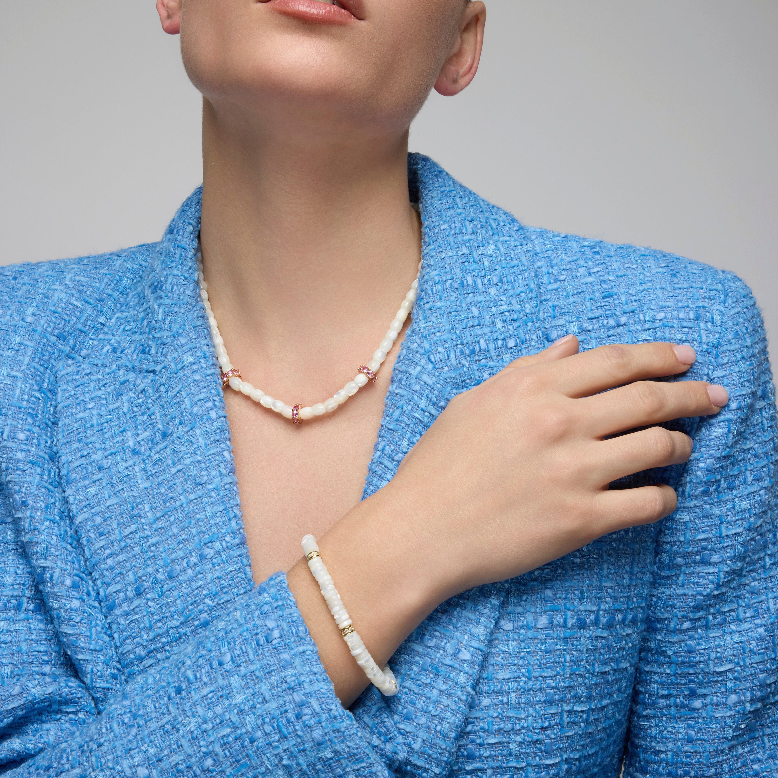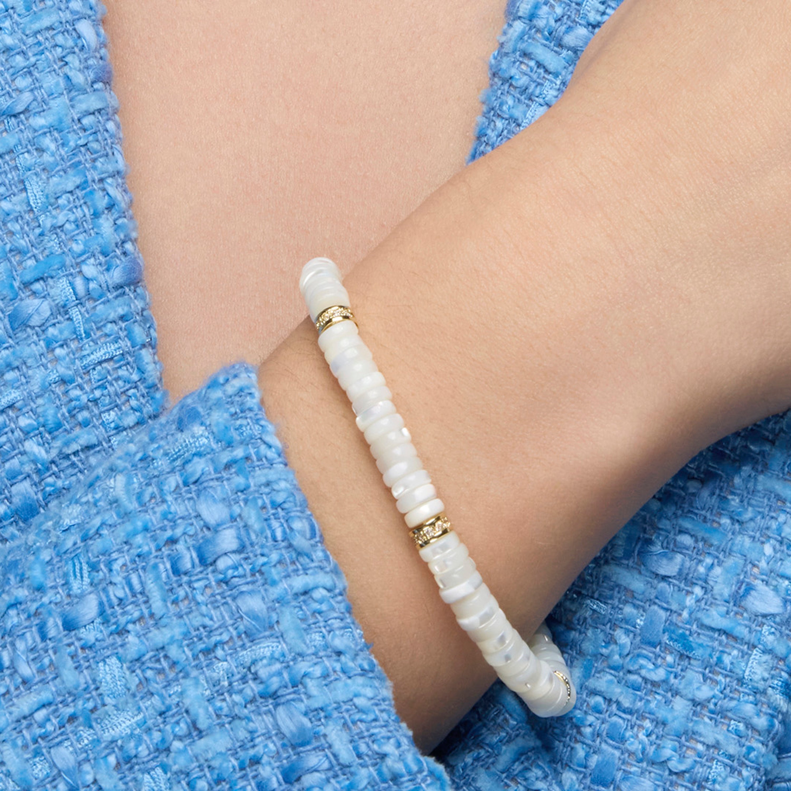 Fyro Bracelet in 925 Sterling Silver and White Mother of Pearl with 18k Yellow Gold Finish
