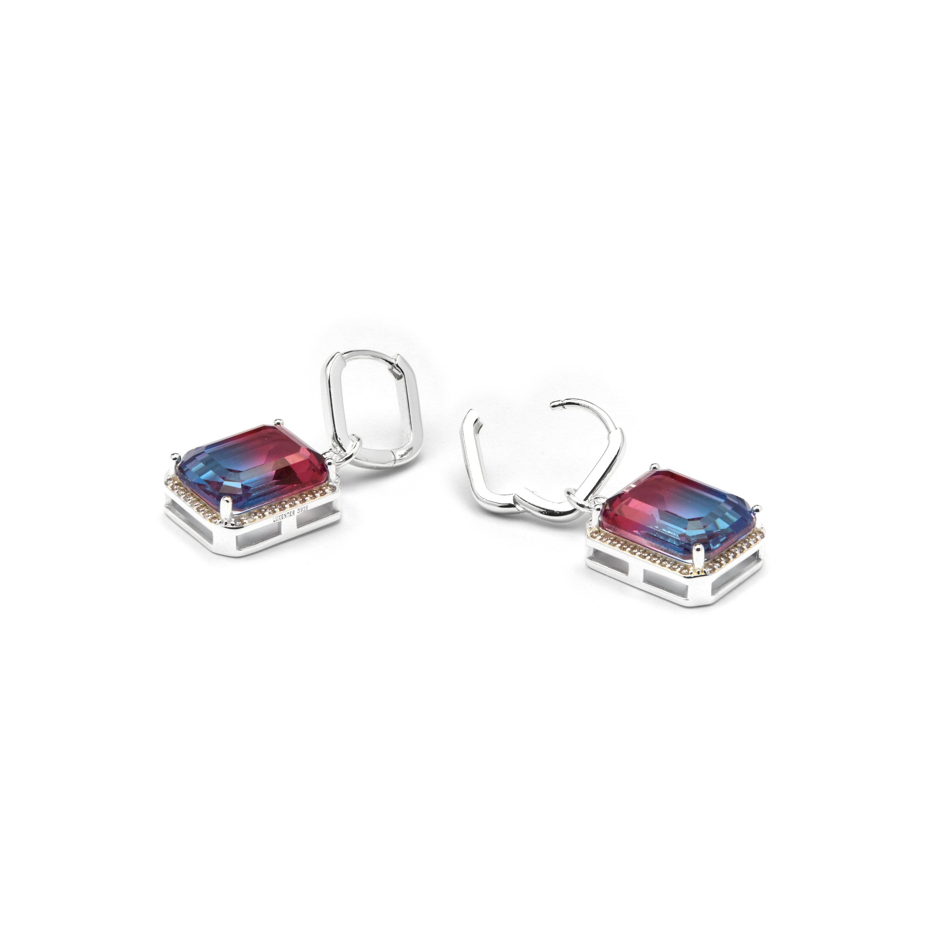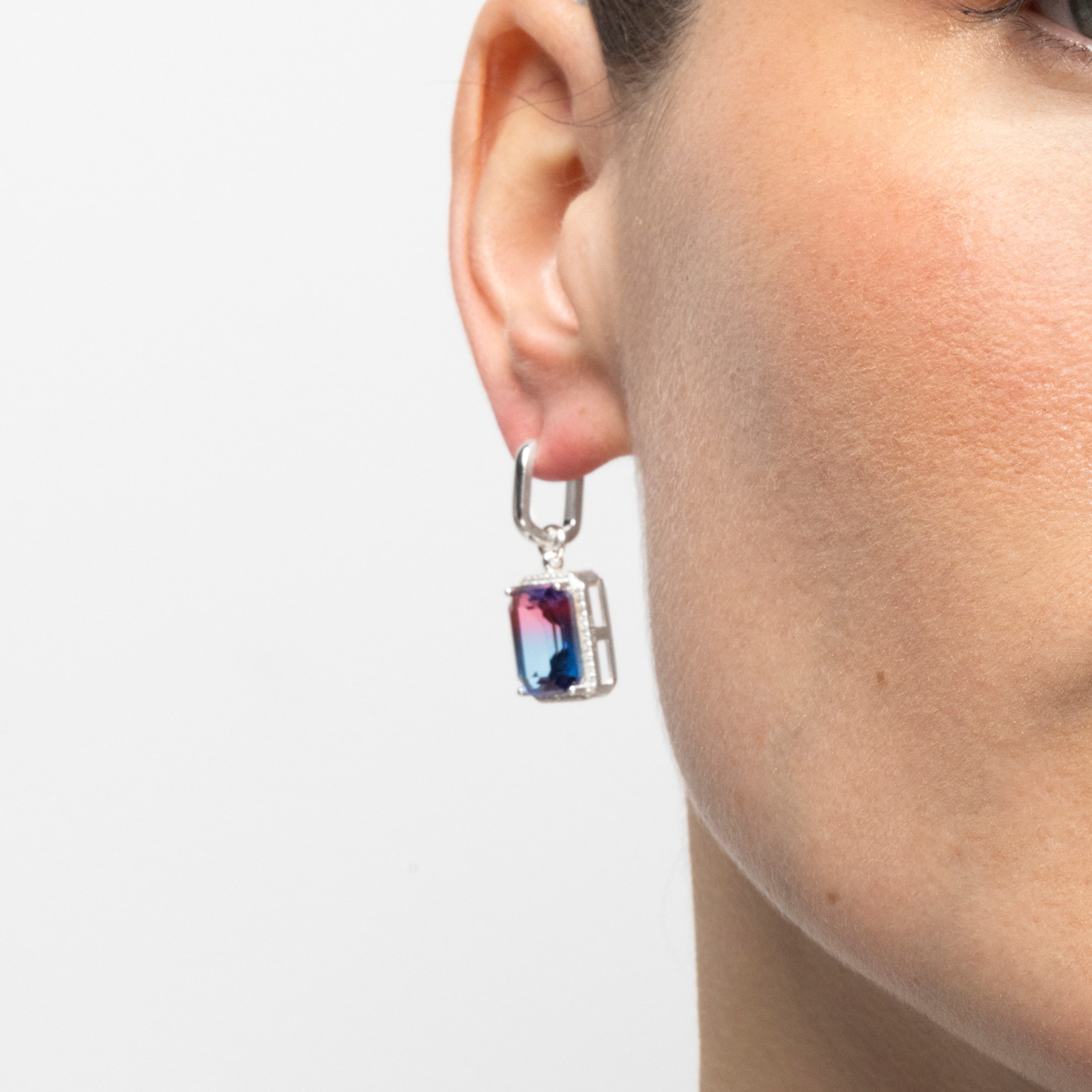 925 Sterling Silver Earrings with Blue Hydrothermal Quartz Gradient Rhodium Finish - Kakan