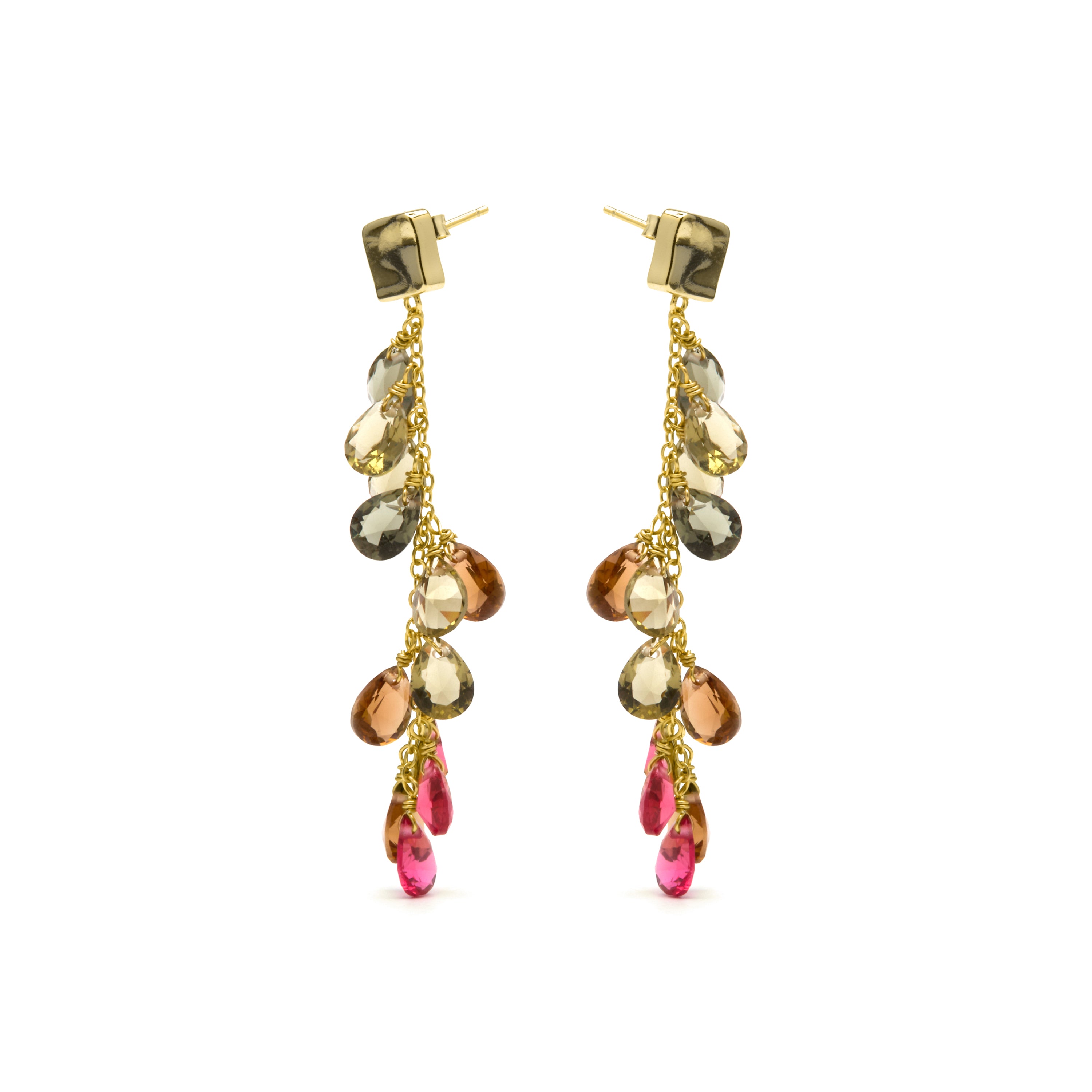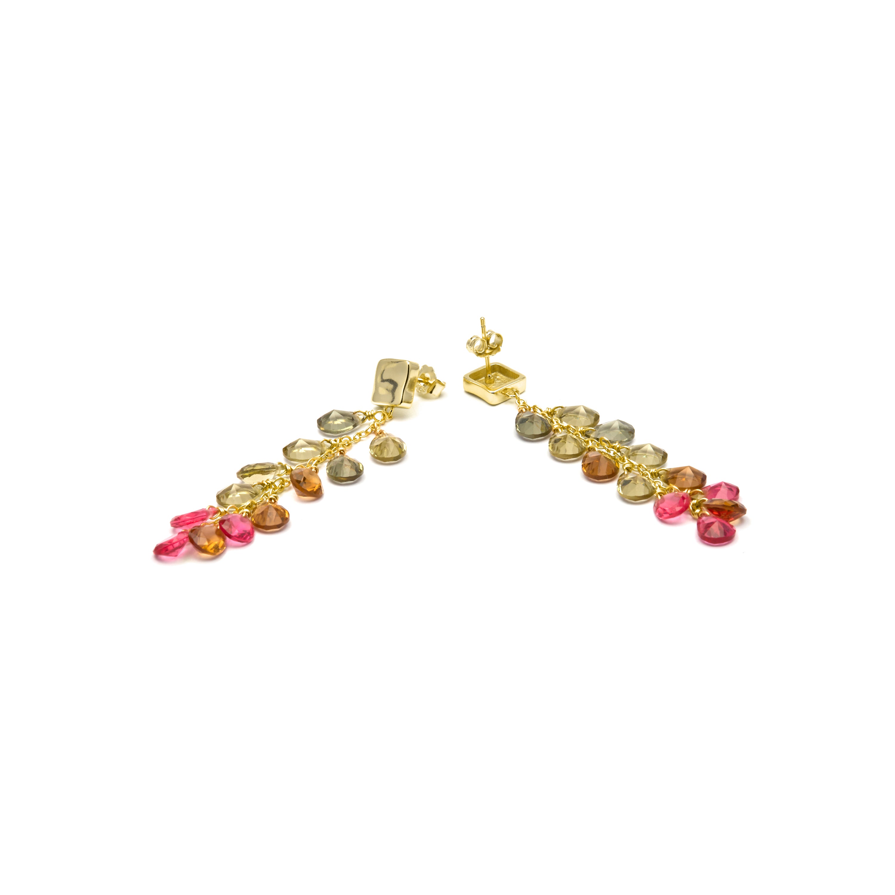 925 Sterling Silver Earrings with Multicolor Hydrothermal Quartz finished in 18k Yellow Gold - Jedo
