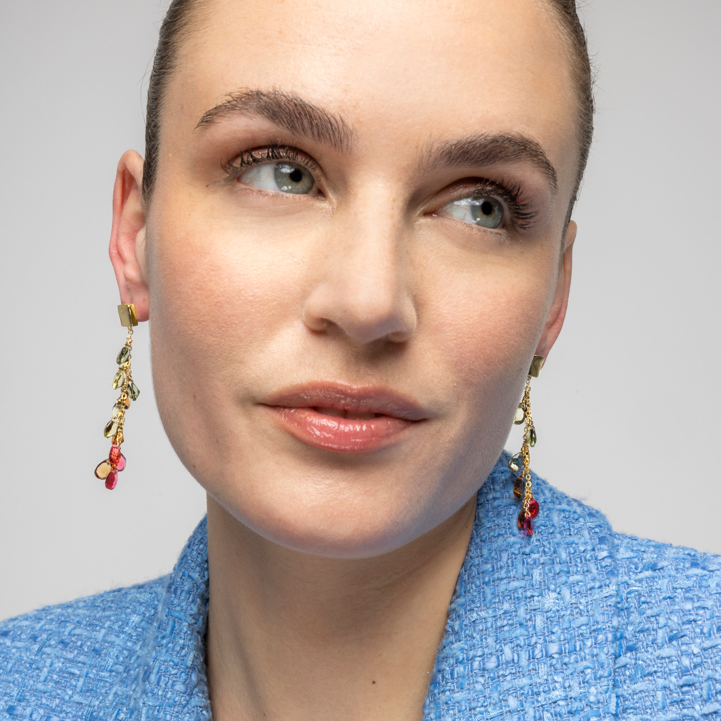 Jedo 925 Sterling Silver Earrings with Multicolor Hydrothermal Quartz finished in 18k Yellow Gold