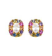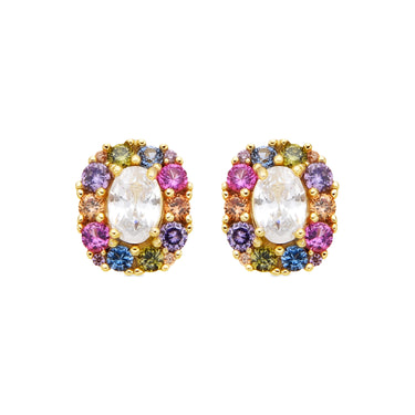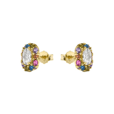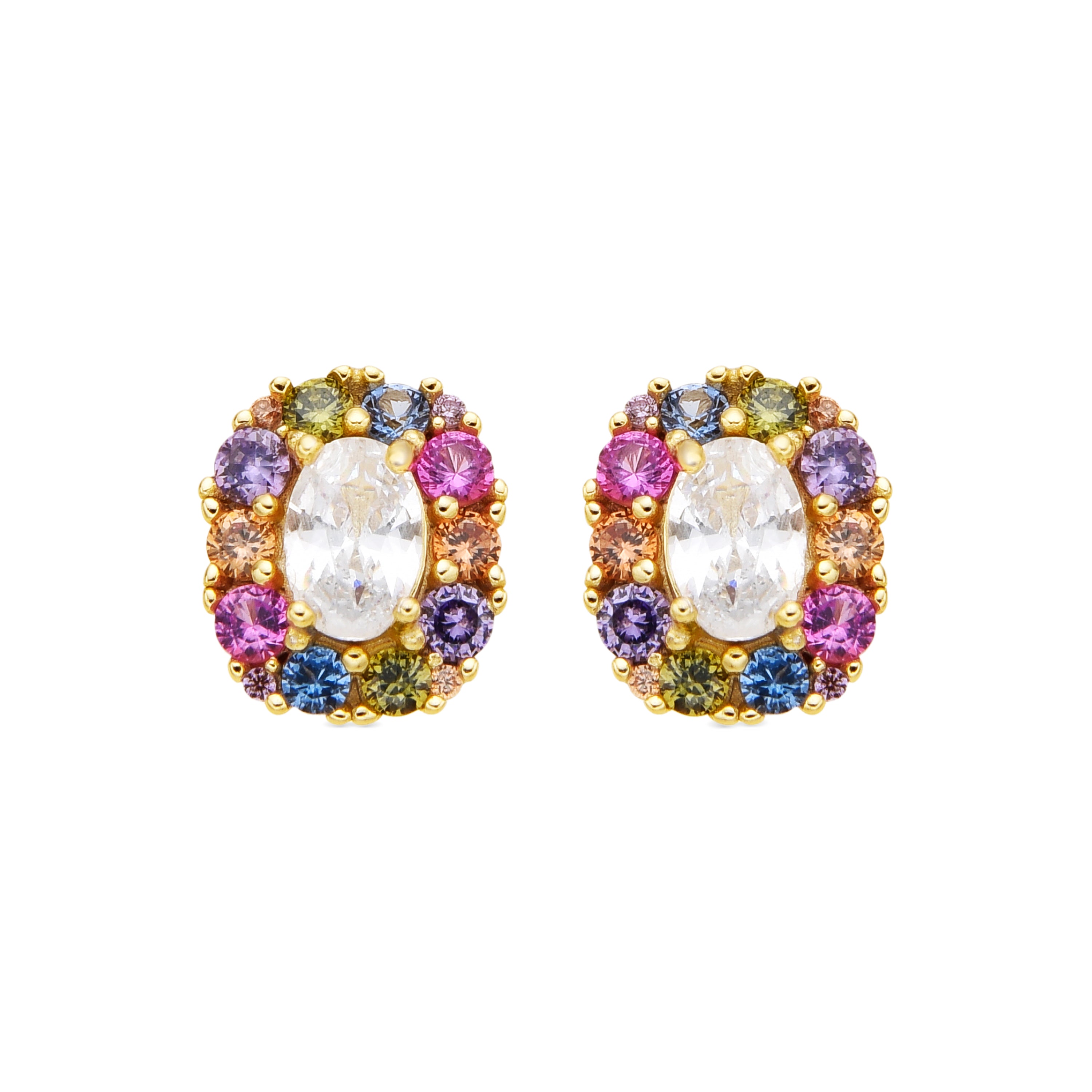 925 Sterling Silver Earrings with Multicolor Cubic Zirconia finished in 18k Yellow Gold - Mezay
