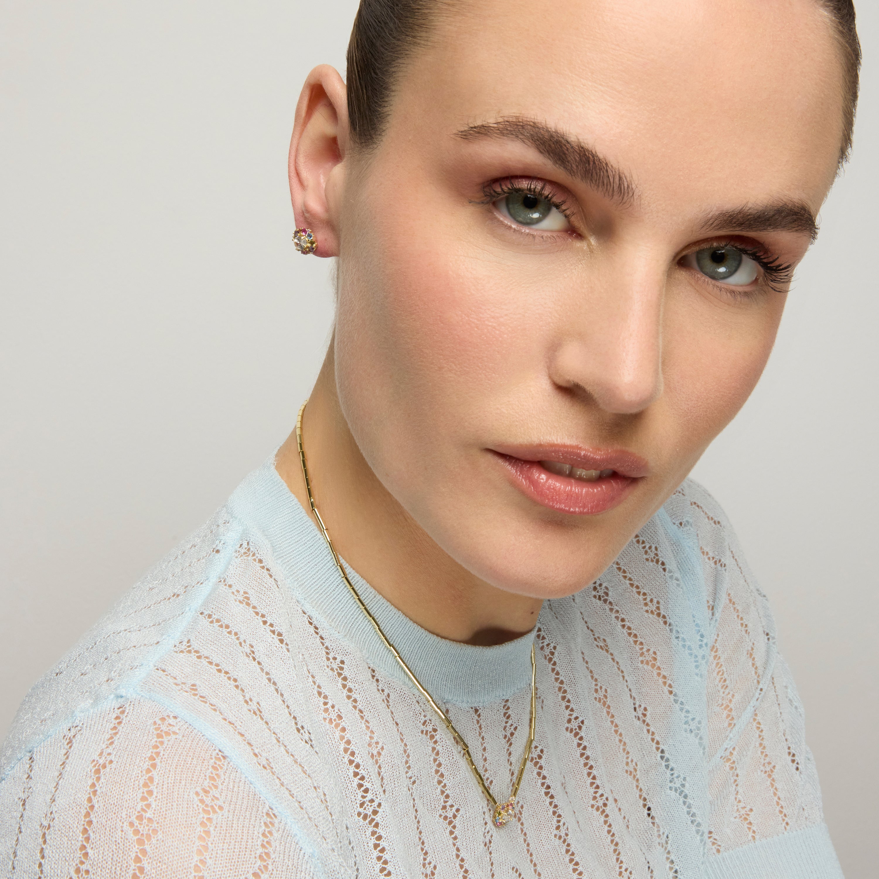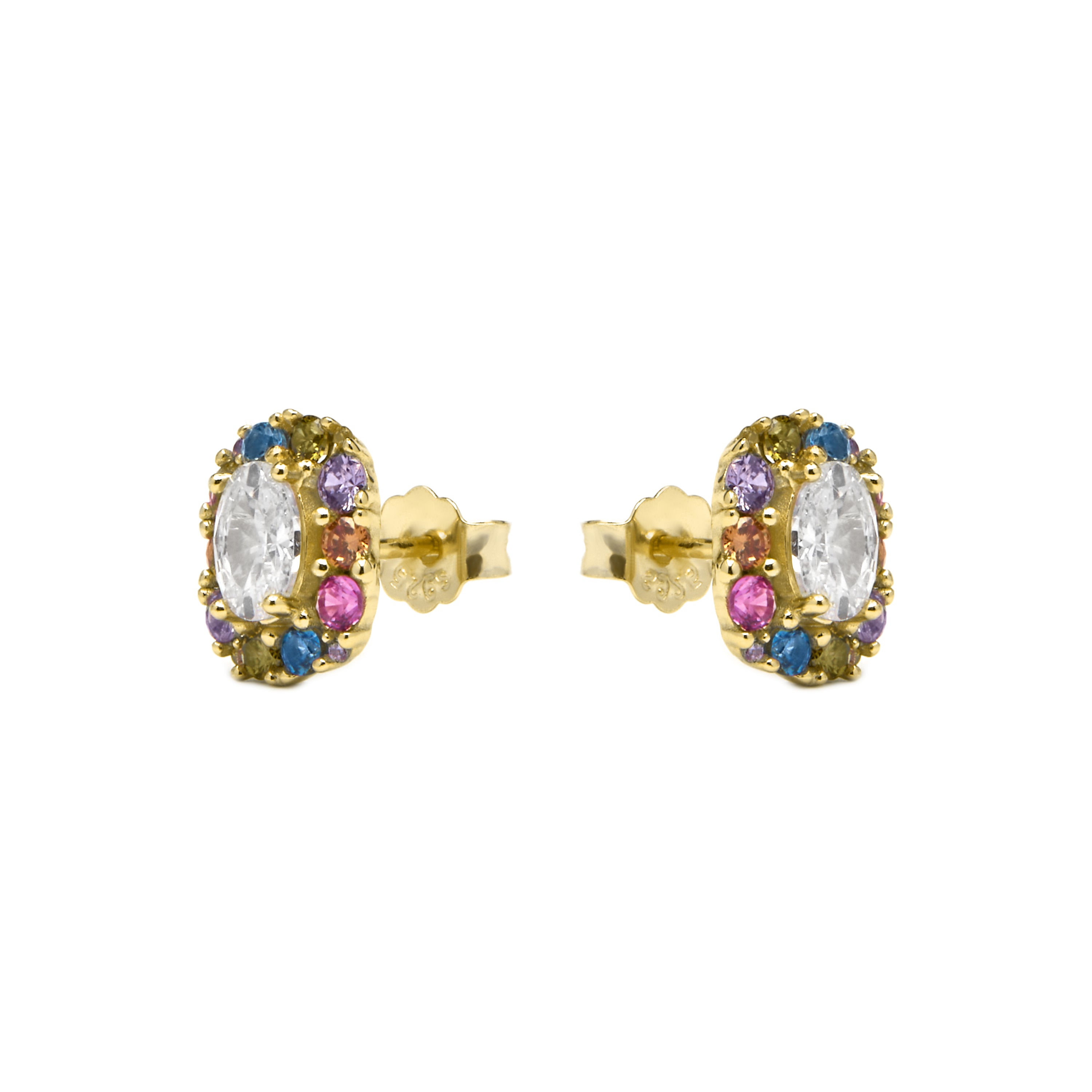 Mezay Earrings made of 925 Sterling Silver and Multicolor Cubic Zirconia with 18k Yellow Gold finish