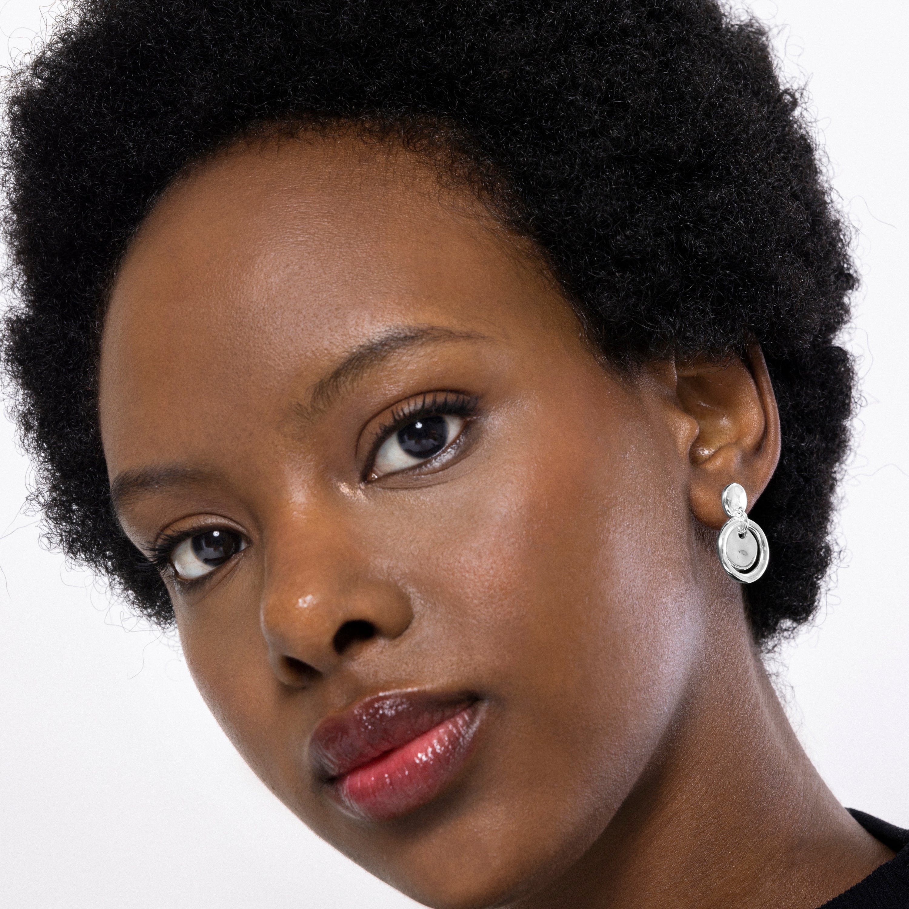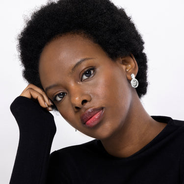 Pendientes Issum acabados en rodio. África Basic encarna la sencillez refinada, piezas atemporales con líneas suaves y el brillo adicional de las circonitas. Joyas básicas sin pretensiones que son perfectas para el uso diario, pero también pueden funcionar en ocasiones especiales.