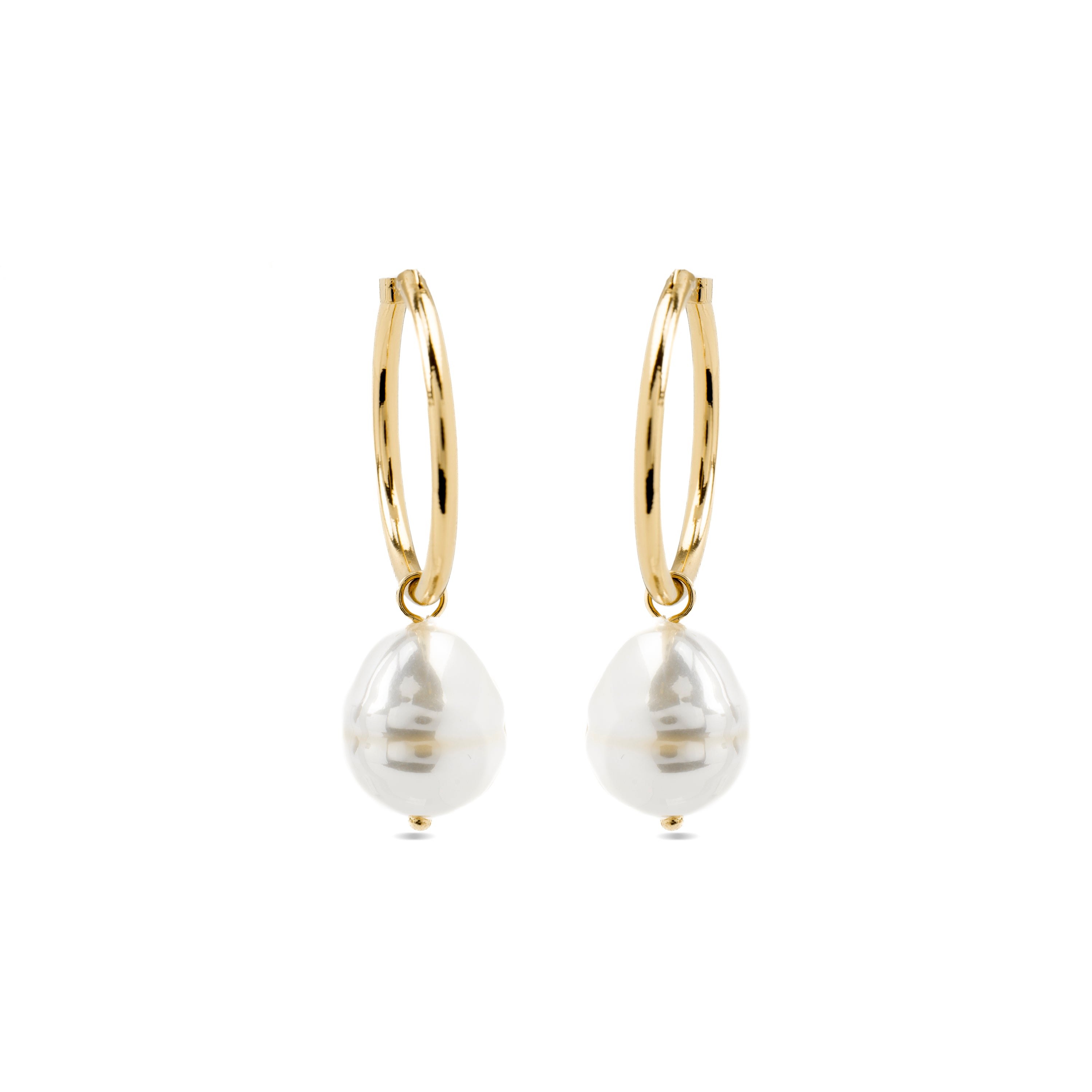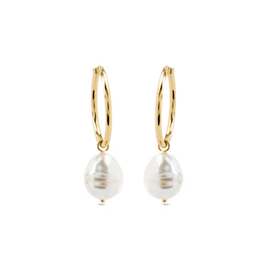 Pendientes con Perla Blanca acabado oro 18k - Nemys