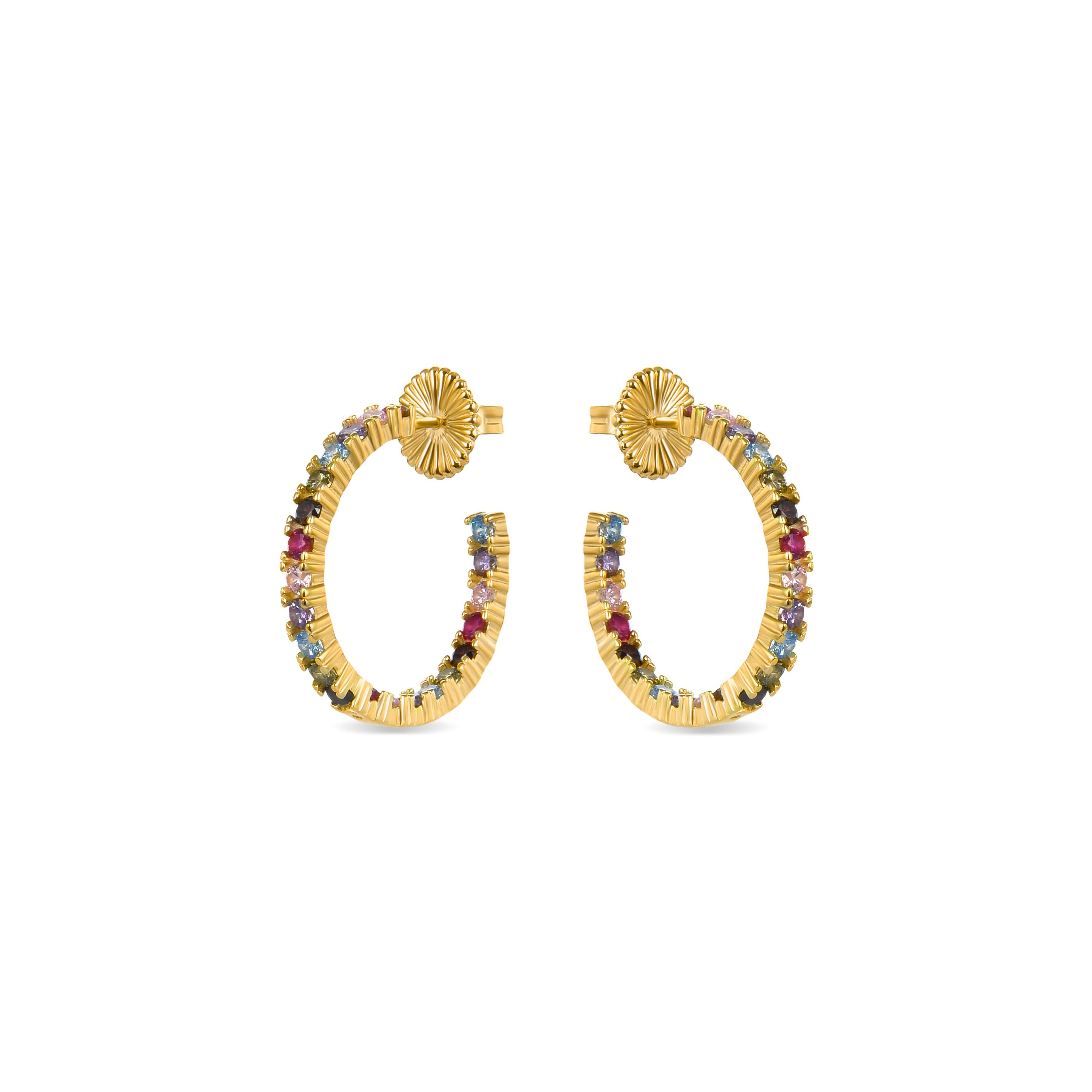 Pendientes de Plata de Ley 925 con Circonita Multicolor acabados en oro amarillo 18K - Vyamba