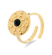 Anillo Elknu de Malaquita acabado oro 18k. África Moda te sumerge en un mundo de colores vibrantes, texturas exquisitas y diseños artesanales que reflejarán la esencia de tu espirítu.