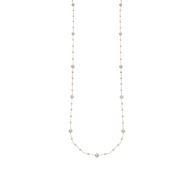 Collar Xyaz con Perla Blanca acabado oro 18k. Essential encarna la sencillez refinada, piezas atemporales con líneas suaves y el brillo adicional de las circonitas. Joyas básicas sin pretensiones que son perfectas para el uso diario, pero también pueden funcionar en ocasiones especiales.
