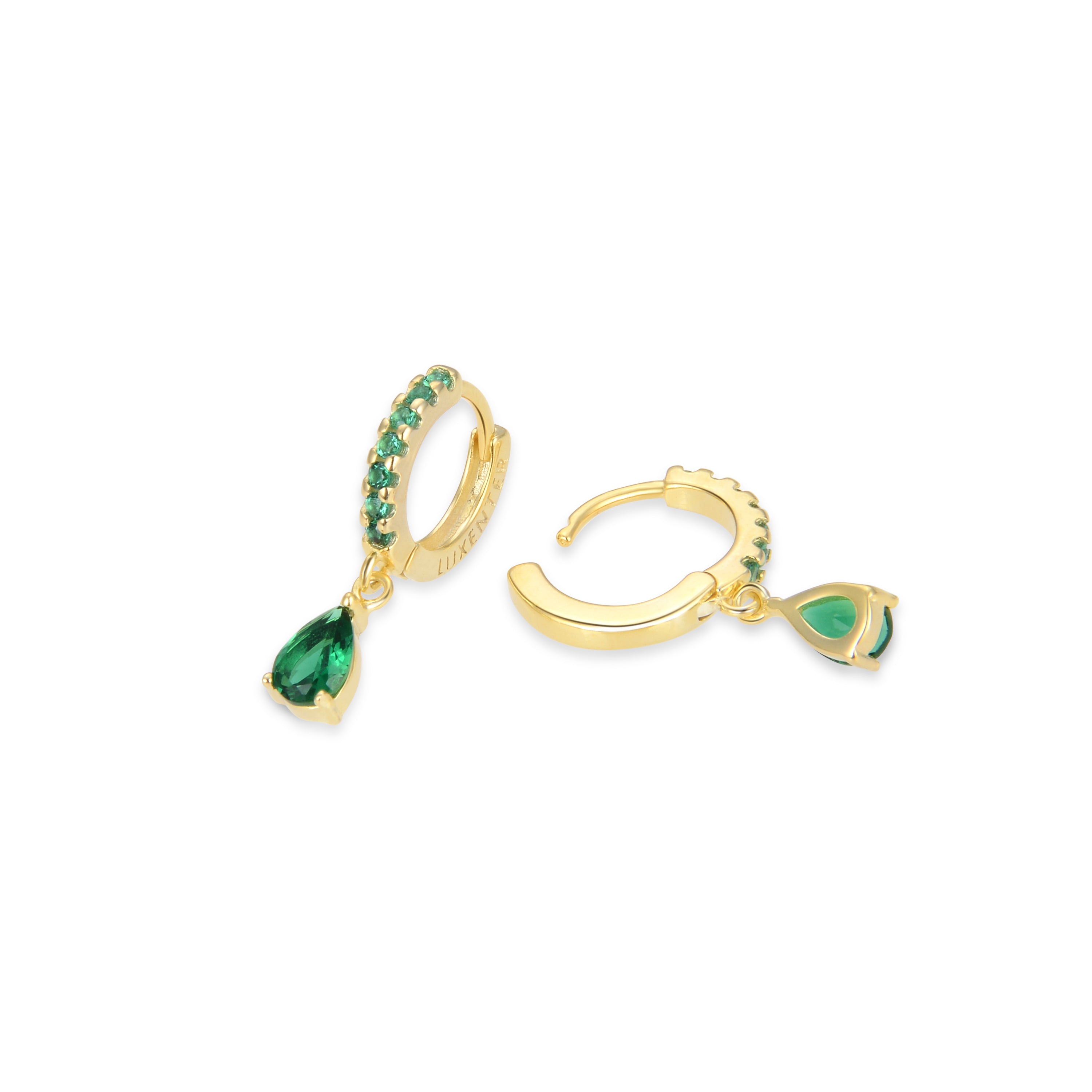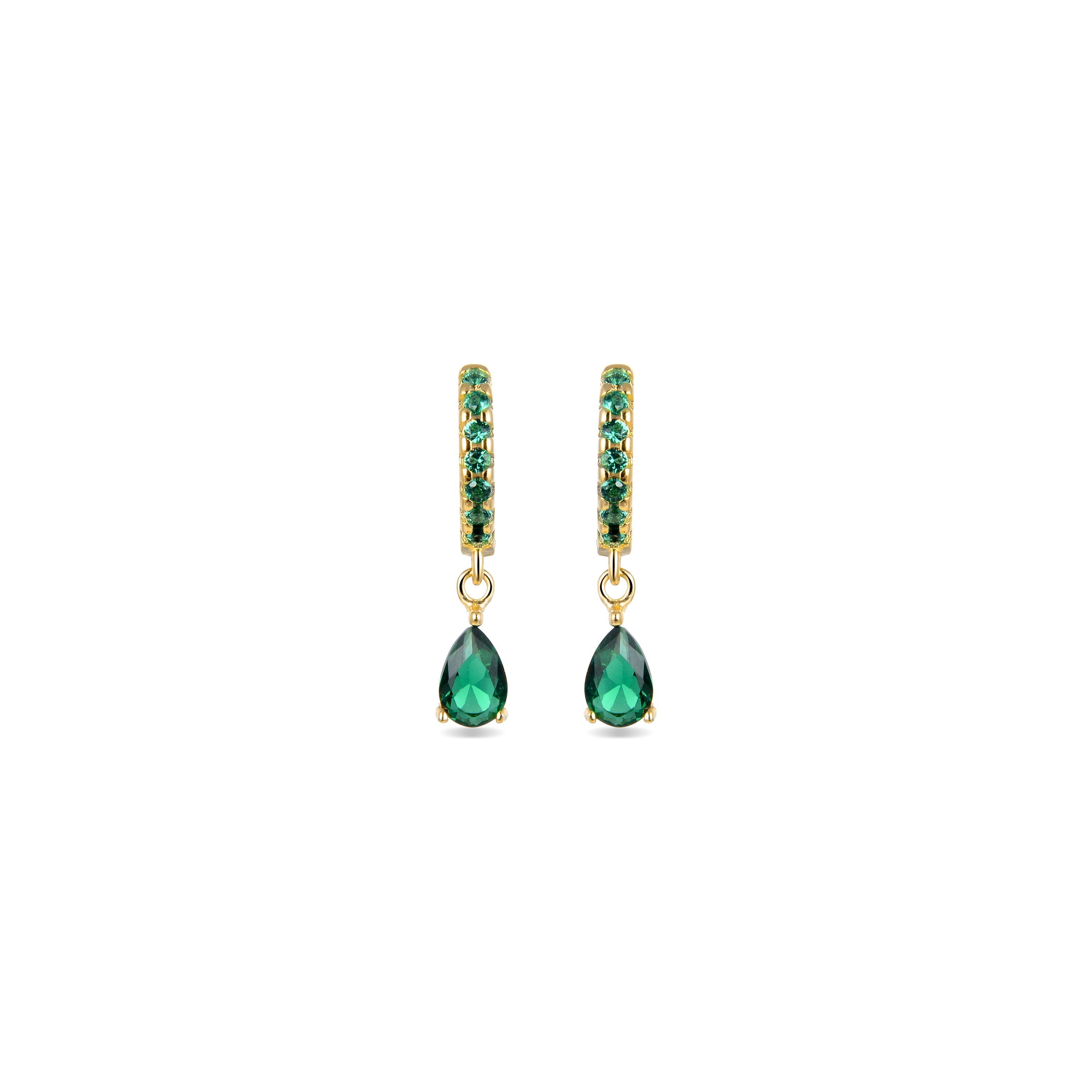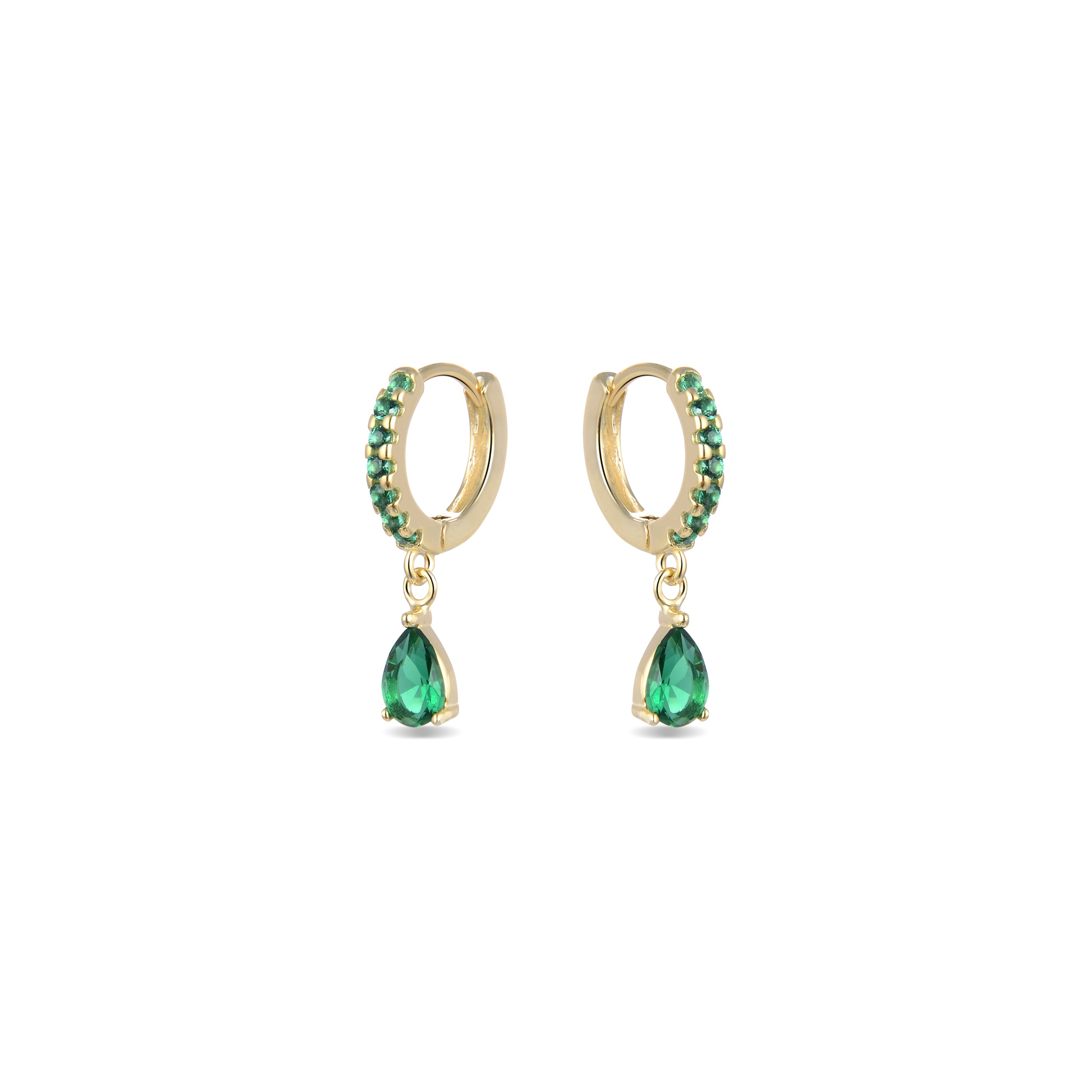 Pendientes de Plata de Ley 925 con Circonita Esmeralda acabados en oro amarillo 18K - Intheon