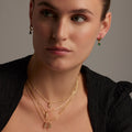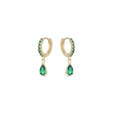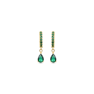 Pendientes Intheon de plata de ley 925 y Circonita Esmeralda acabado en baño de oro amarillo de 18 quilates. Trendy representa las tendencias clave en el mundo de la moda. Nuestra línea más espontanea, con un marcado carácter boho y espíritu moderno que concentra en joyas repletas de color entre las que destaca el uso de piedras naturales y diseños en forma de amuletos y talismanes.