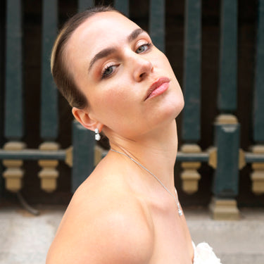 Pendientes Kium con Circonita Brillante acabado en baño de rodio. África Basic encarna la sencillez refinada, piezas atemporales con líneas suaves y el brillo adicional de las circonitas. Joyas básicas sin pretensiones que son perfectas para el uso diario, pero también pueden funcionar en ocasiones especiales.