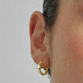 Pendientes Mahne con Circonita Brillante acabado en oro amarillo de 18K. África Basic encarna la sencillez refinada, piezas atemporales con líneas suaves y el brillo adicional de las circonitas. Joyas básicas sin pretensiones que son perfectas para el uso diario, pero también pueden funcionar en ocasiones especiales.