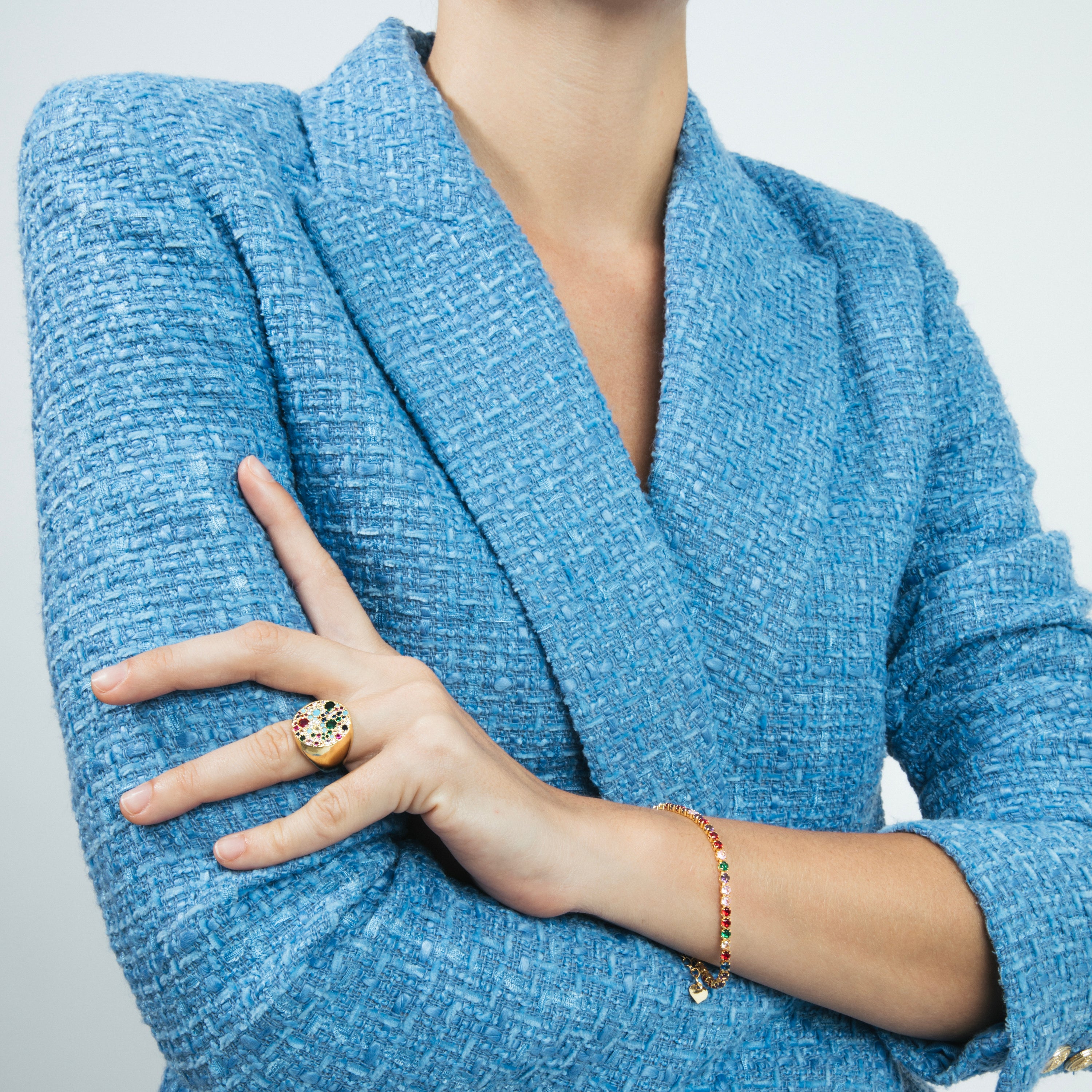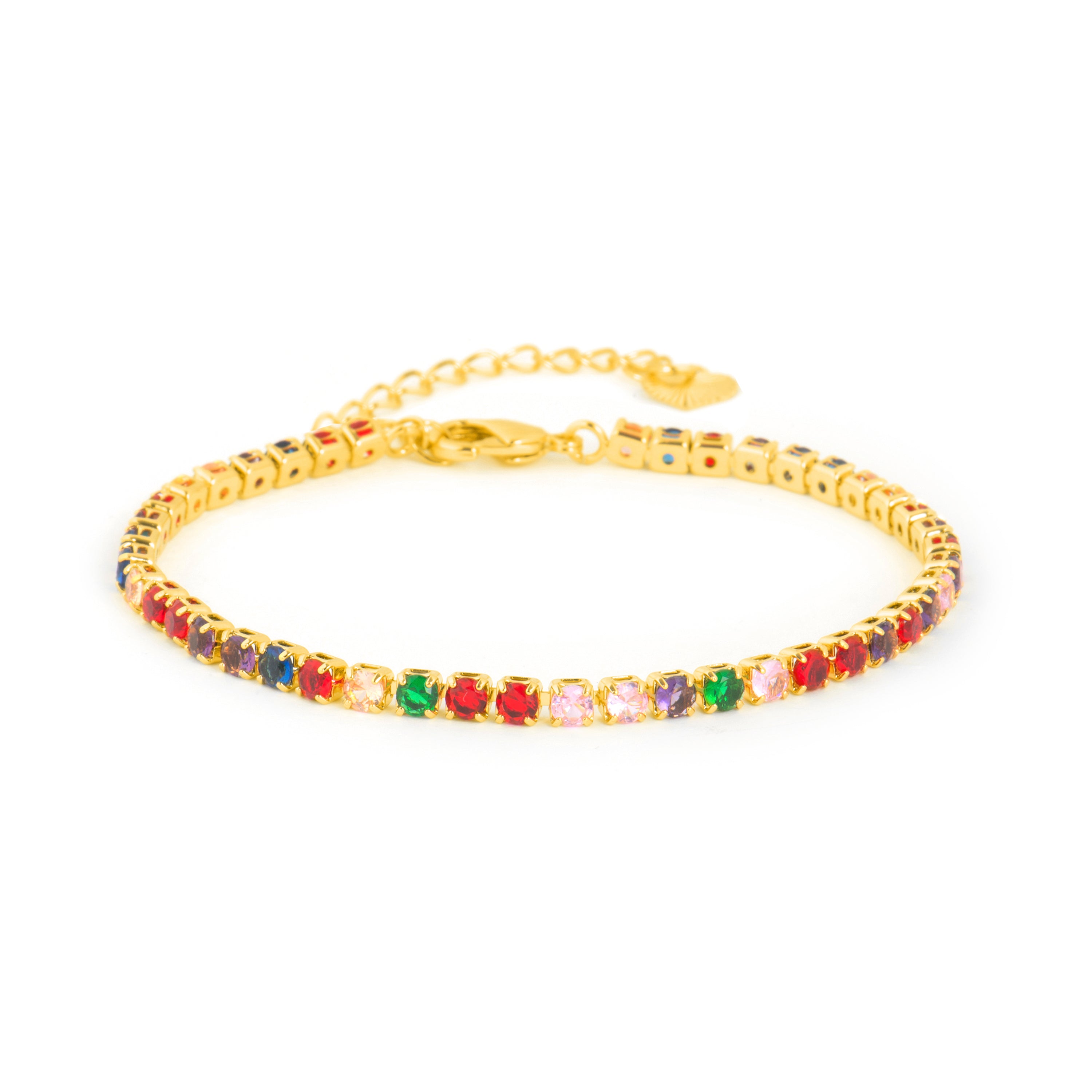 Pulsera Asio con circonita multicolor acabado oro amarillo 18k