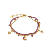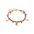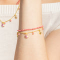 Pulsera de metal Ethal con Cristal Rosa acabado oro 18k. El estilo Boho es una estética de espíritu libre que mezcla diferentes culturas y expresiones artísticas en un estilo ecléctico con énfasis en los elementos orgánicos y la naturaleza.