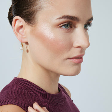 Pendientes Essential de Plata de Ley 925 y Perla Blanca acabados en oro amarillo de 18 quilates. Essential encarna la sencillez refinada, piezas atemporales con líneas suaves y el brillo adicional de las circonitas. Joyas básicas sin pretensiones que son perfectas para el uso diario, pero también pueden funcionar en ocasiones especiales.