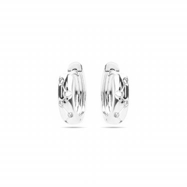 Pendientes Gruk acabado plata. Essential encarna la sencillez refinada, piezas atemporales con líneas suaves y el brillo adicional de las circonitas. Joyas básicas sin pretensiones que son perfectas para el uso diario, pero también pueden funcionar en ocasiones especiales.