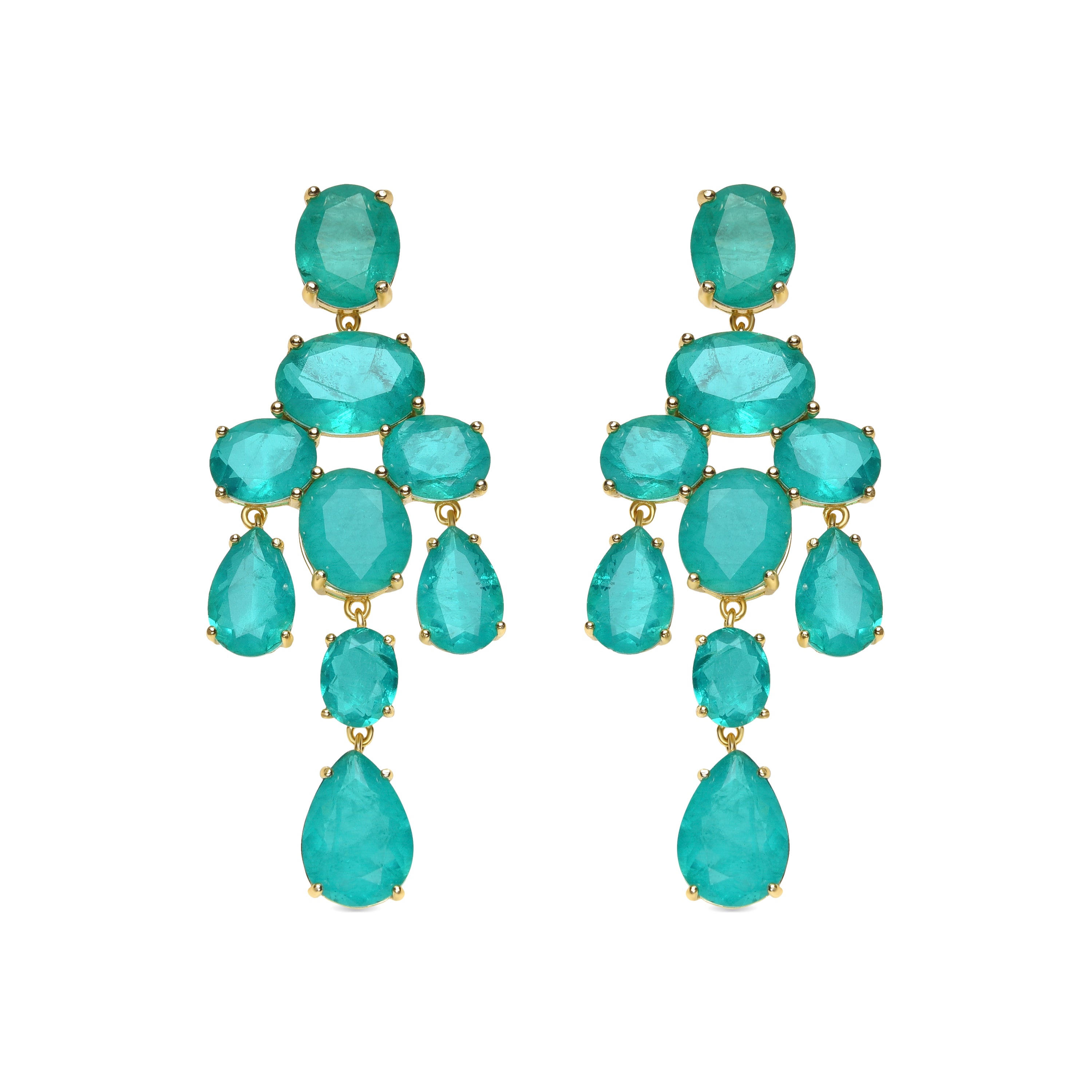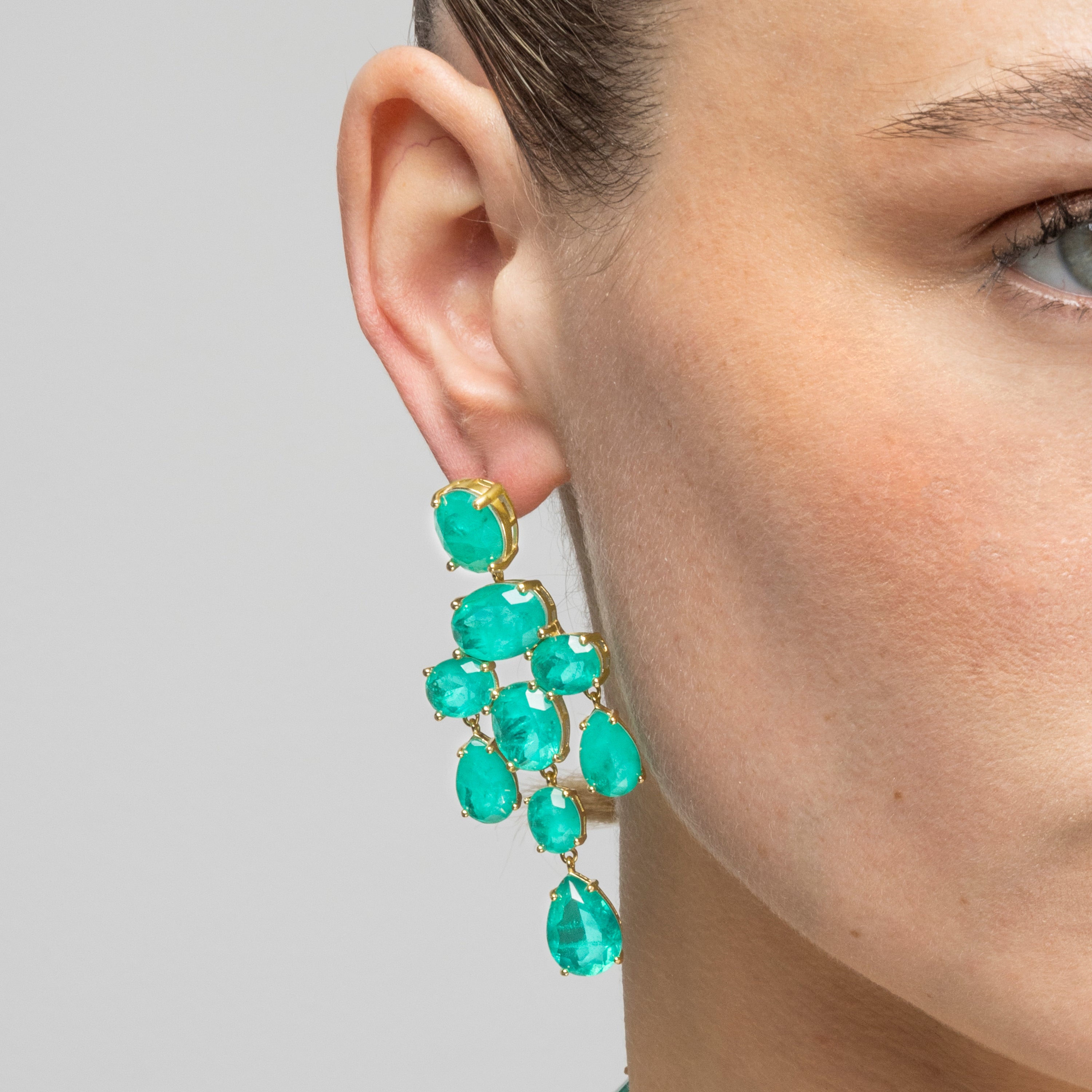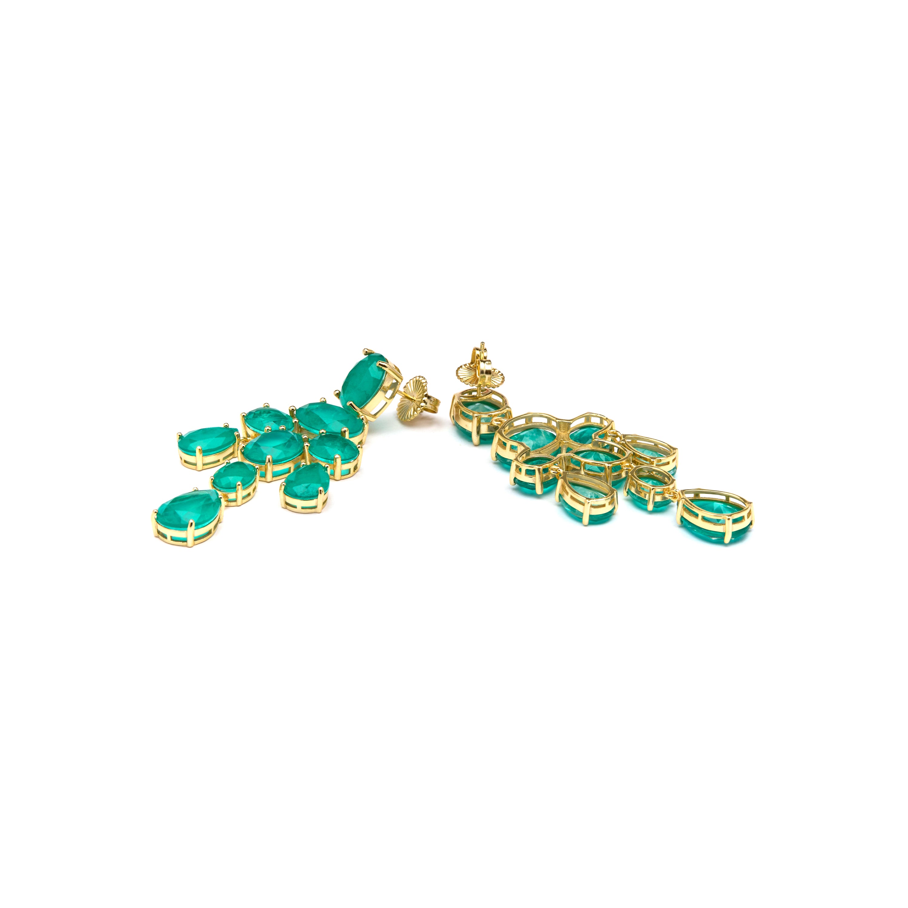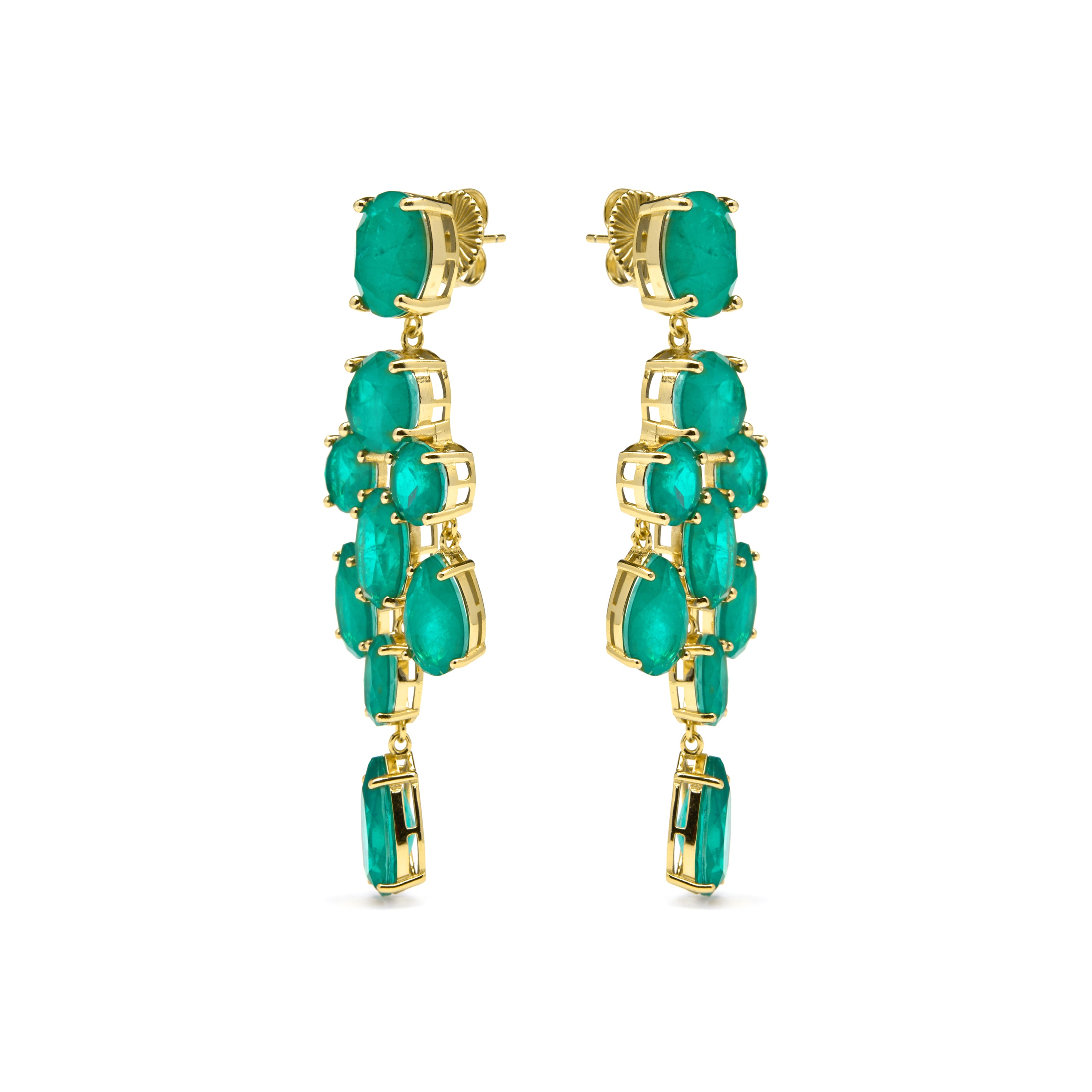 Pendientes de Plata de Ley 925 y Cuarzo Hidrotermal Verde Paraiba acabado oro amarillo de 18k - Kimid