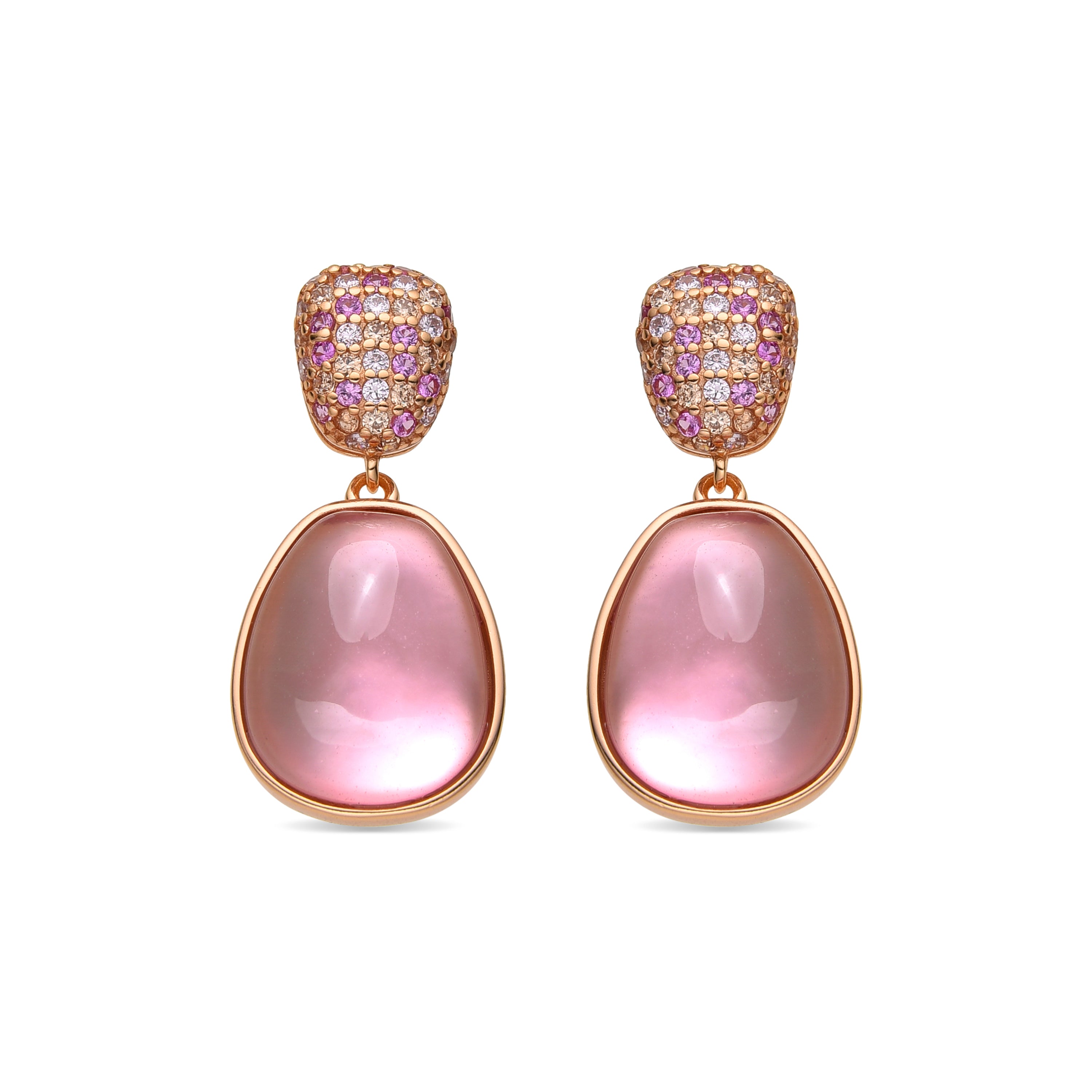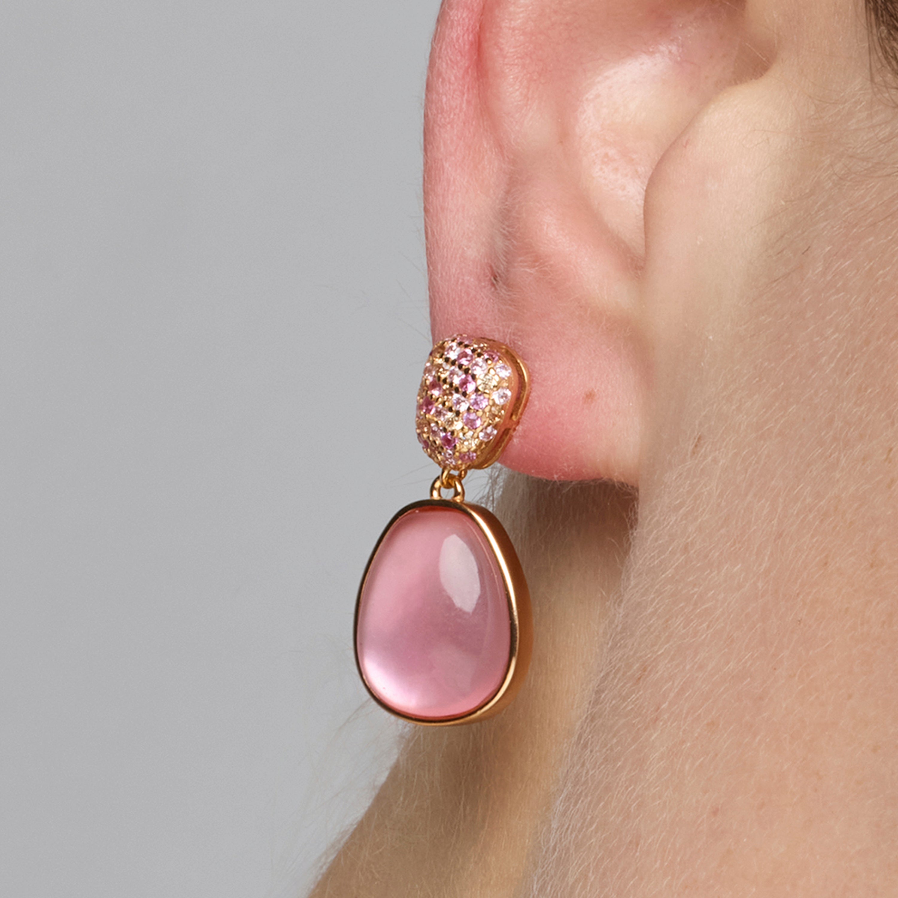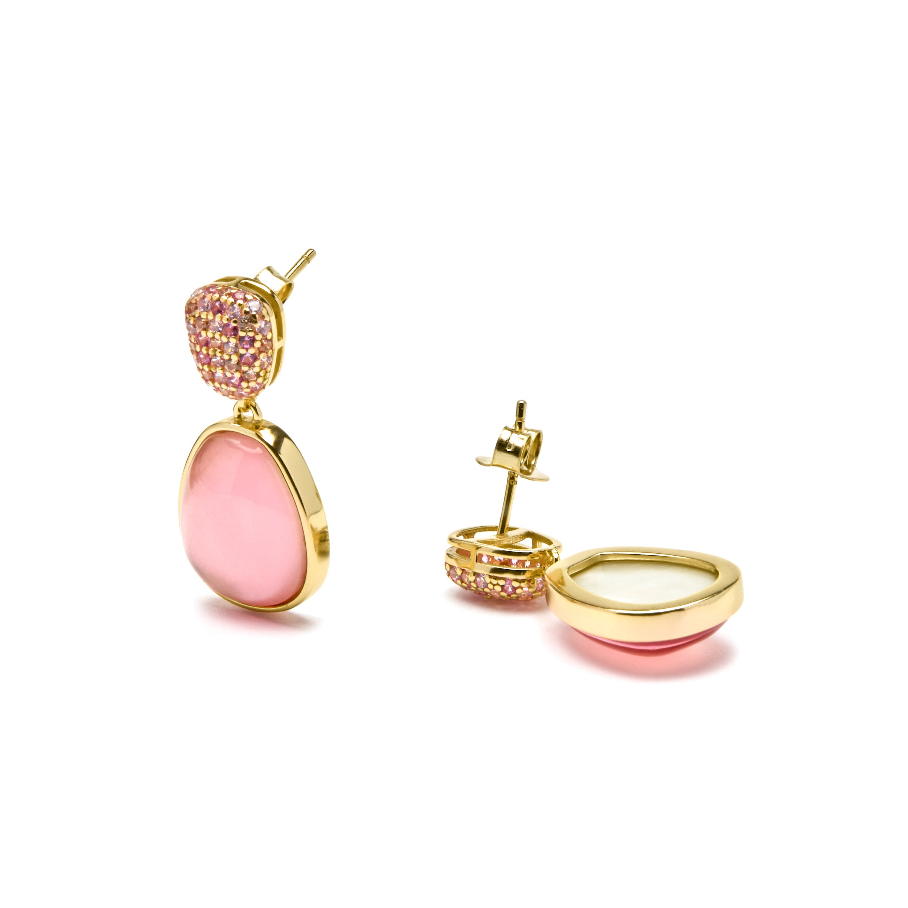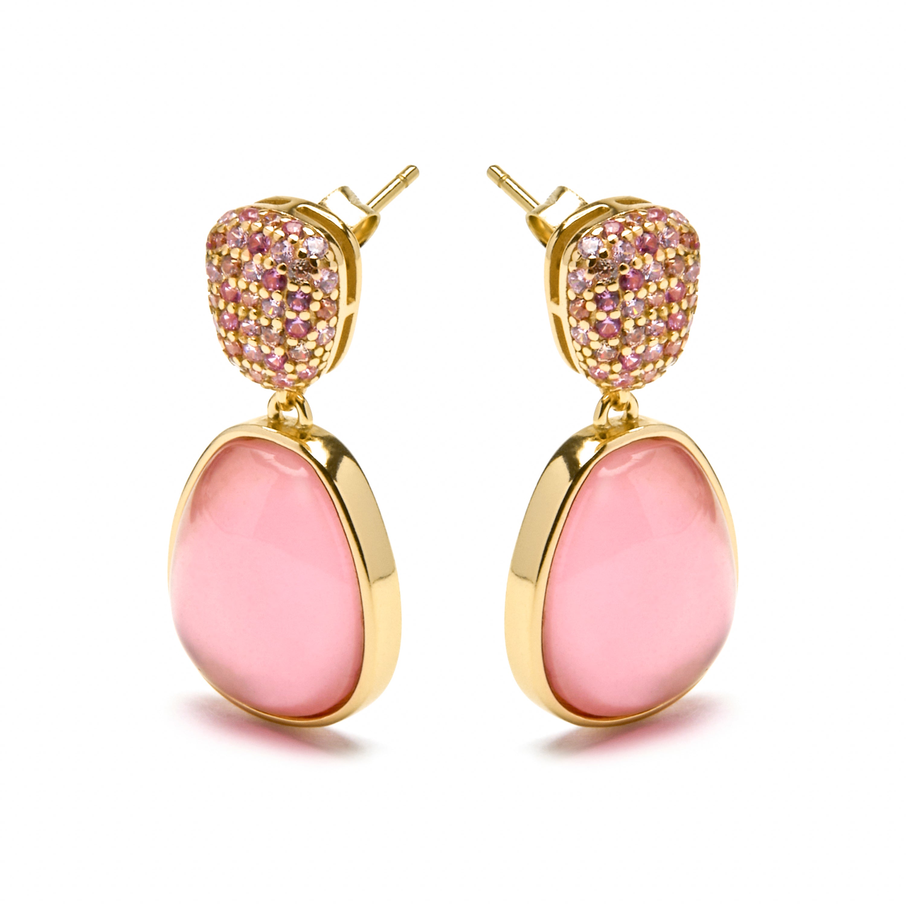 Pendientes Kiziane de Plata de Ley 925 y Doblete de Madreperla Rosa / Cristal acabado oro amarillo de 18k