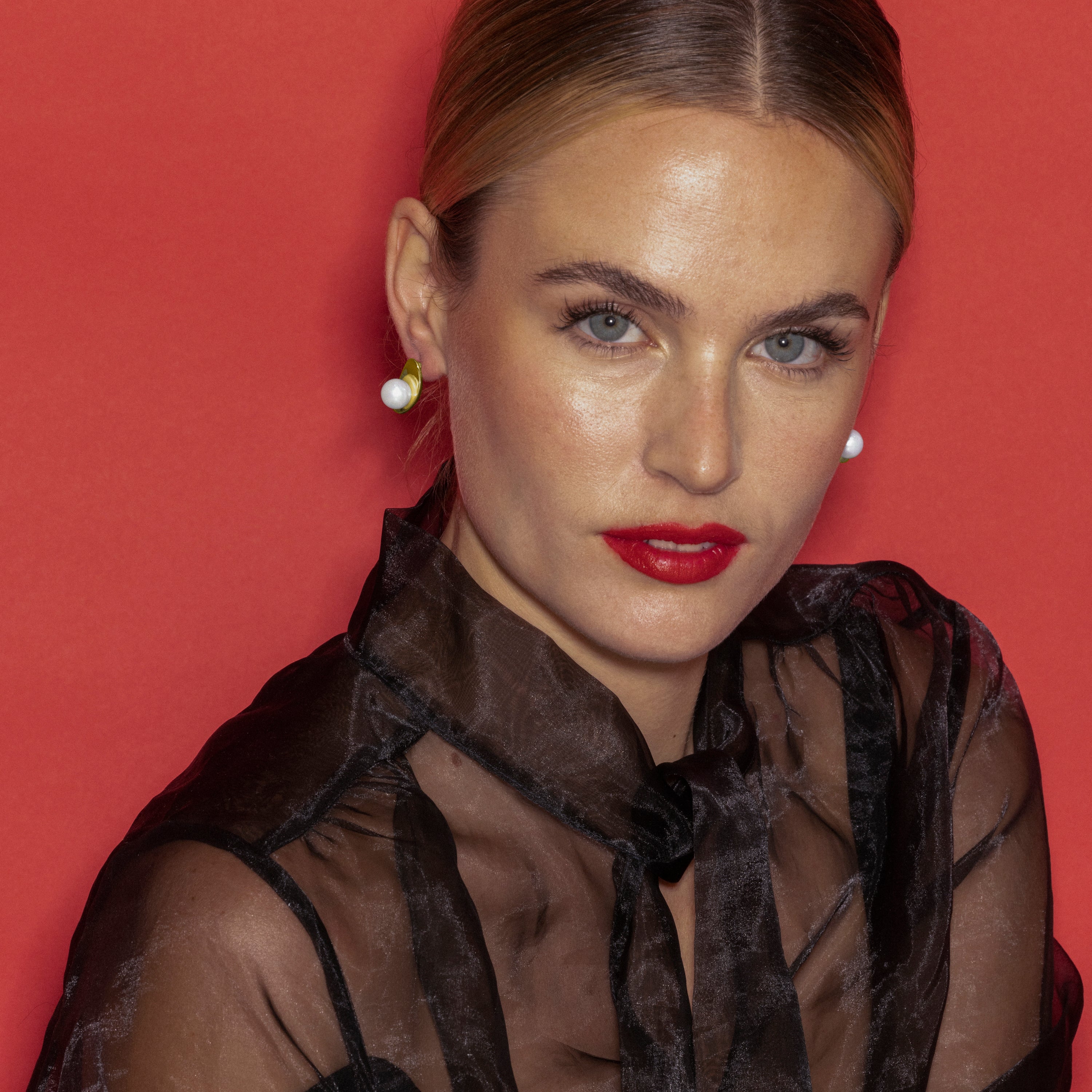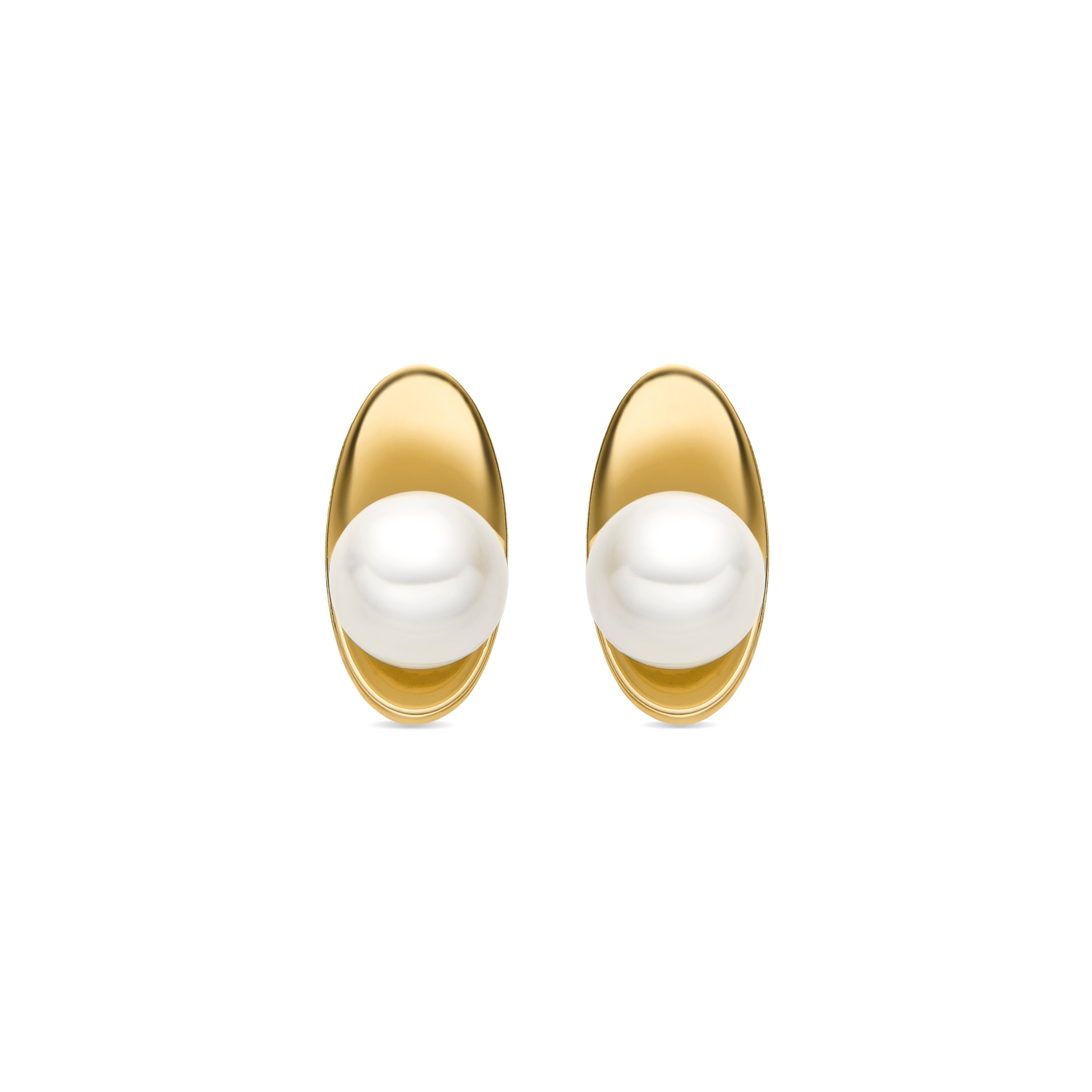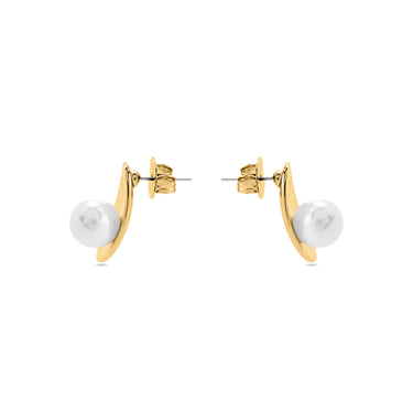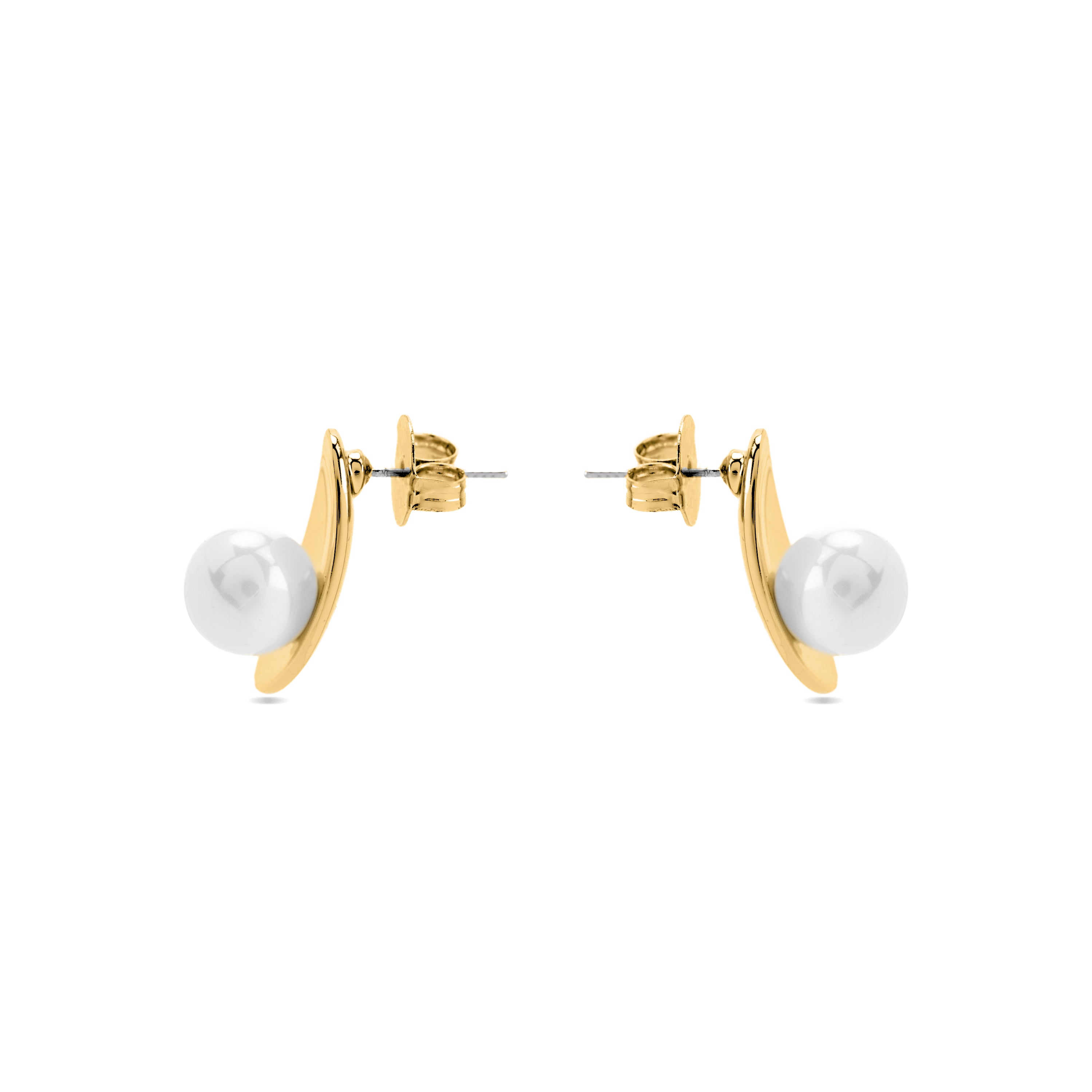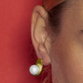Pendientes Lyhu con Perla Blanca acabado oro 18k. África se convierte en la línea perfecta para mujeres con personalidad, que no temen arriesgar y lucir piezas con carácter propio.