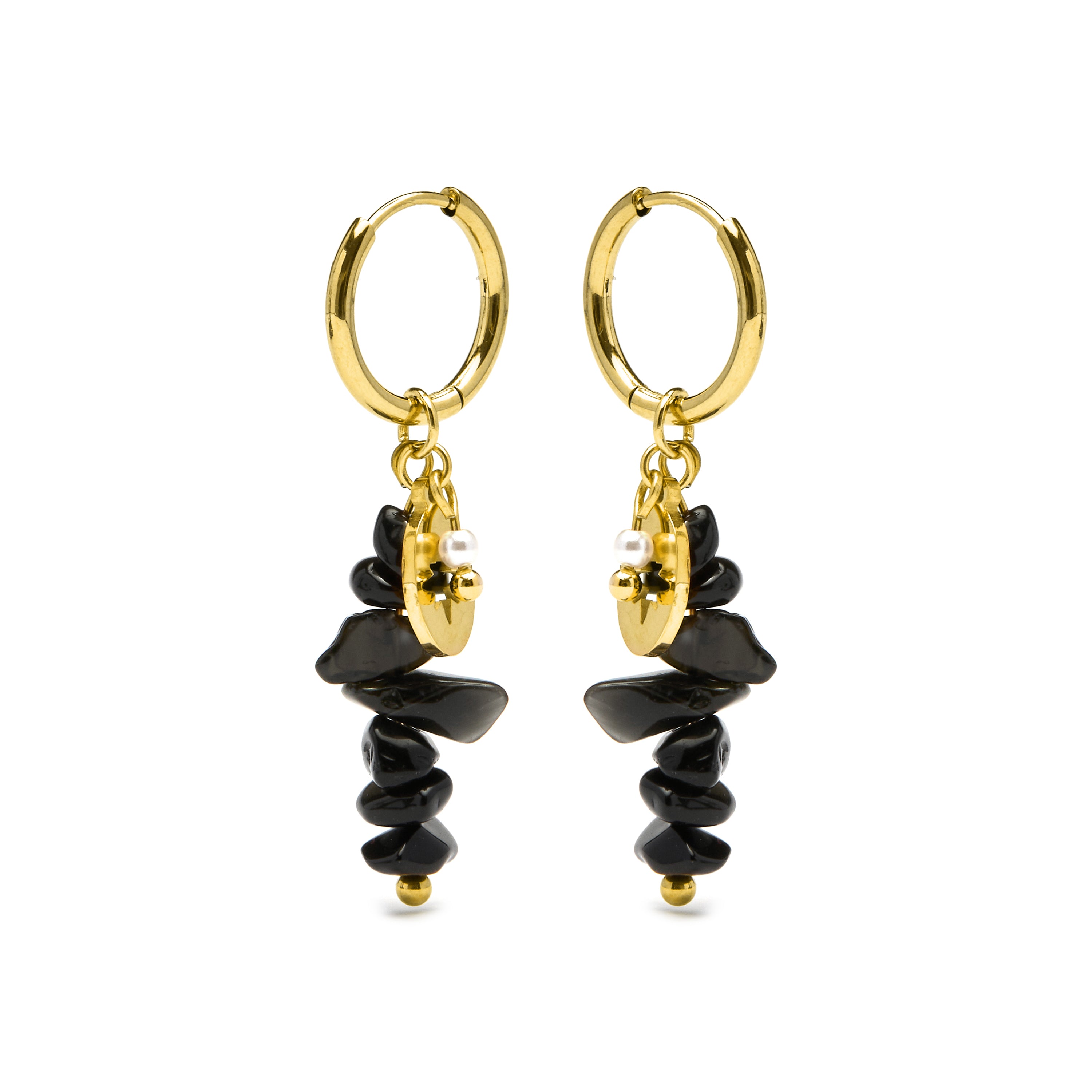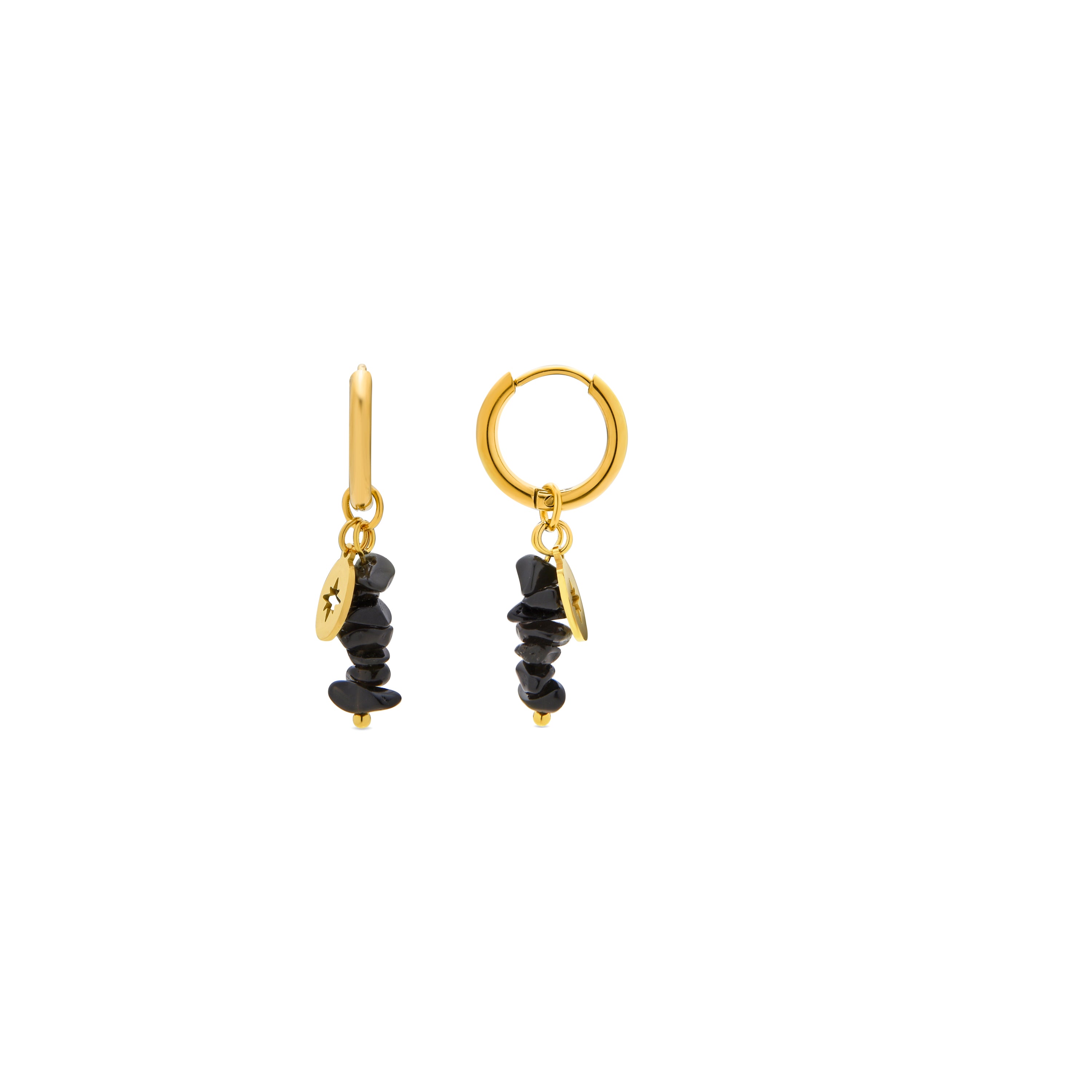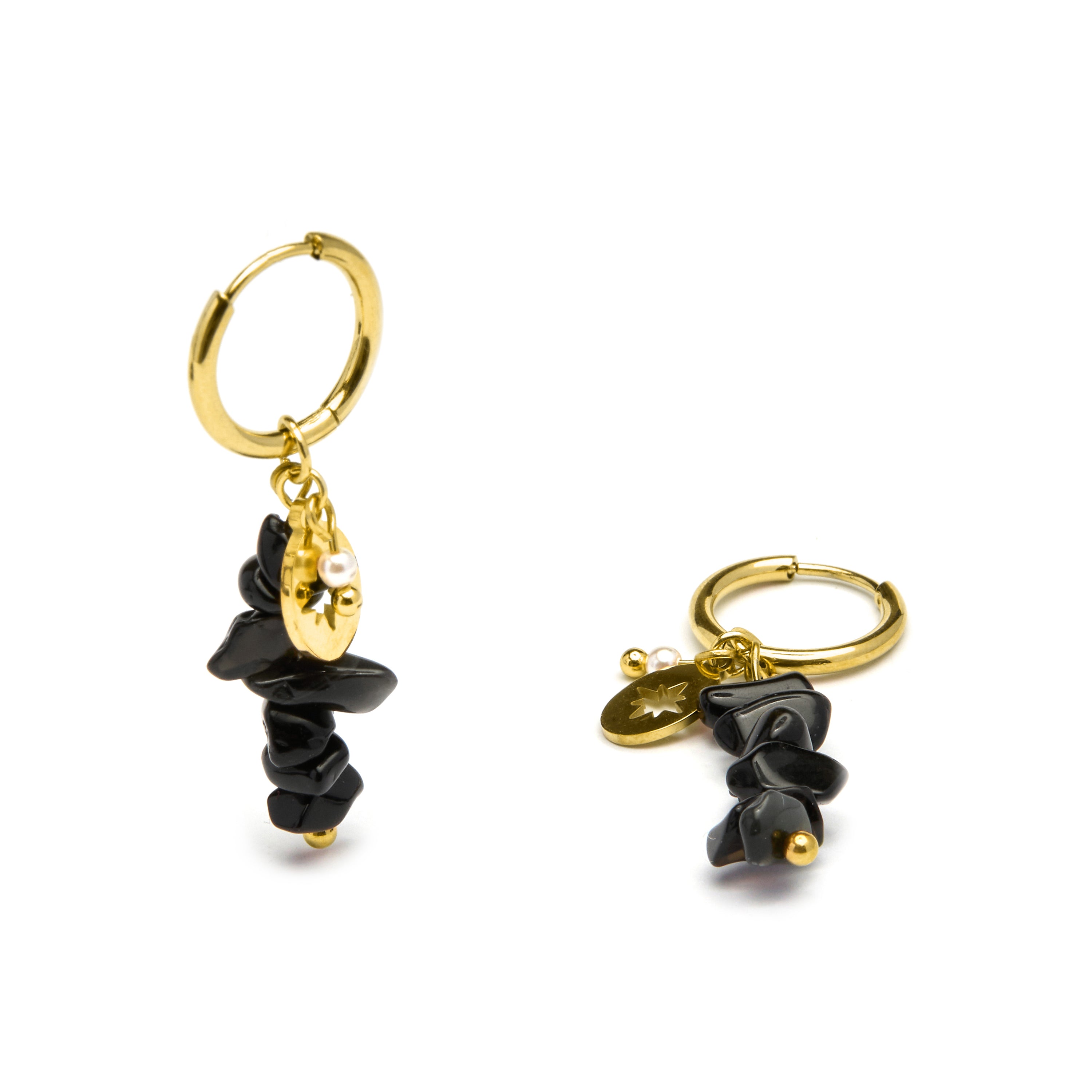 Pendientes de acero Miald de Onix acabados en oro amarillo de 18K. África se convierte en la línea perfecta para mujeres con personalidad, que no temen arriesgar y lucir piezas con carácter propio.