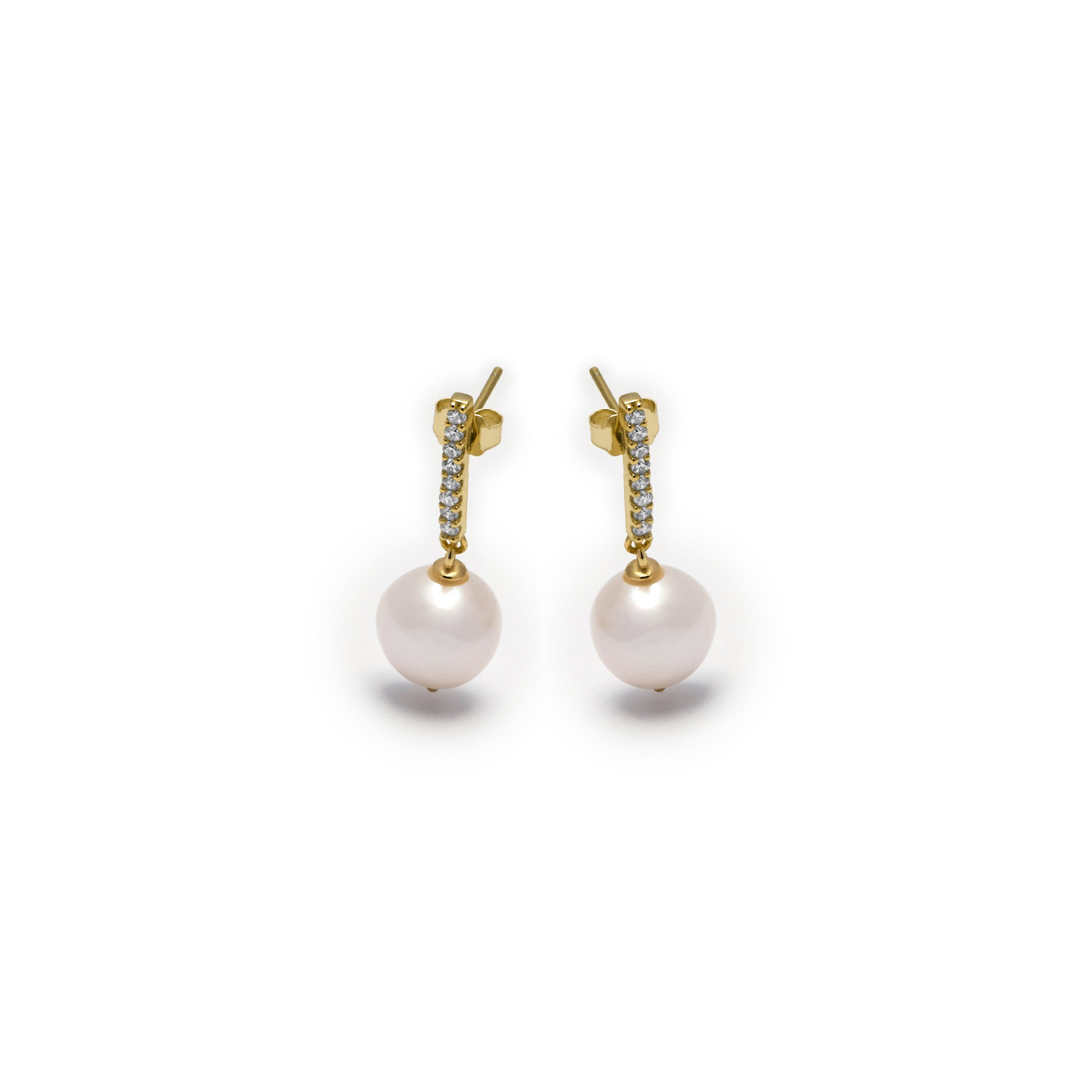Pendientes de Plata de Ley 925 con Perla Blanca acabados en oro amarillo 18K - Nolshu