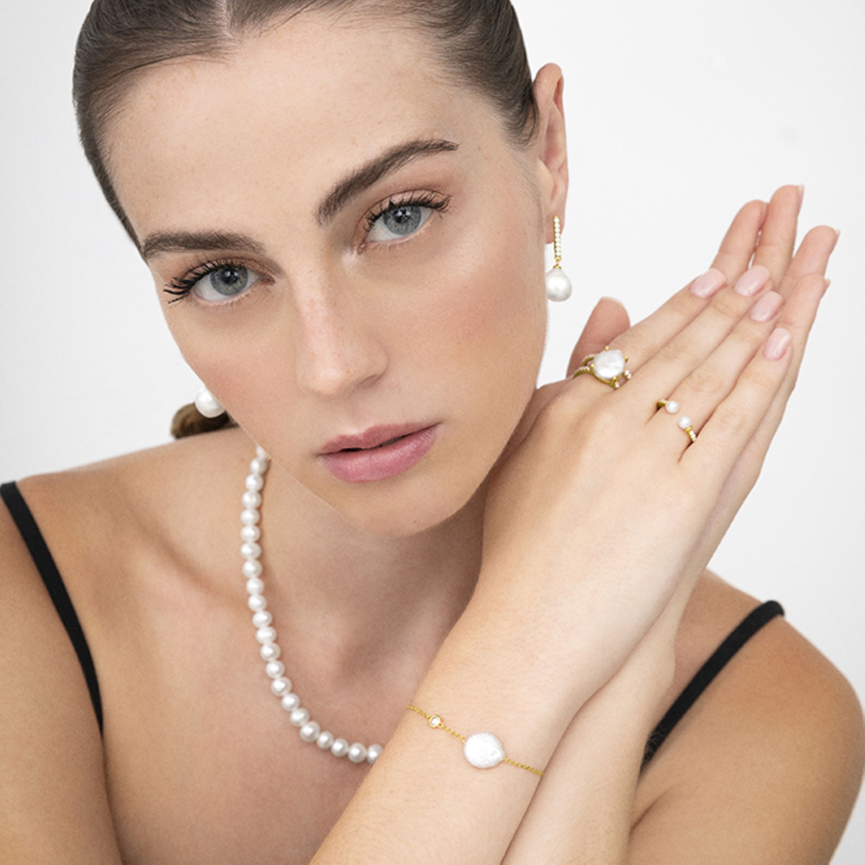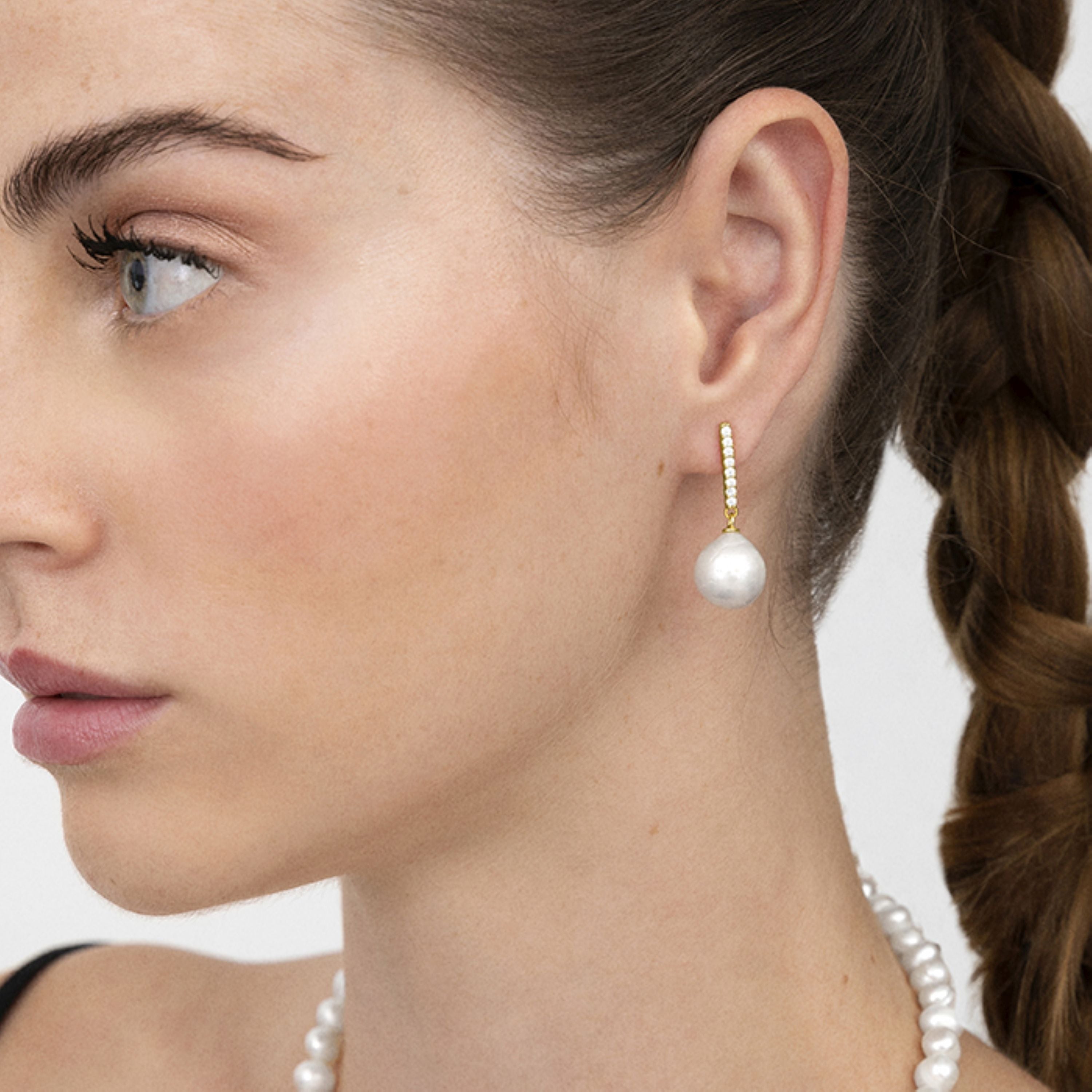 Pendientes Nolshu Plata de Ley 925 y Perla Blanca acabado en oro amarillo de 18 Quilates. Momentos para brillar combina a la perfección diseños que se resisten al paso del tiempo con joyas más innovadoras. Joyas elegantes y sofisticadas para brillar en ocasiones especiales.