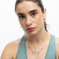 Collier Keval en argent sterling 925 et oxyde de zirconium brillant, finition en or jaune 18 carats. Essential incarne la simplicité raffinée, des pièces intemporelles aux lignes douces et à l'éclat supplémentaire des zircones. Des bijoux basiques sans prétention, parfaits pour un usage quotidien, mais qui peuvent aussi convenir pour des occasions spéciales.