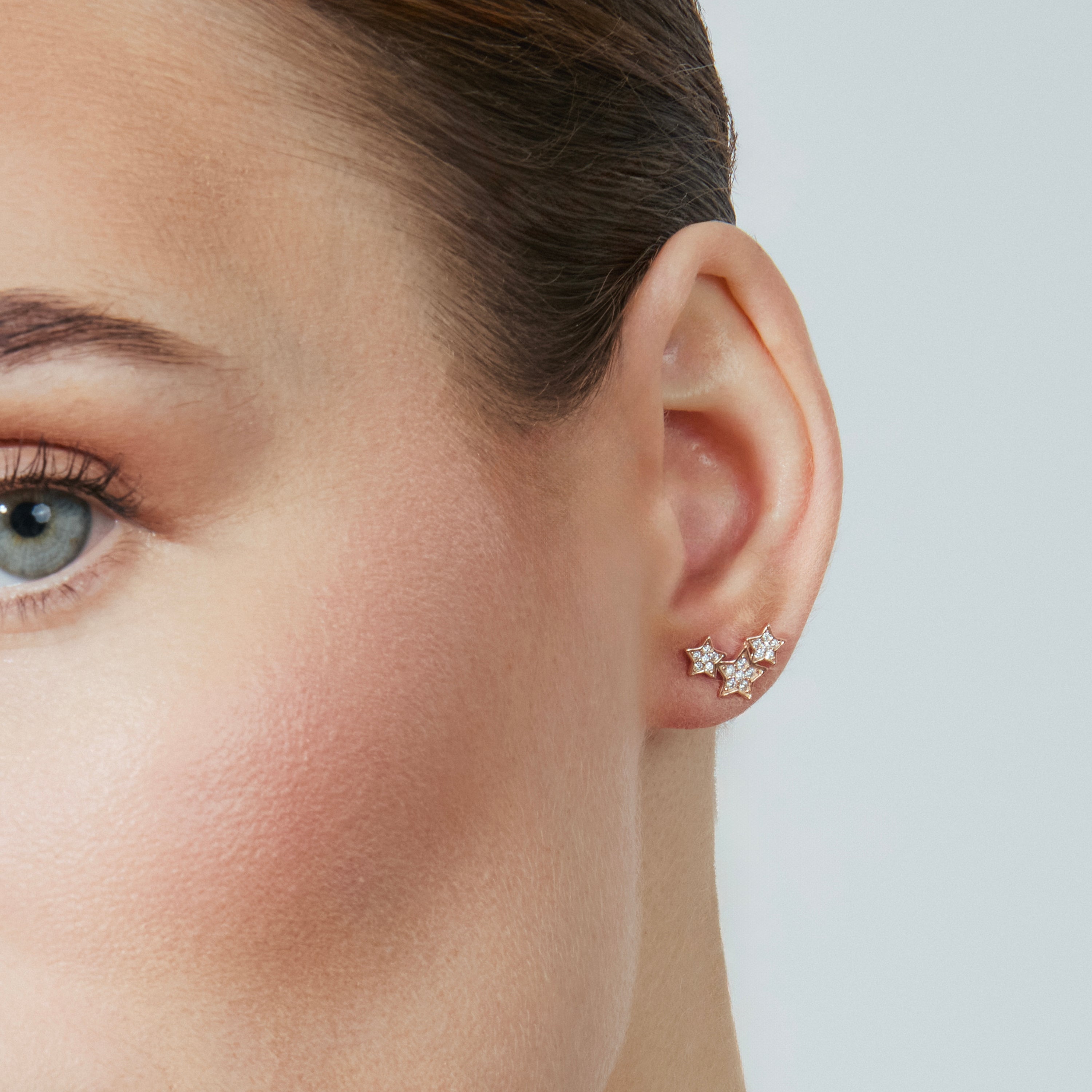 Boucles d'oreilles en argent sterling 925 avec zircon brillant finition or rose 18K - Famille